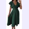 Vestido mini blanco de moda para mujer con cuello en V y manga farol, bordado hueco, estilo europeo y americano, nueva falda transfronteriza