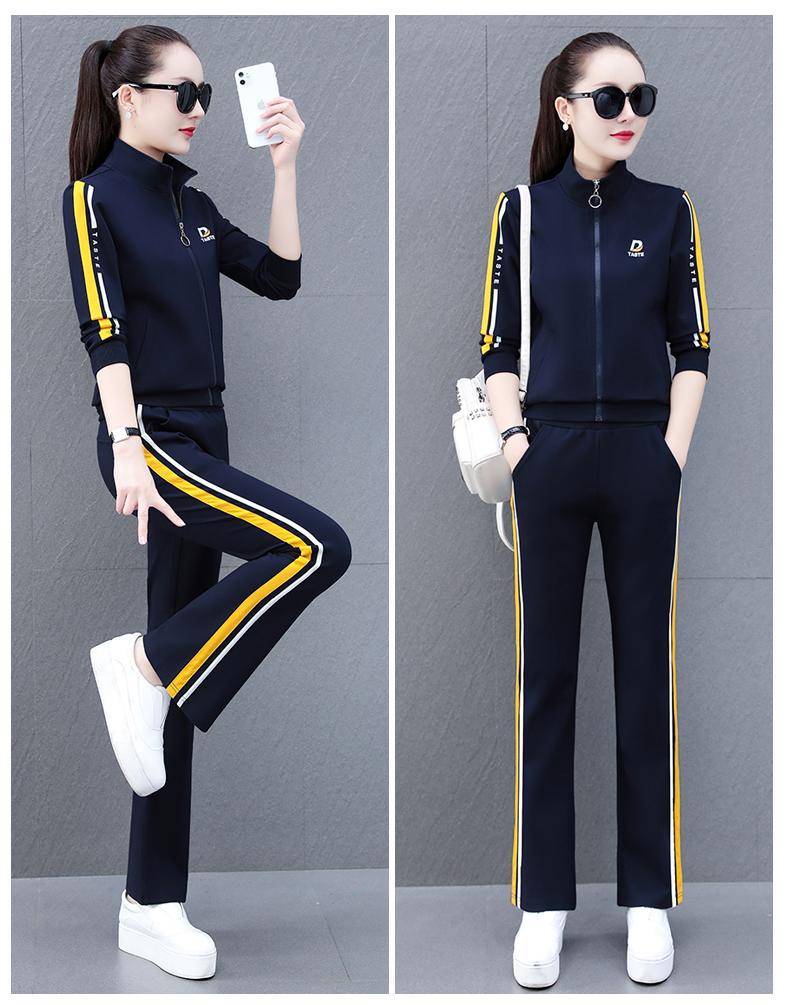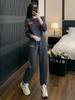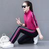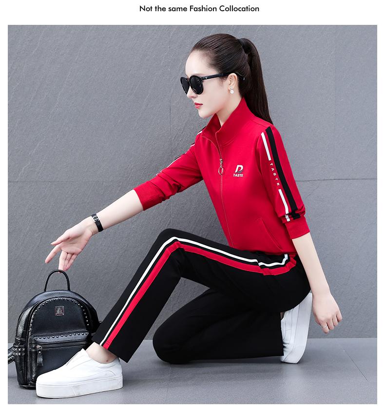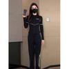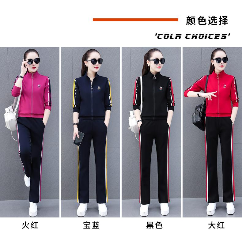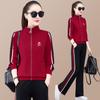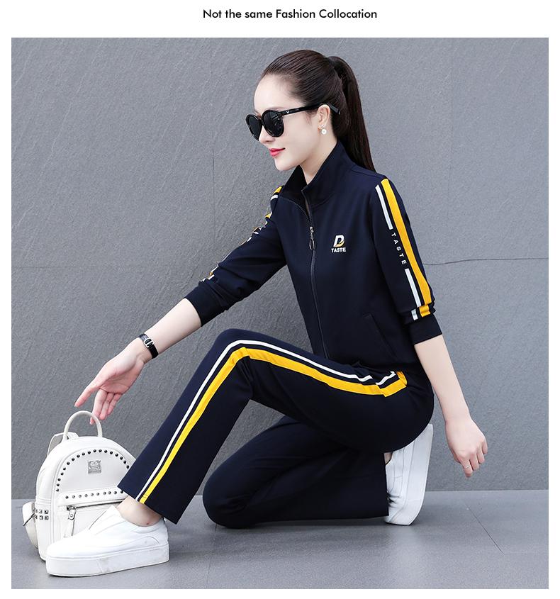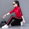 Conjunto deportivo para correr para mujer, moda de primavera y otoño, cuello alto, manga larga, holgado, adelgazante, informal, de dos piezas