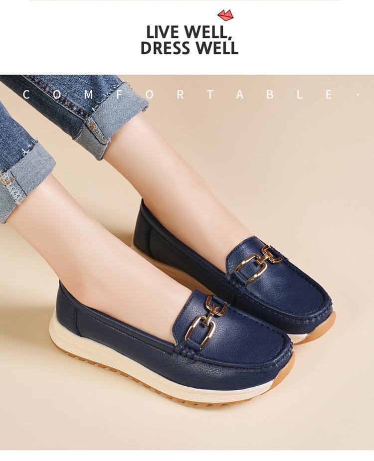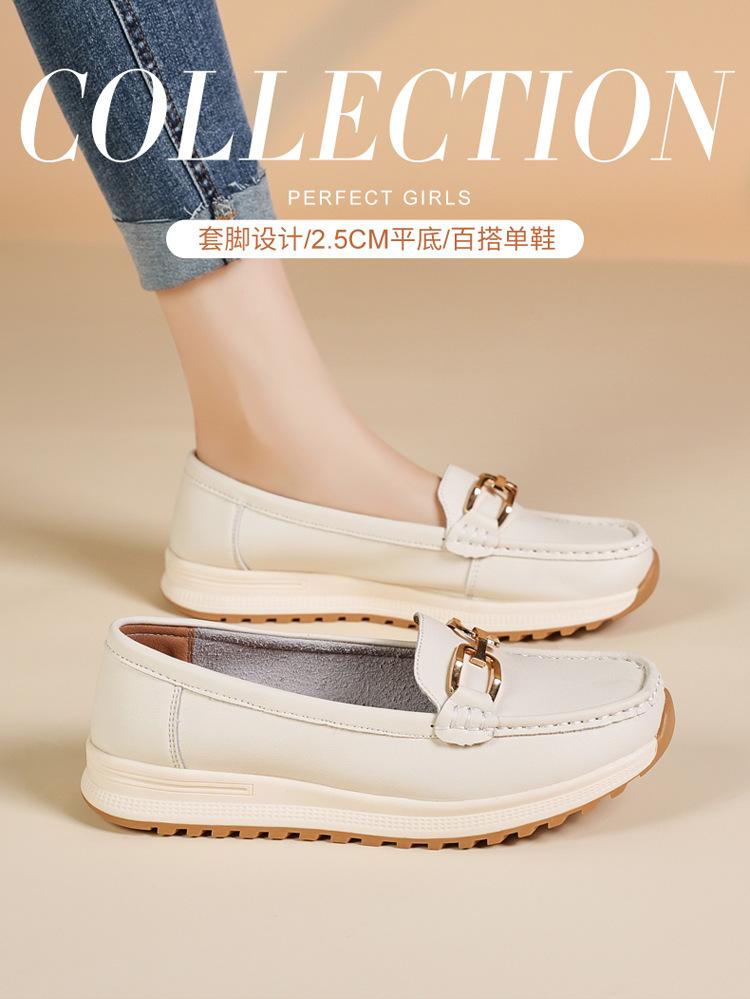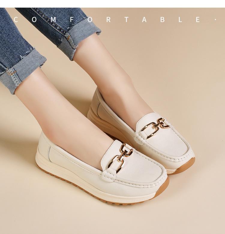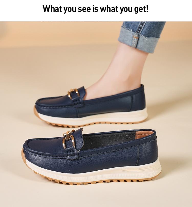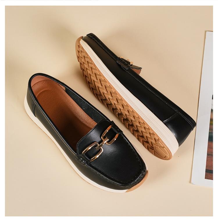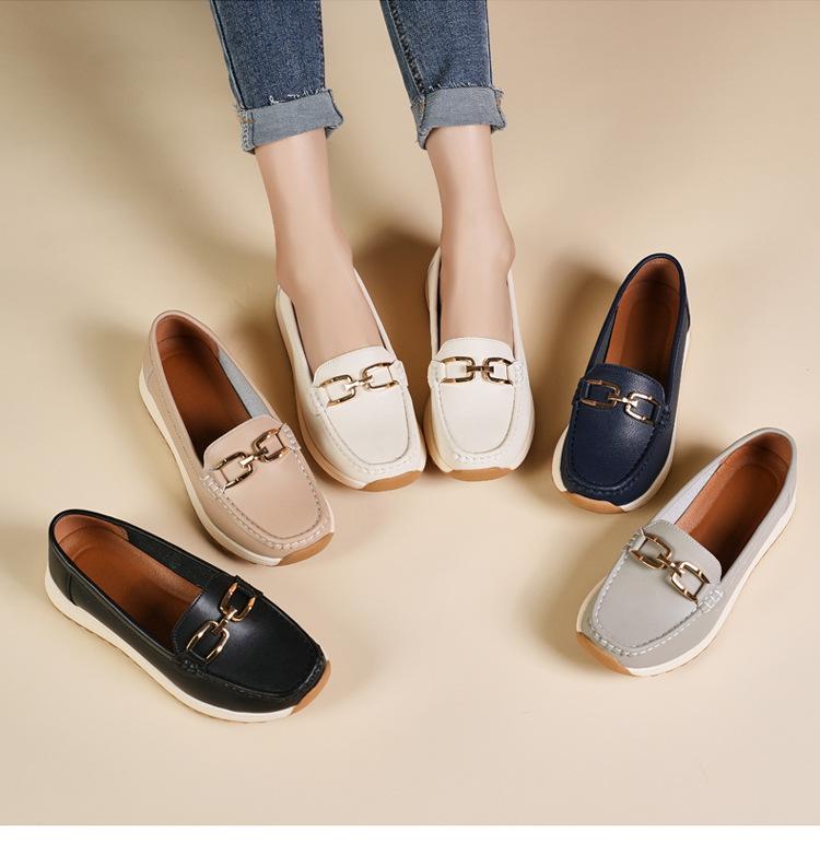 Zapatos de Mujer de Talla Grande Transfronterizos para Primavera y Otoño, Nuevos Mocasines Slip-On, Mocasines Casuales de Piel de Vaca, Zapatos Planos Antideslizantes para Mujer