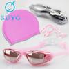 Gafas de natación para adultos, gorro de natación, impermeables, antivaho, de silicona, galvanizadas, HD, imprimibles.