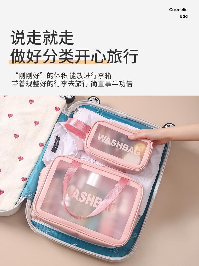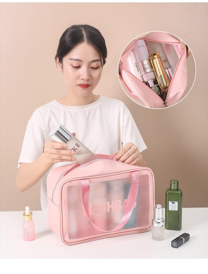 Bolsa de cosméticos estilo Ins, bolsa de lavado portátil, impermeable, transparente, de poliuretano esmerilado, para baño, natación, bolsa de almacenamiento de gran capacidad