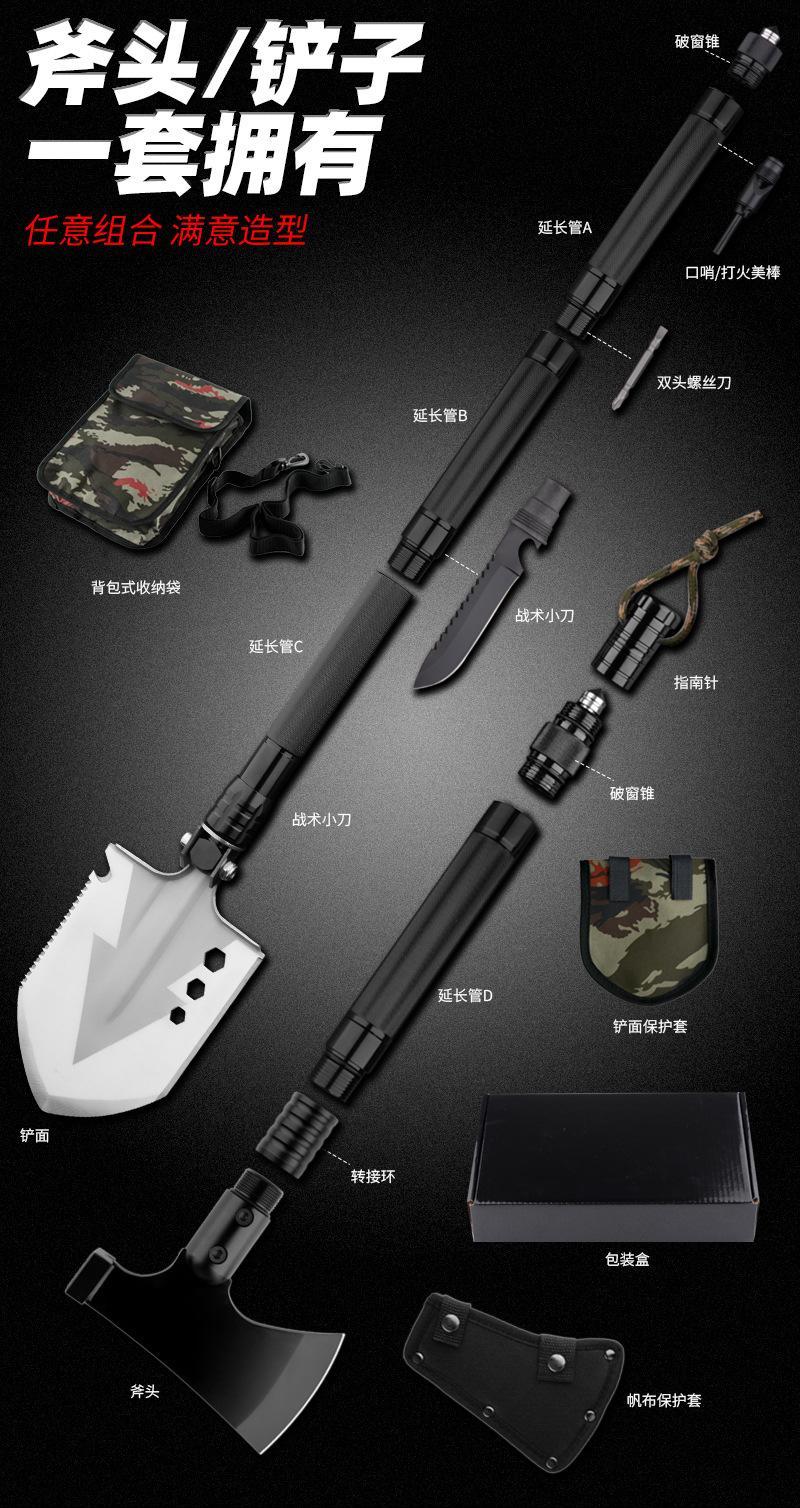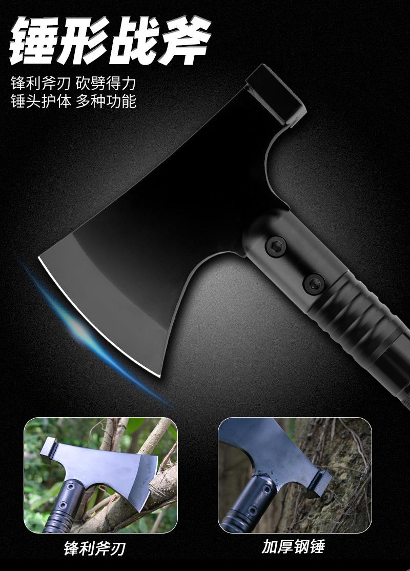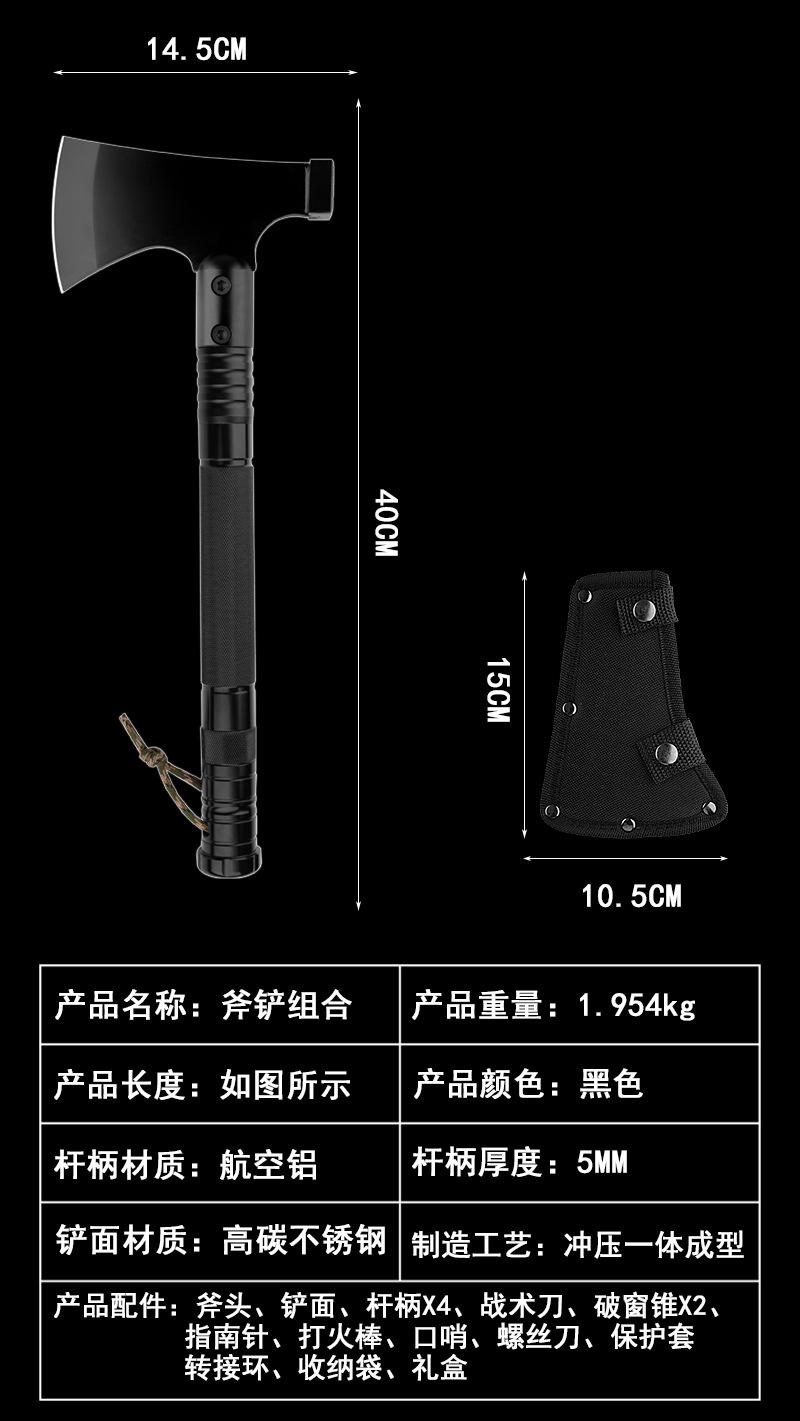 Pala Hacha de Ingeniero Juego Multifuncional Suministros para Exteriores Herramientas Pala Plegable Portátil Equipo Pala Militar Acero al Carbono