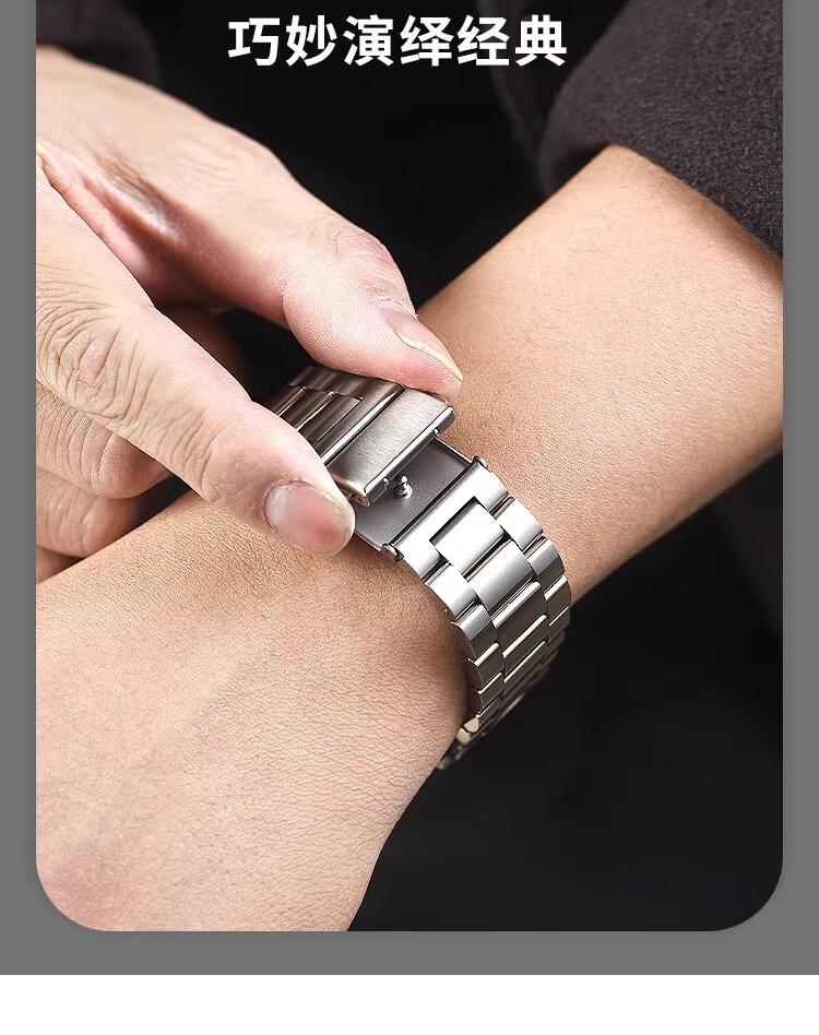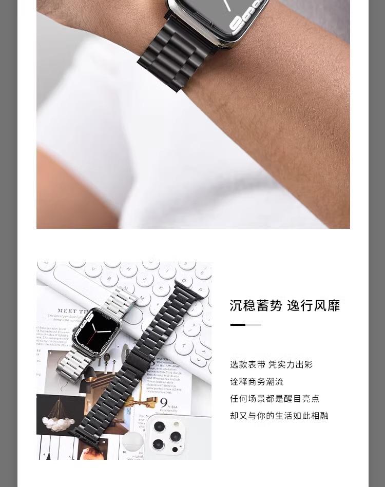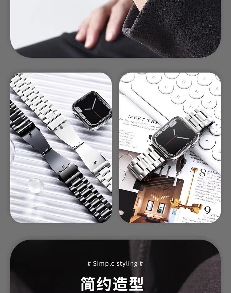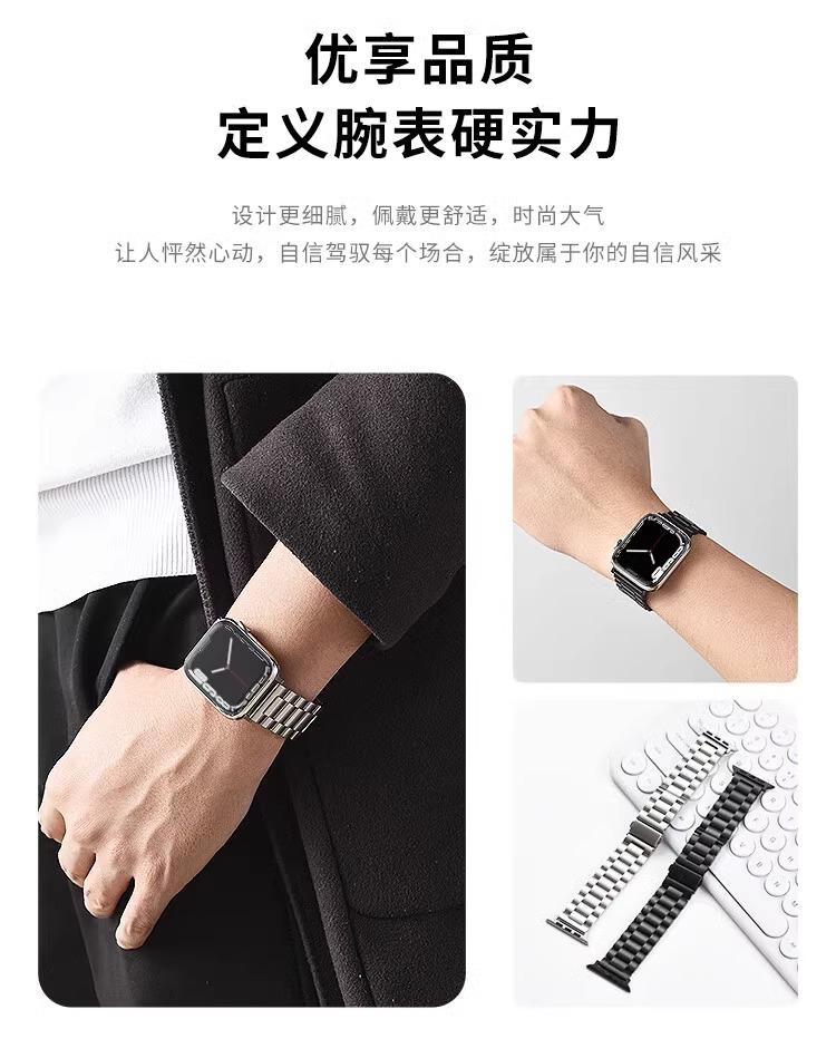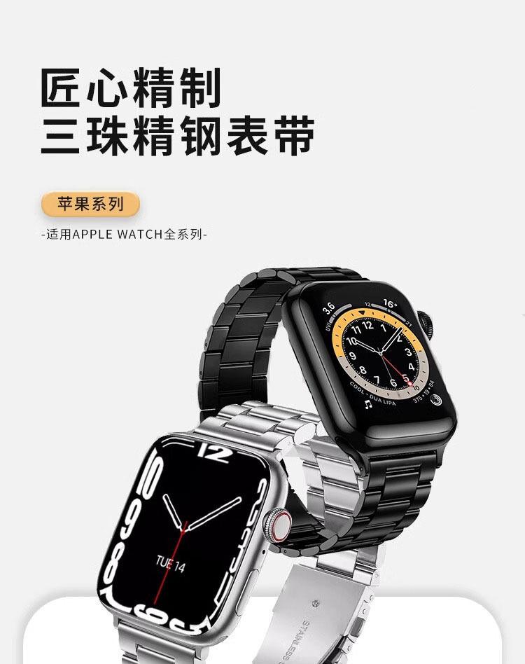Adecuado para Correa de Apple Watch Correa de Acero Inoxidable de Tres Cuentas Samsung Huawei Gt4 Metal Sólido Correa de Reloj iWatch