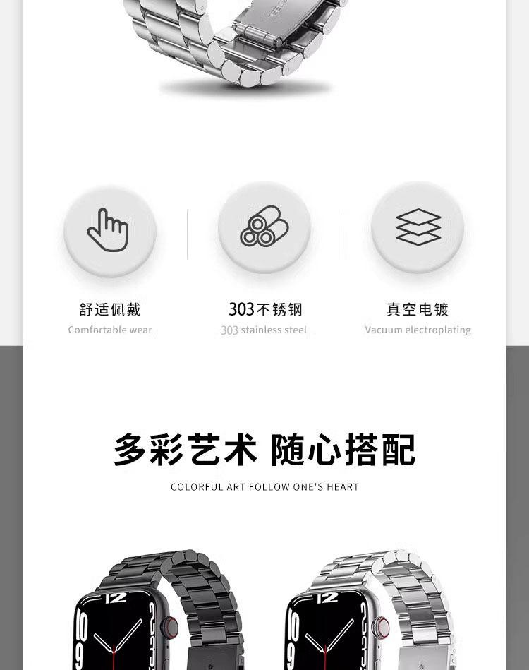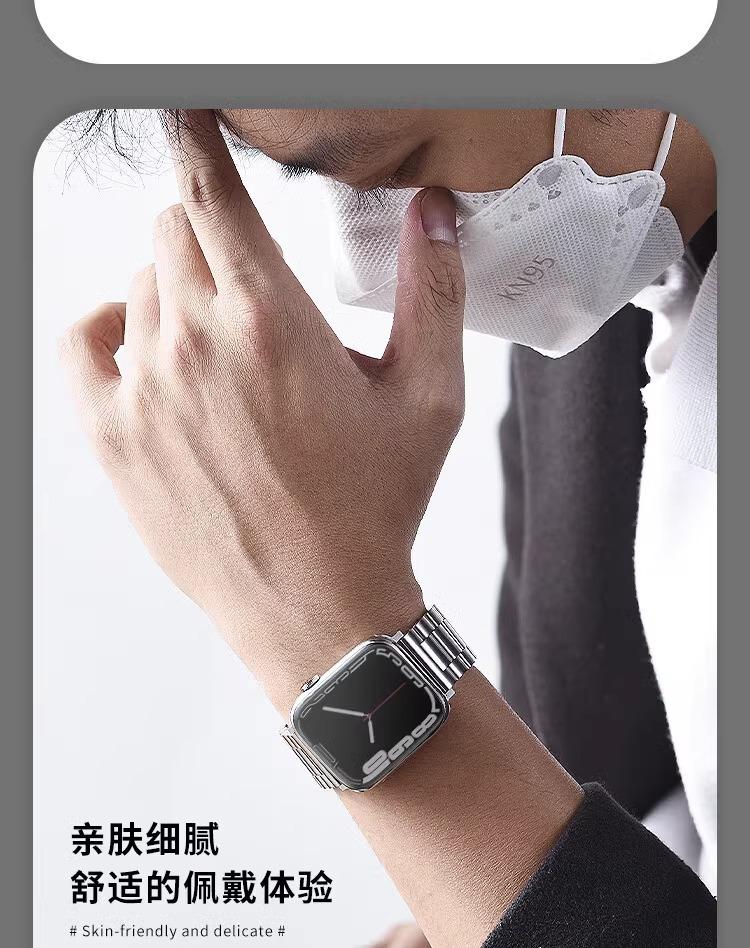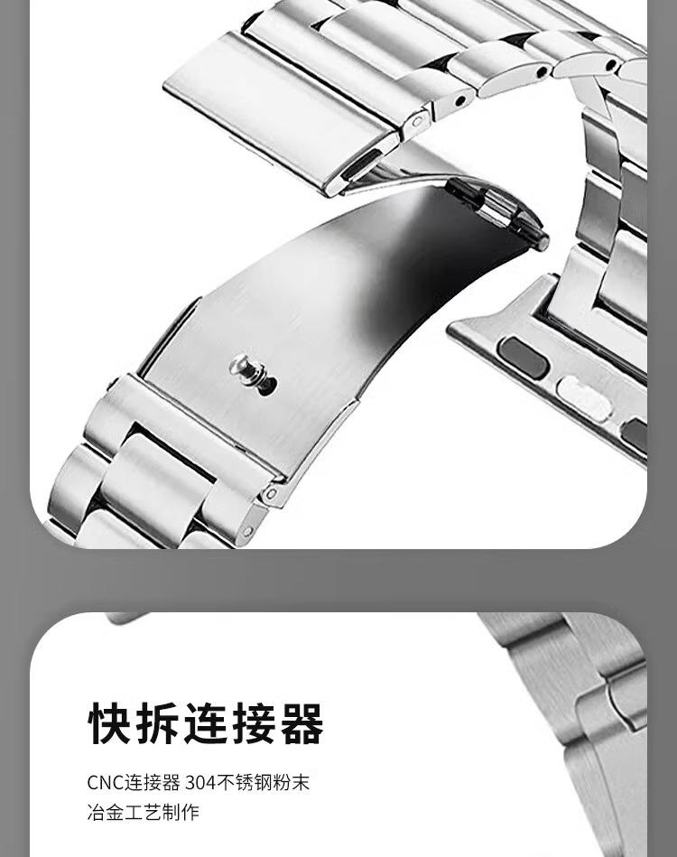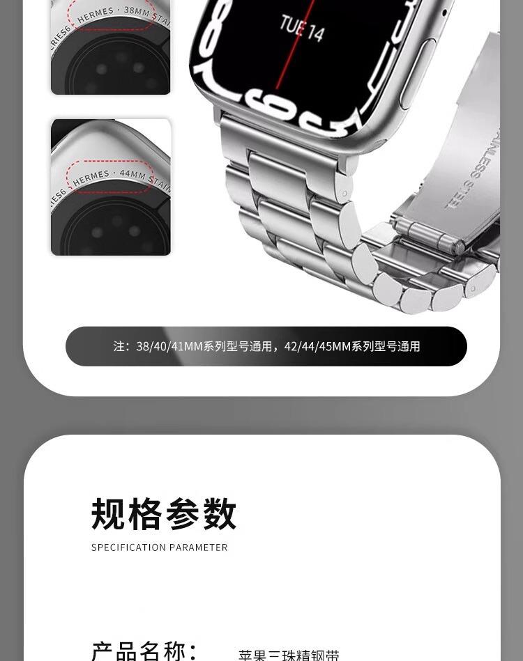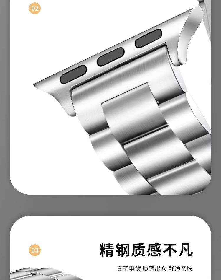 Adecuado para Correa de Apple Watch Correa de Acero Inoxidable de Tres Cuentas Samsung Huawei Gt4 Metal Sólido Correa de Reloj iWatch