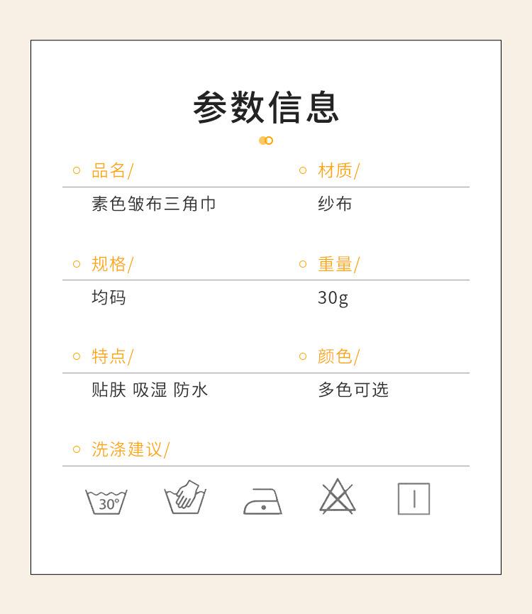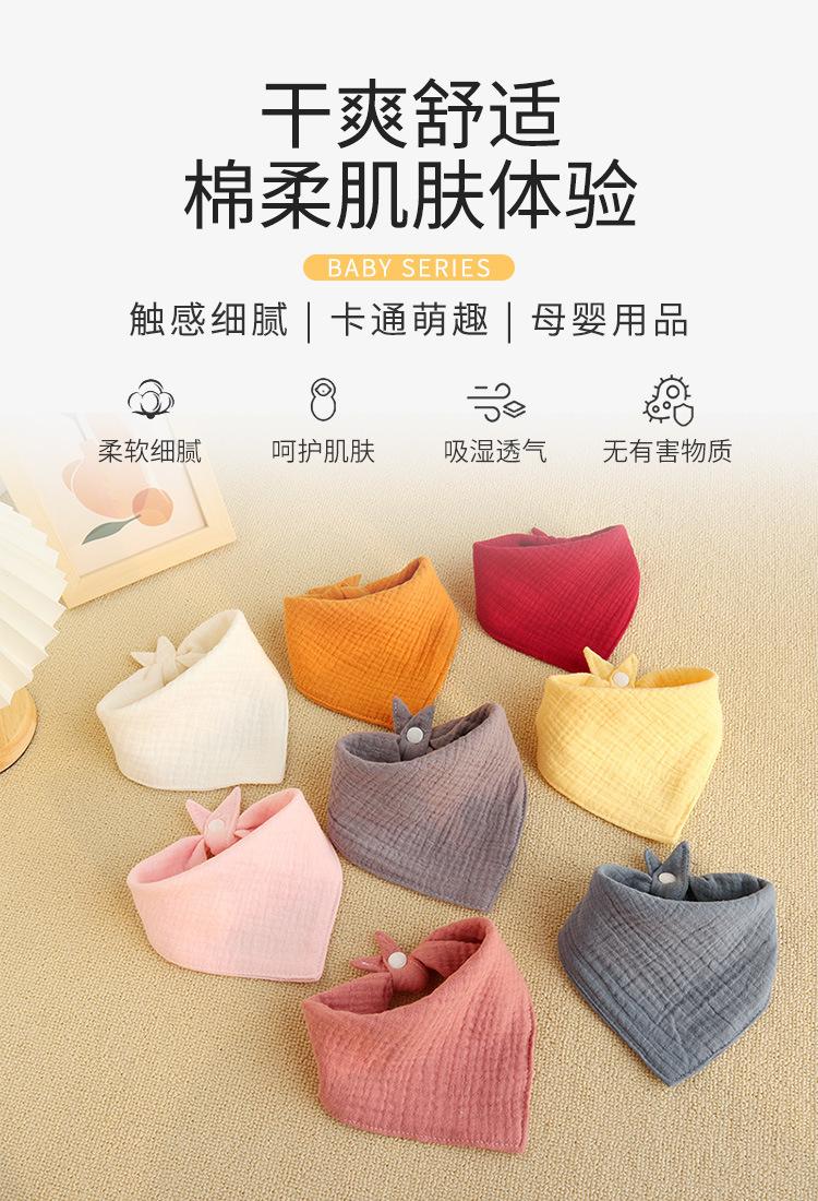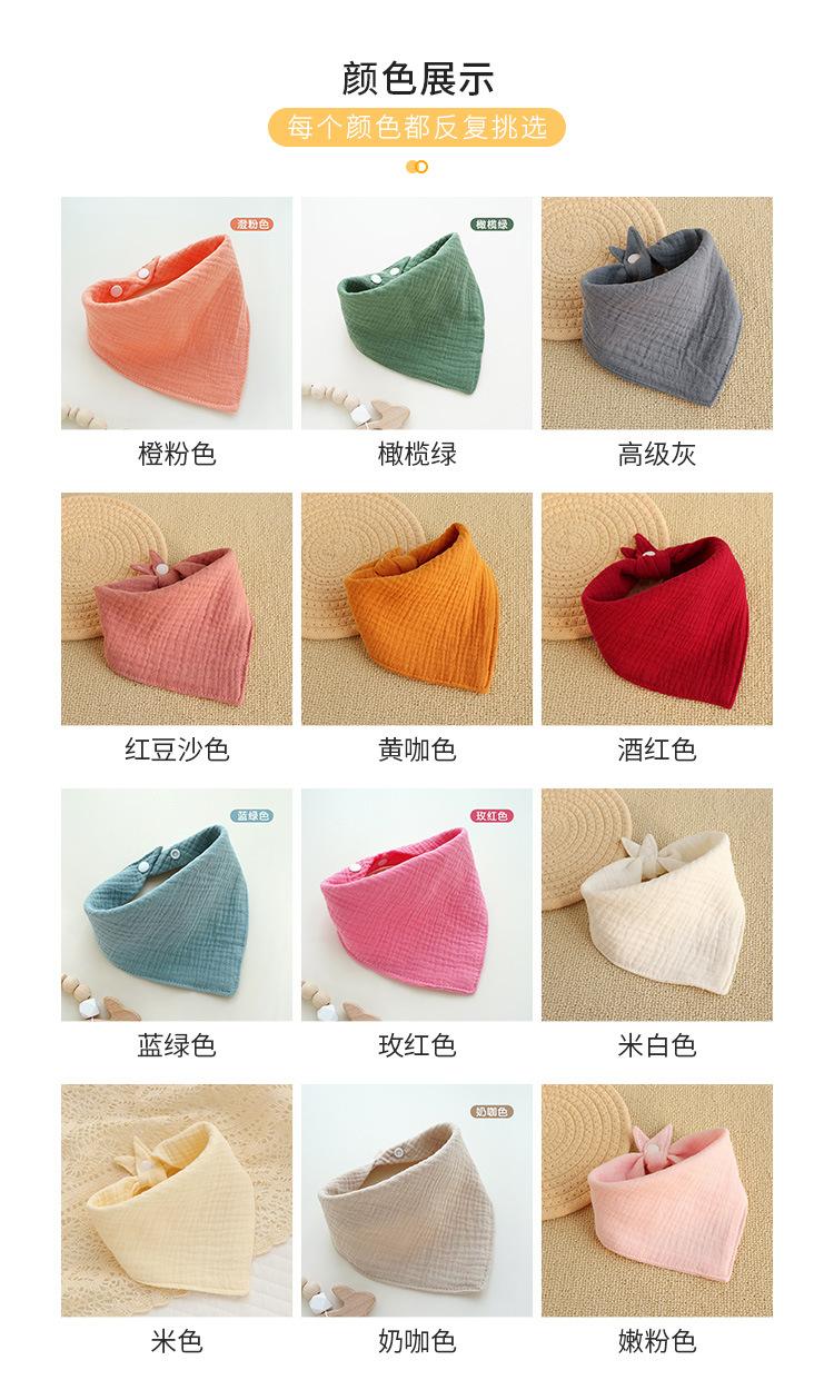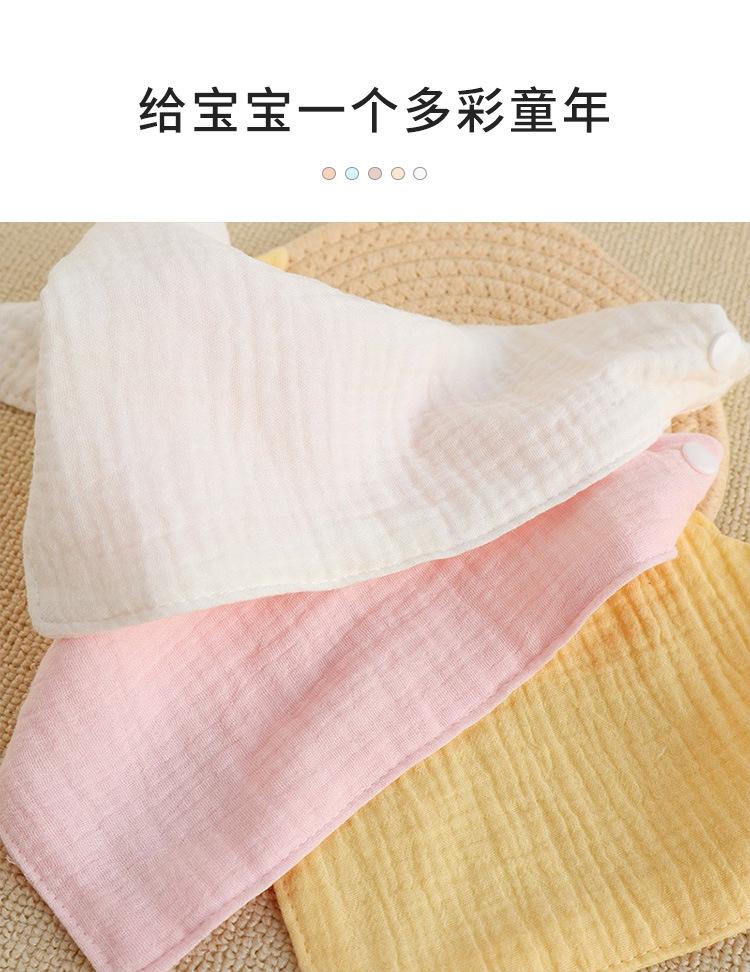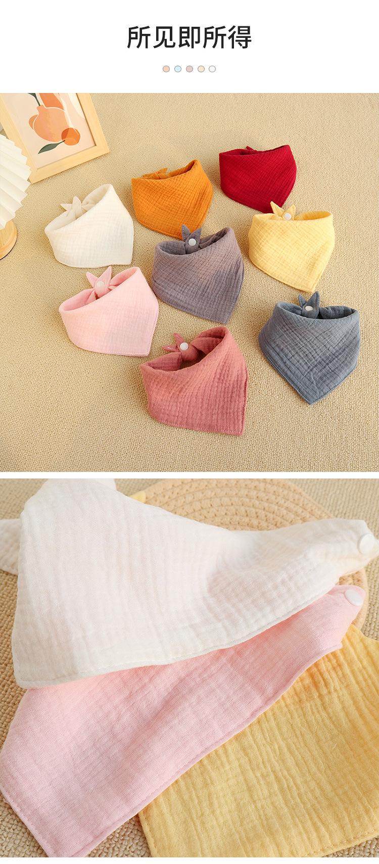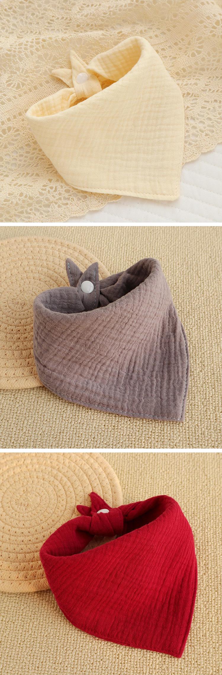 Toalla triangular de tela lisa arrugada al por mayor para bebé recién nacido, algodón, gasa, babero antisalpicaduras, babero transpirable para el cabello