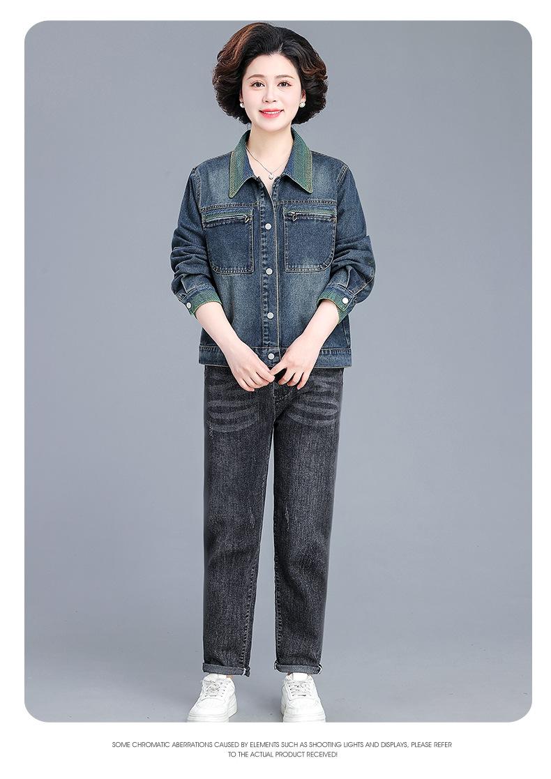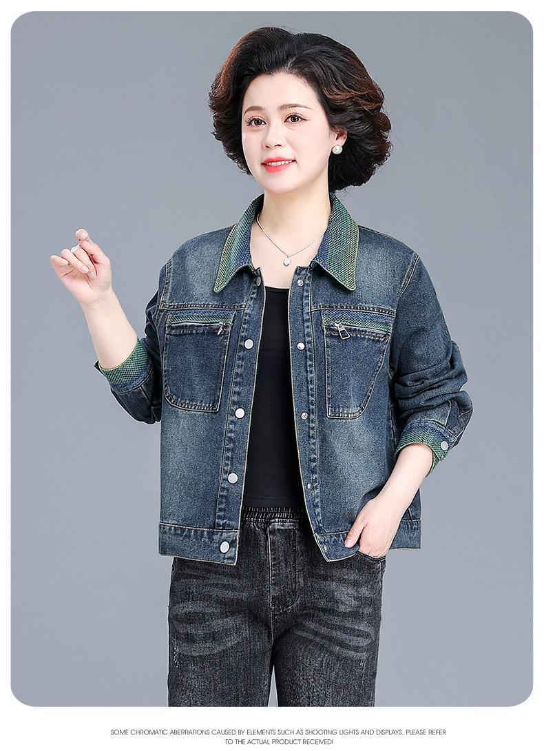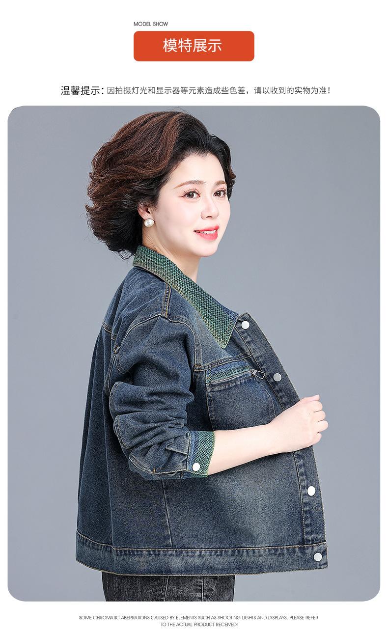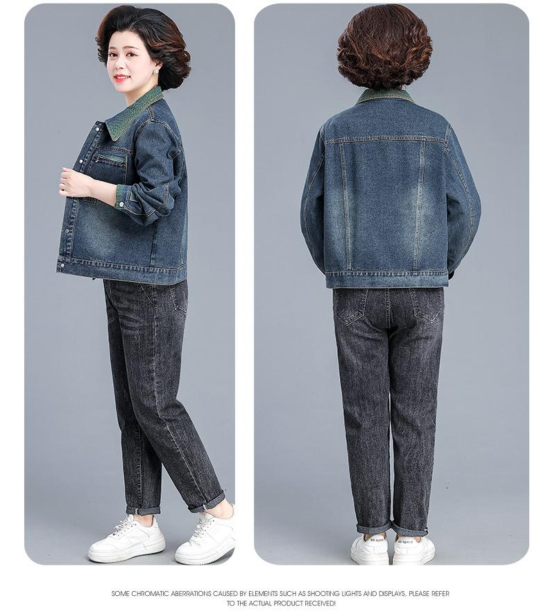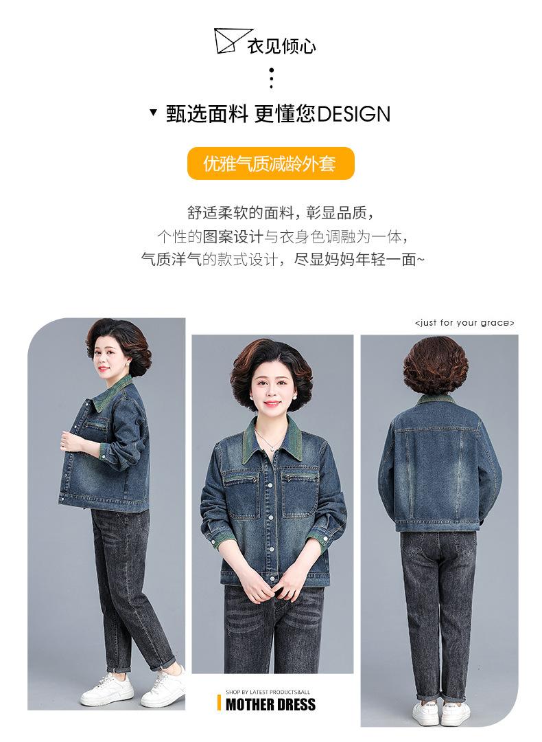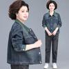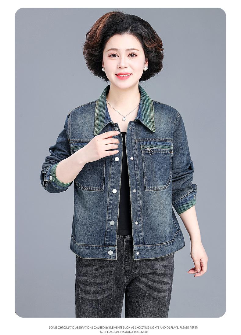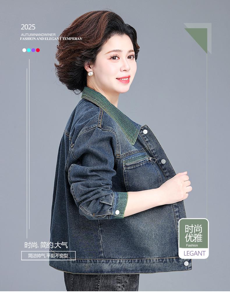Abrigo de Mujer de Estilo Occidental para Primavera y Otoño para Mediana y Avanzada Edad Madre Primavera 2025 Nueva Chaqueta Casual de Mezclilla Top Pequeño
