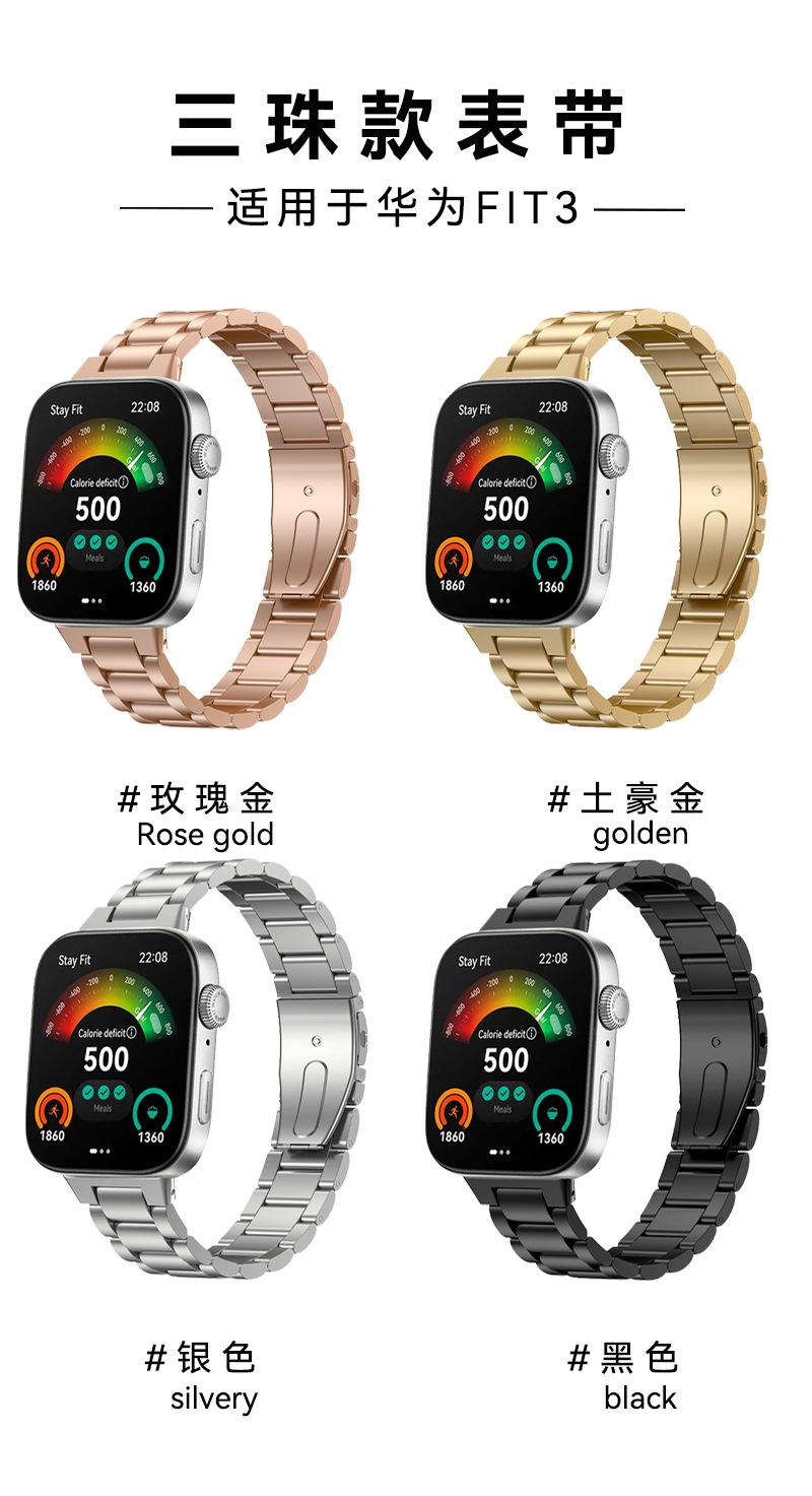 Adecuado para Correa Huawei Fit3 Milanesa Correa Huawei Watchfit3 Metal Correa de Reloj de Tres Eslabones