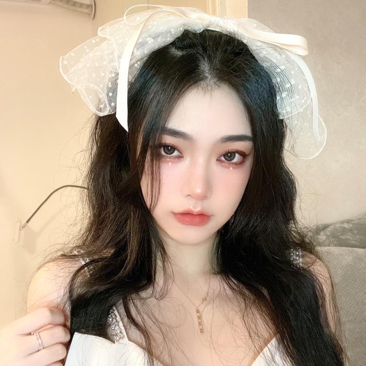 Horquilla con lazo grande y velo de encaje blanco, pinza para la parte superior de la cabeza, estilo Mori, súper hada, accesorios de malla para el cabello para mujer