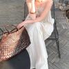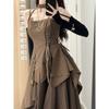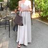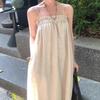 2025 Nuevo Estilo de Verano Femenino Color Puro Vestido de Tirantes Holgado Largo Falda de Vacaciones para Mujer Retro Francés