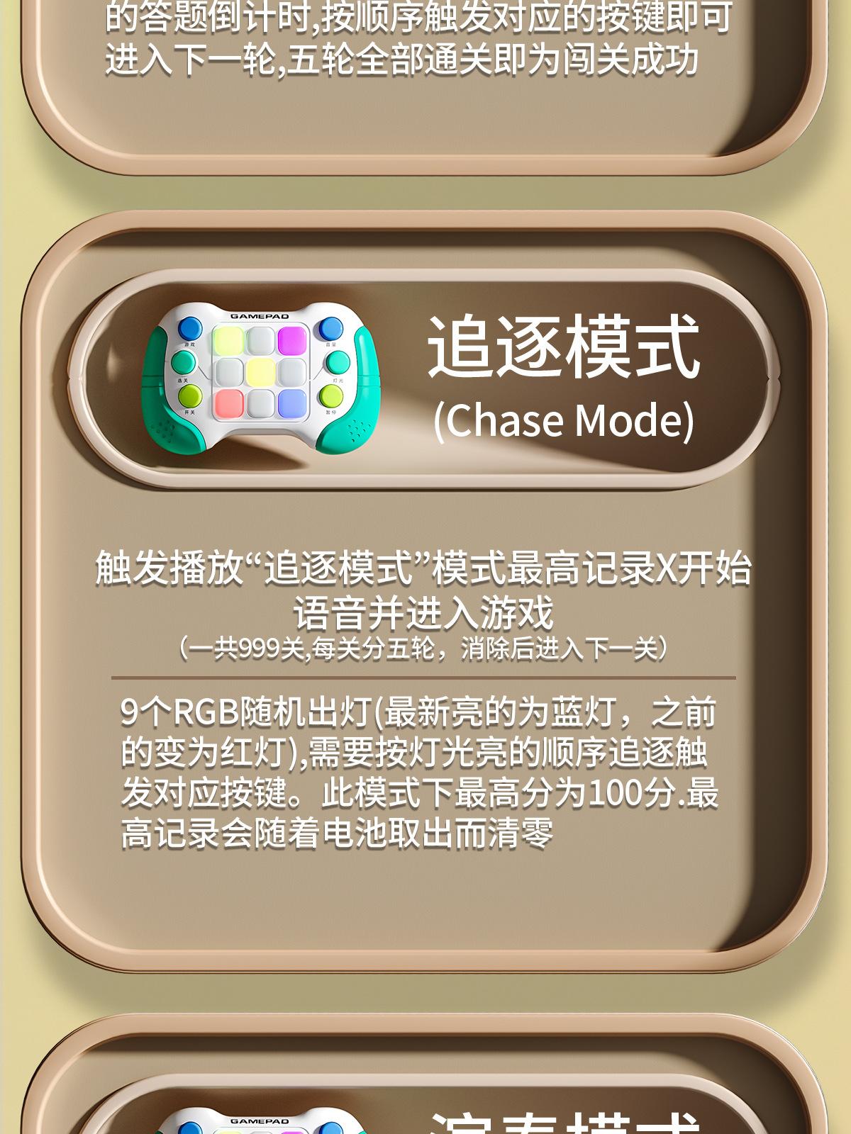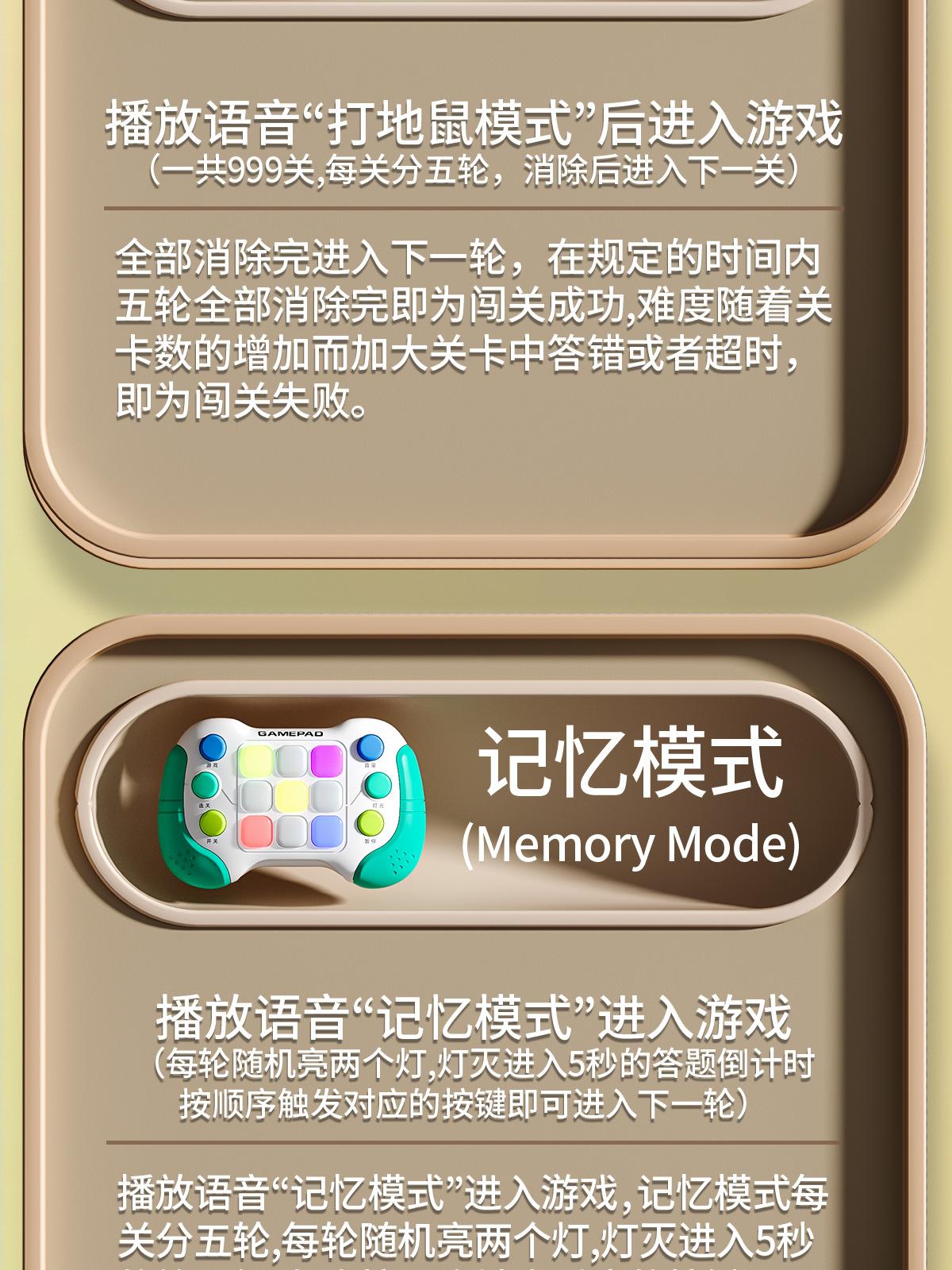 8793Funciones: 999 niveles, cinco modos: modo whack-a-mole/modo memoria/modo persecución/modo rendimiento/modo iluminación