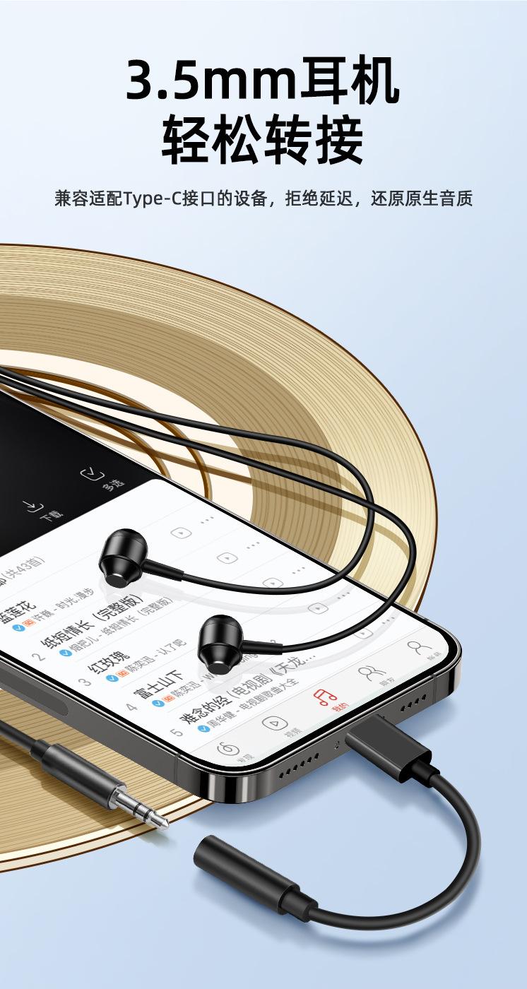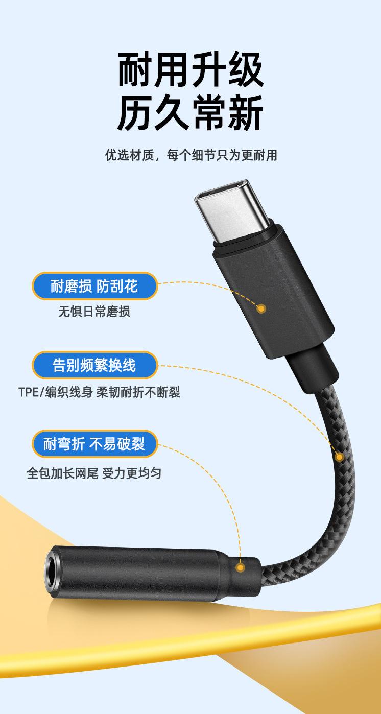Cable de audio Tipo C a 3.5mm al por mayor, cable adaptador de decodificación digital para teléfono móvil, micrófono, audífonos, convertidor de tarjeta de sonido