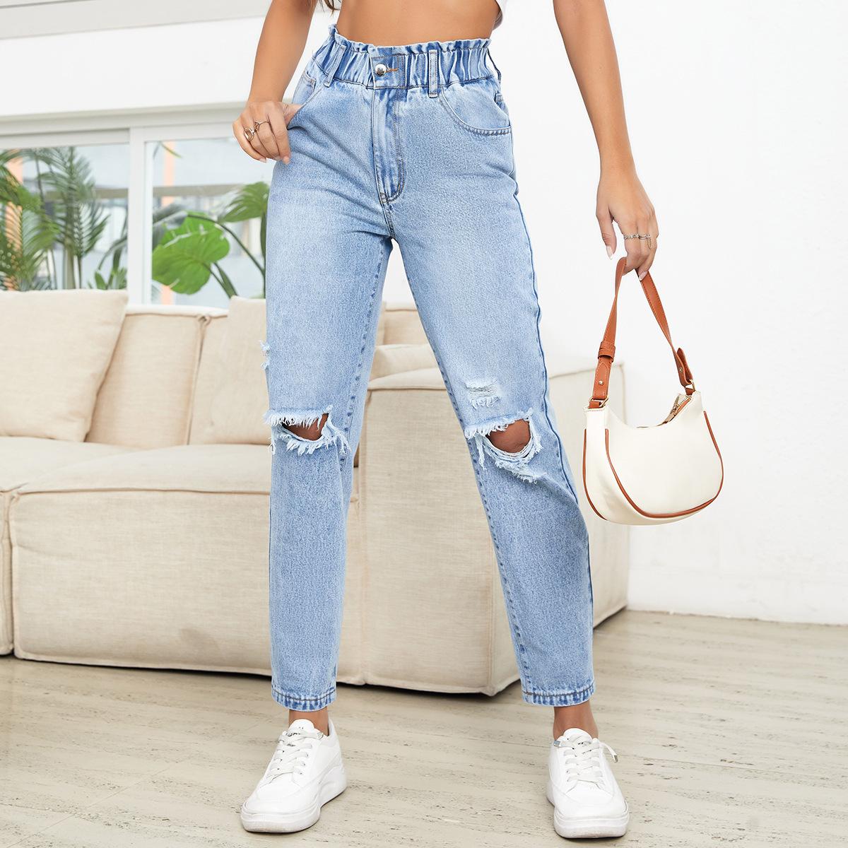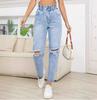En Stock Amazon Transfronterizo Moda para Mujer Europeo y Americano Ins Jeans de Pierna Recta Rasgados Adelgazantes de Moda