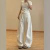 Pantalones adelgazantes de cintura elástica para mujer, pantalón informal, fino, de color sólido, estilo coreano, con diseño cruzado, primavera 2025
