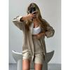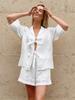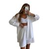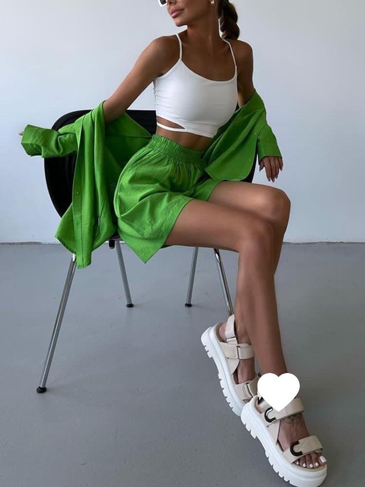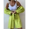 Camisa de Algodón y Lino Europeo y Americano de Primavera de Color Sólido con Botonadura Sencilla y Manga Larga, Traje de Shorts Casual Holgado y a la Moda