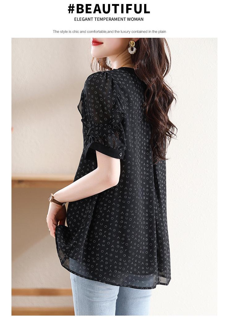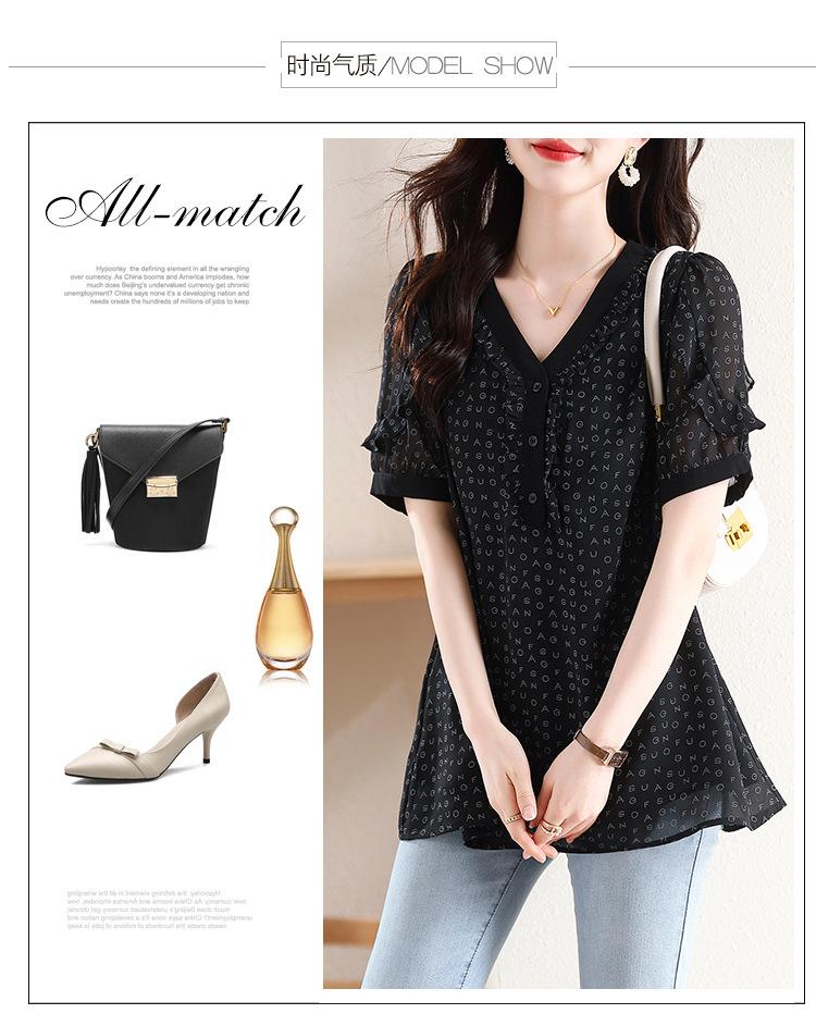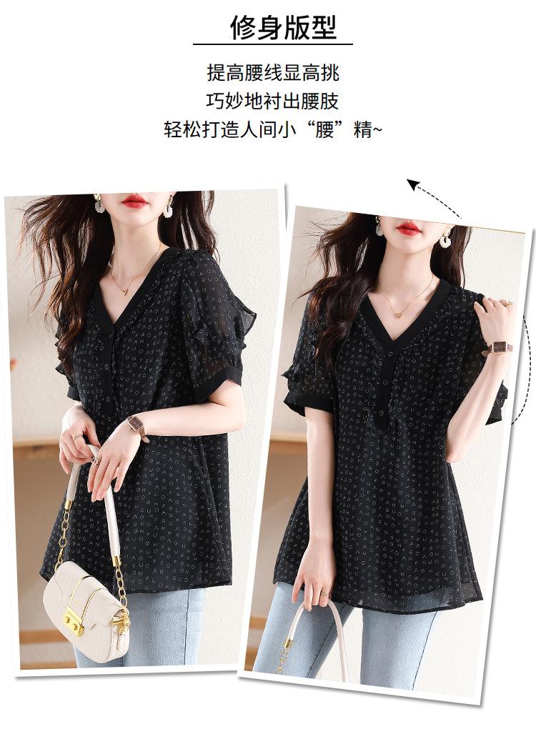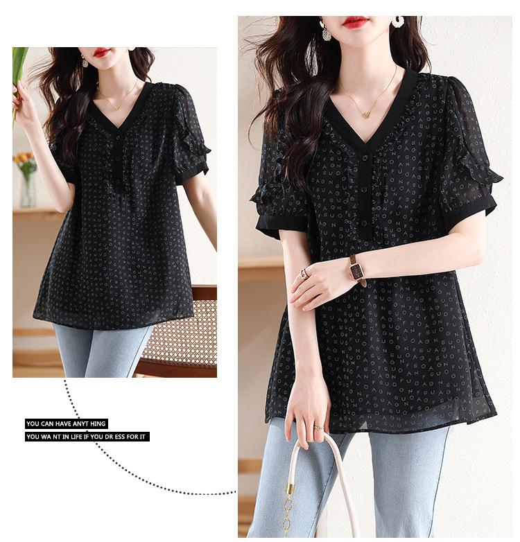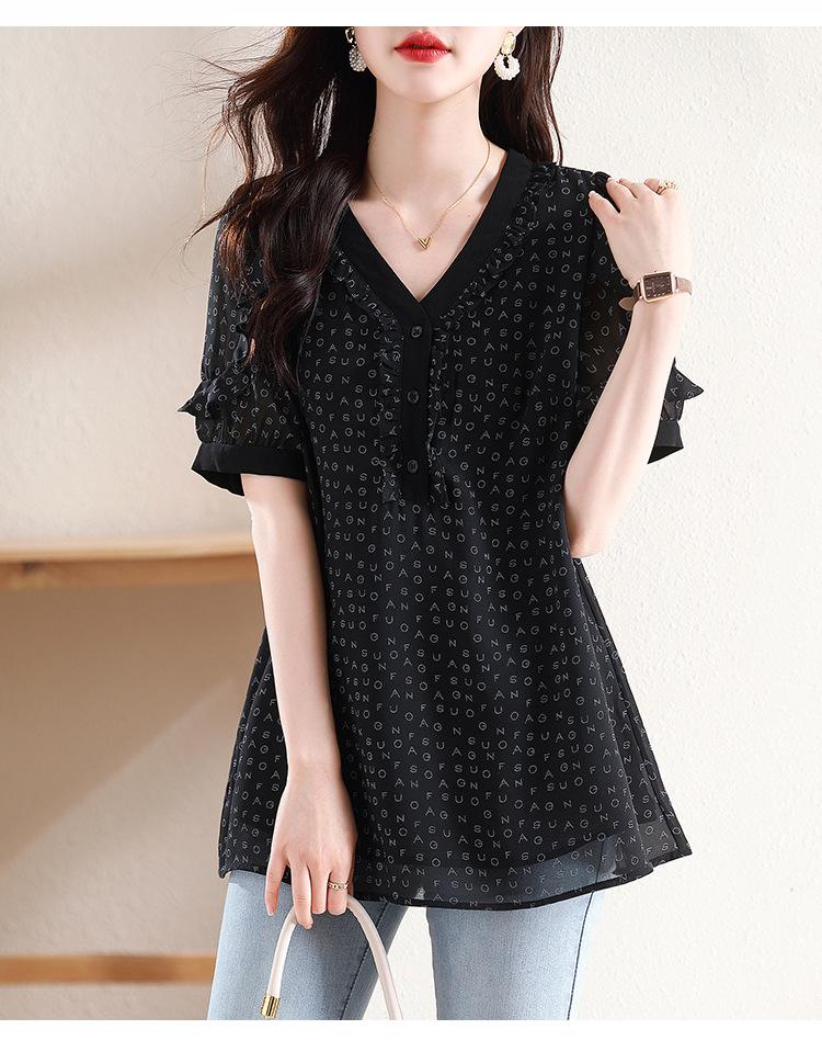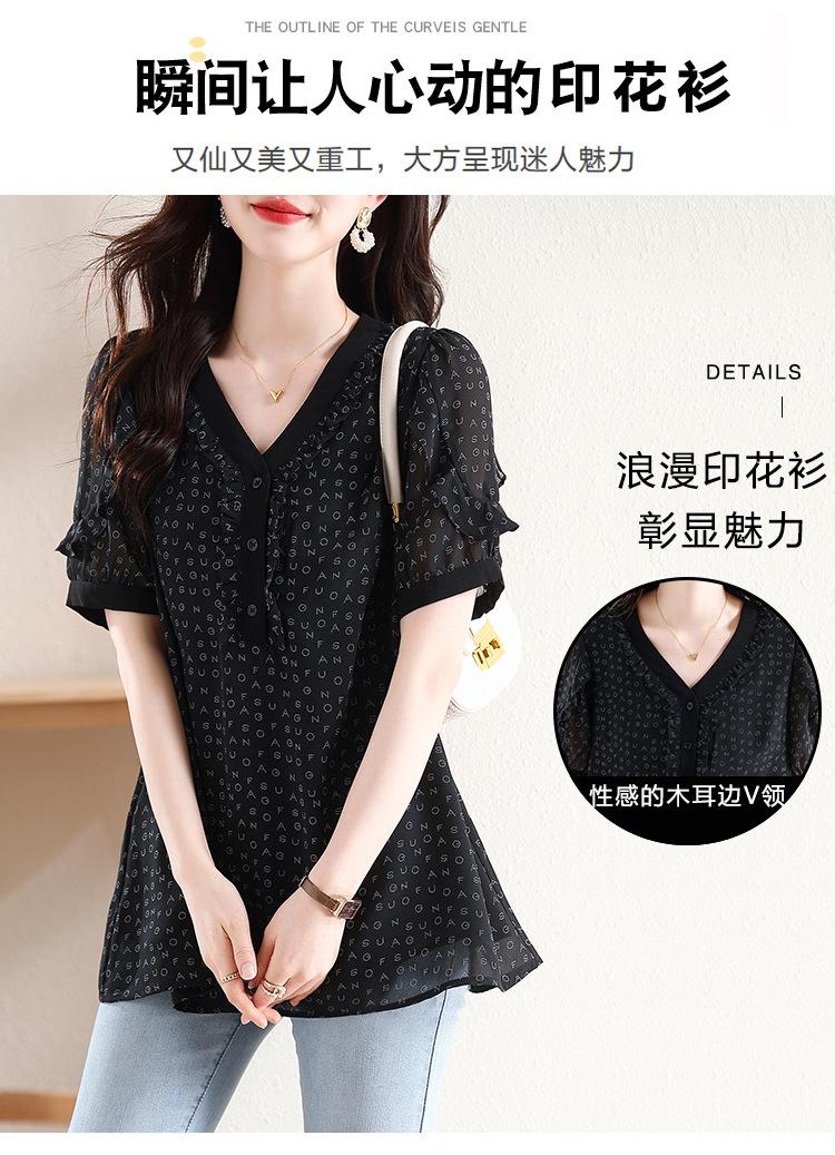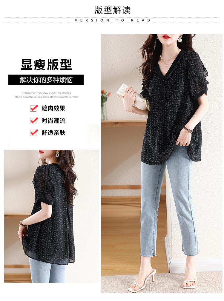 Novedad de verano 2025, camiseta de manga corta elegante con estampado de chica gordita de talla grande para mujer, que cubre el vientre, adelgaza la parte superior de talla grande para mujer.