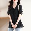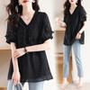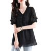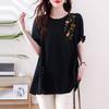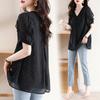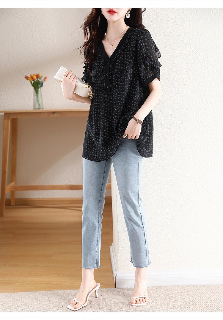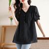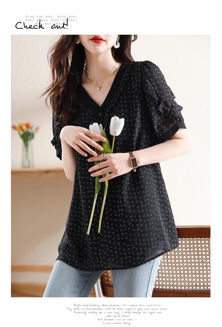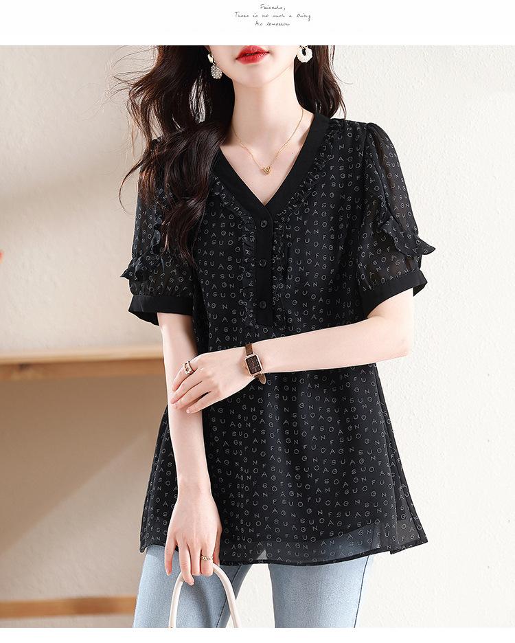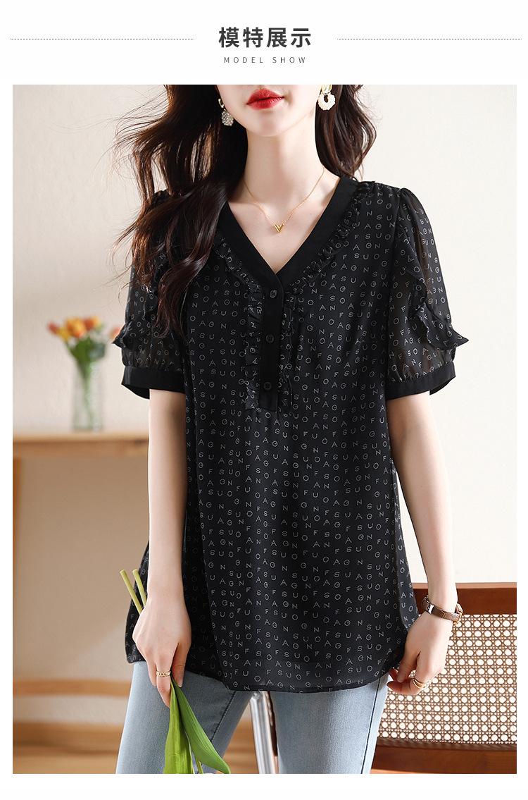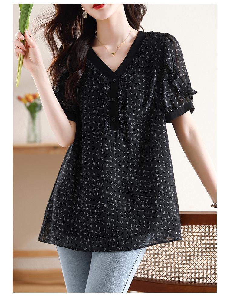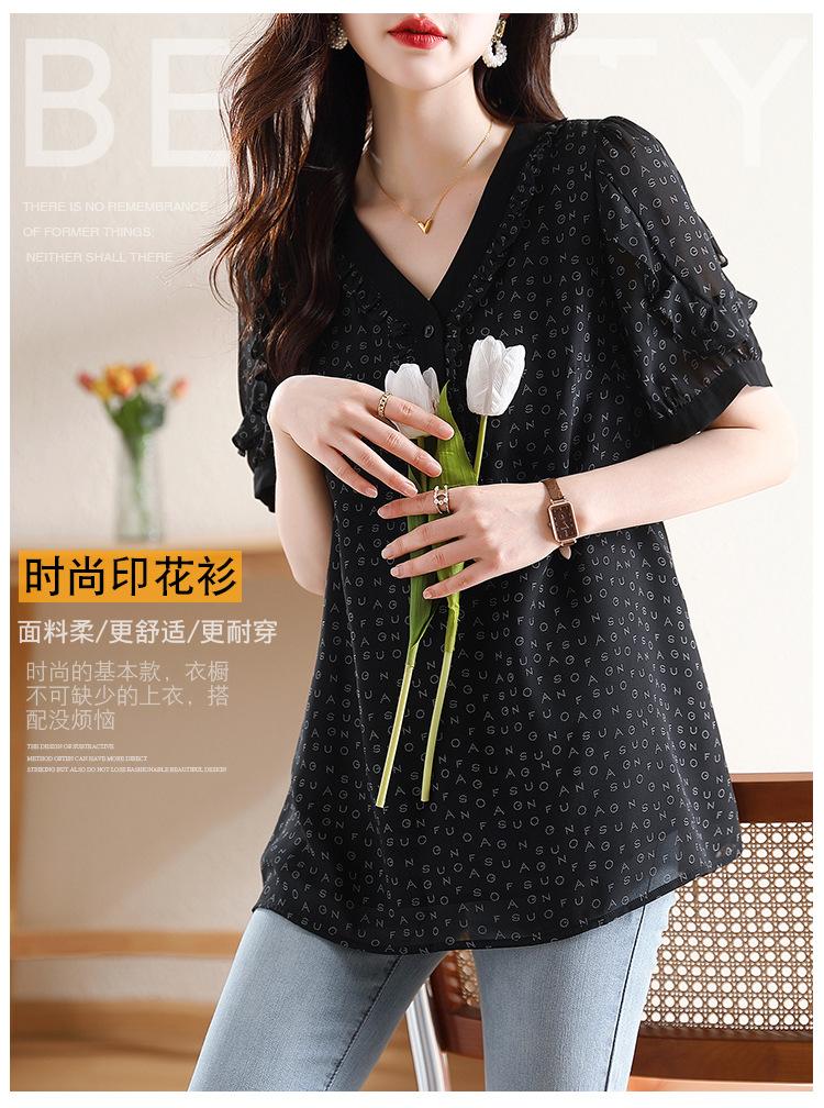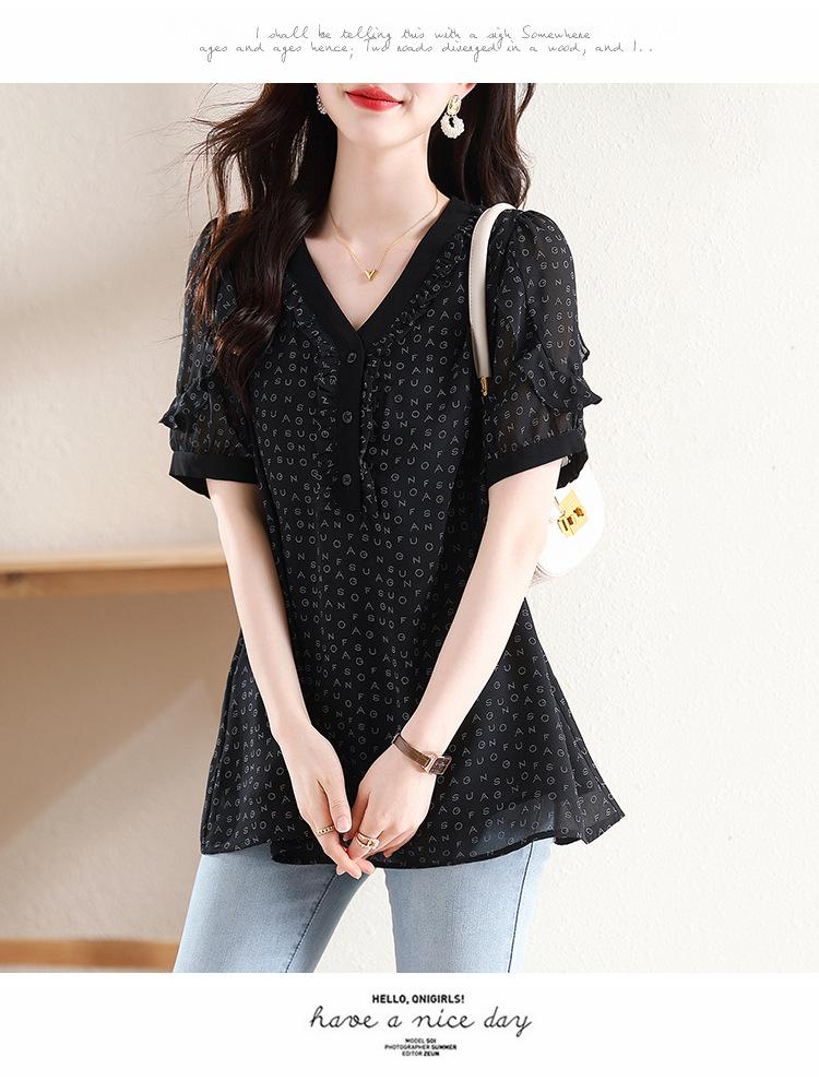 Novedad de verano 2025, camiseta de manga corta elegante con estampado de chica gordita de talla grande para mujer, que cubre el vientre, adelgaza la parte superior de talla grande para mujer.