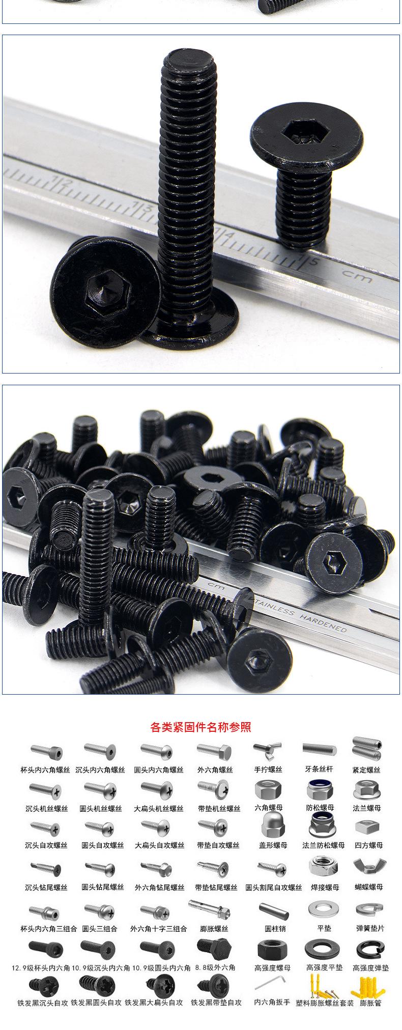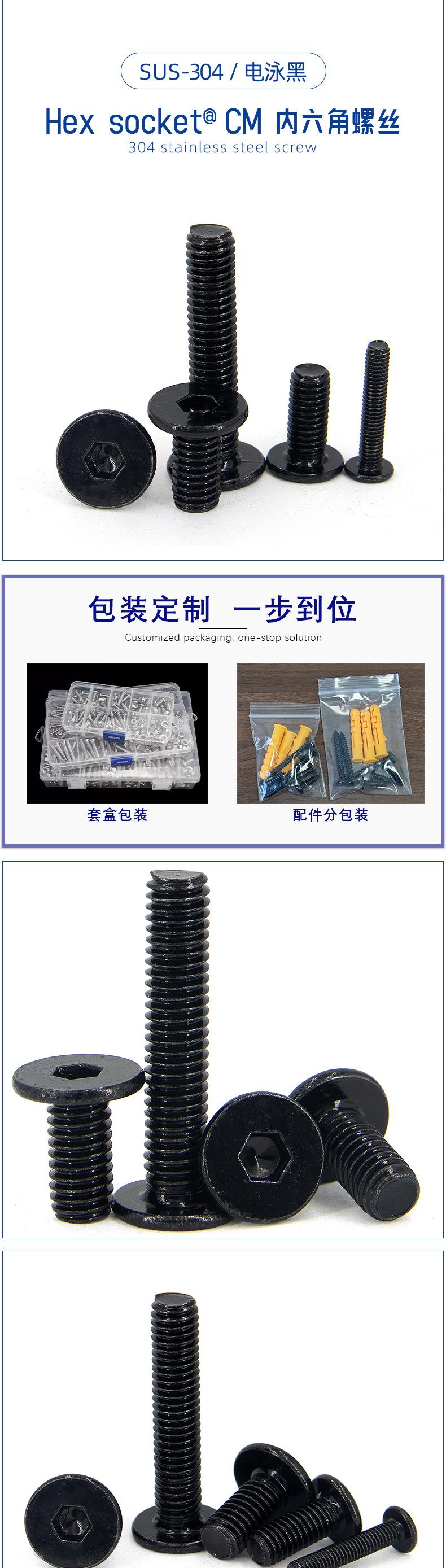 Acero Inoxidable 304 Rodante Negro Cabeza Plana Fina Hexágono Interior Tornillo de Máquina CM Hexágono Interior Estándar Rosca Gruesa M1.4 ~ M4