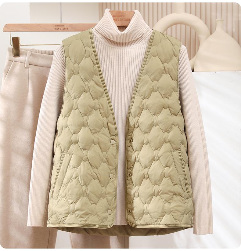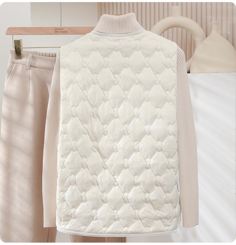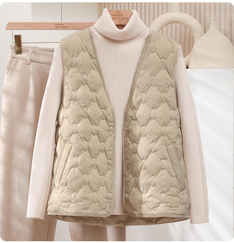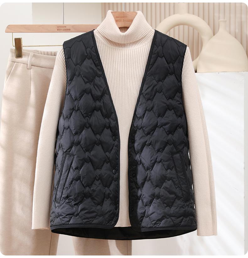 Chaleco de plumas para mujer 2024 nuevo plumón de pato blanco diamante cuello en V sin mangas chaleco chamarra abrigo marea