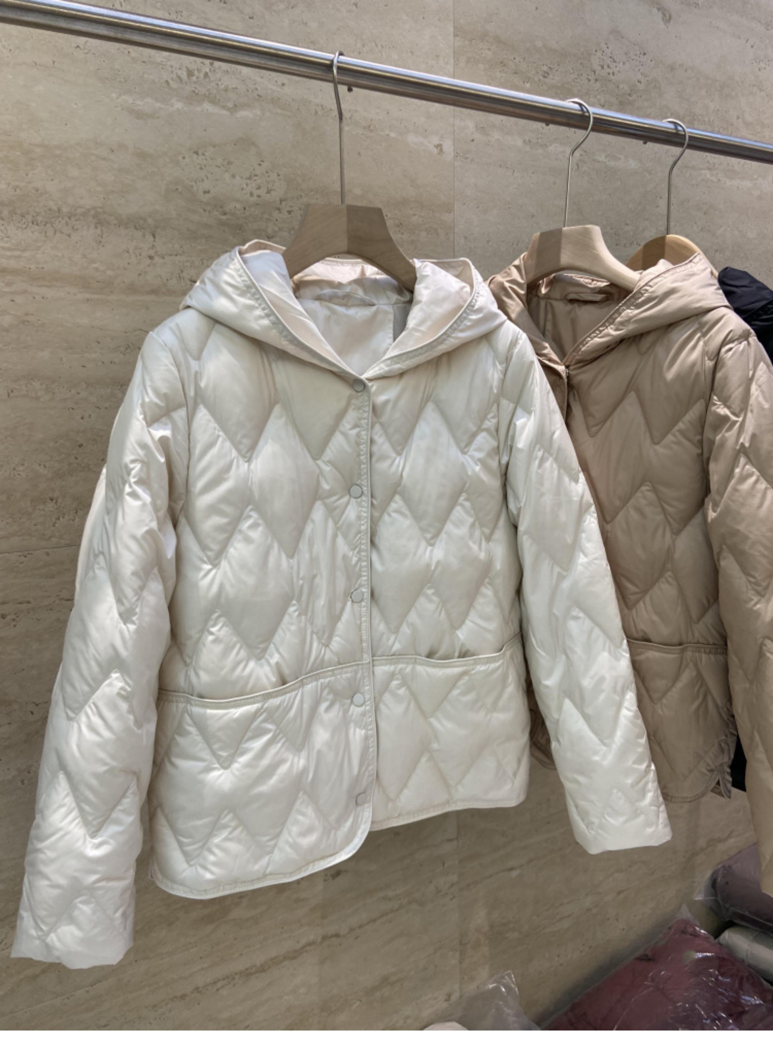 Chaqueta ligera de plumón con capucha con patrón de diamantes para mujer, estilo corto, nueva versión coreana 2025, versátil 90% plumón de pato blanco, abrigo petite