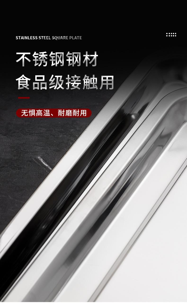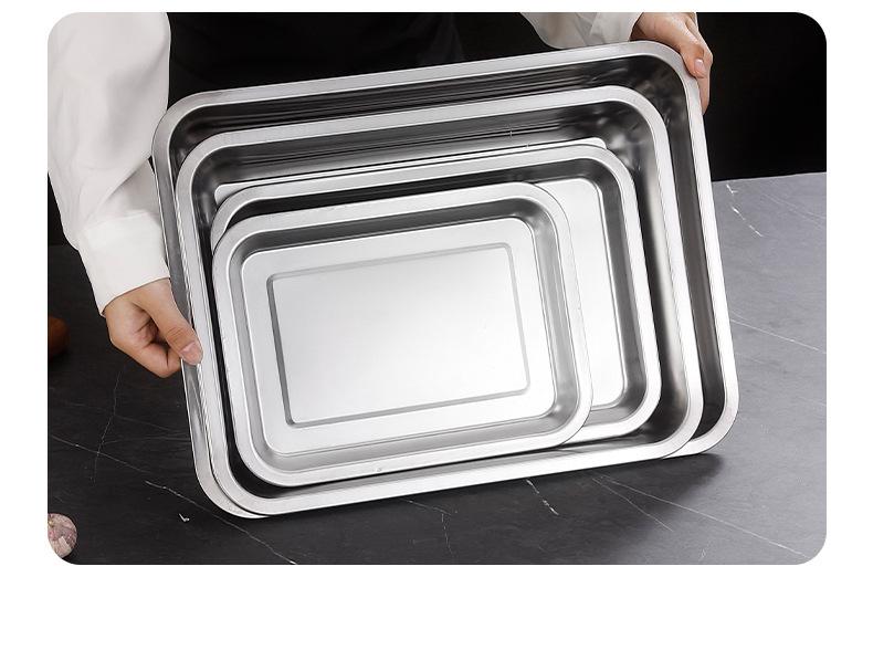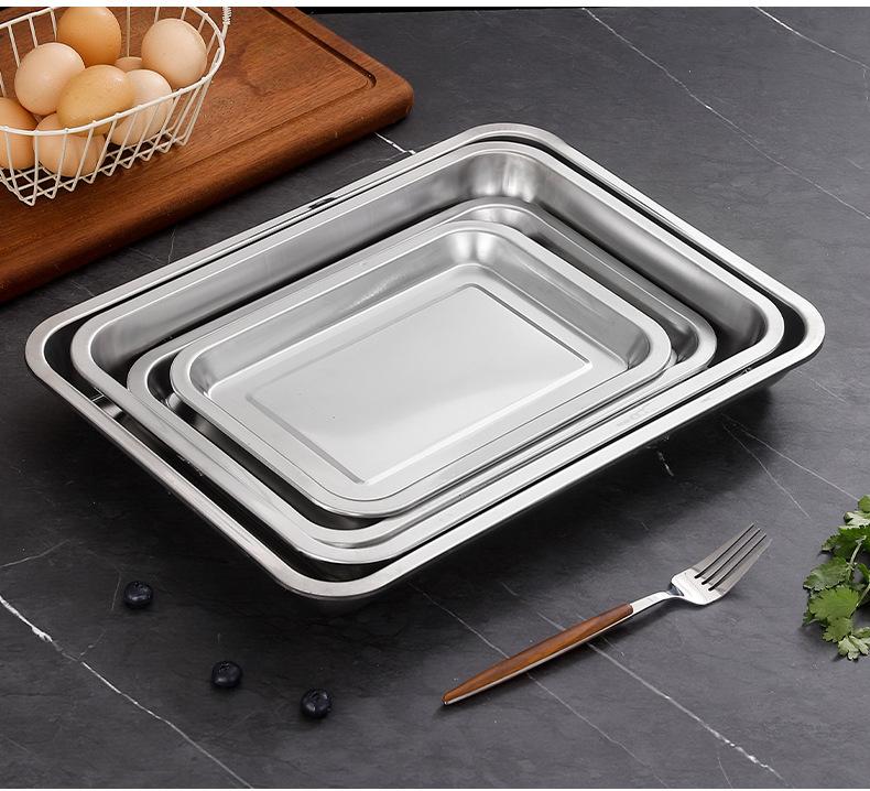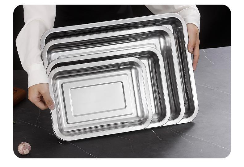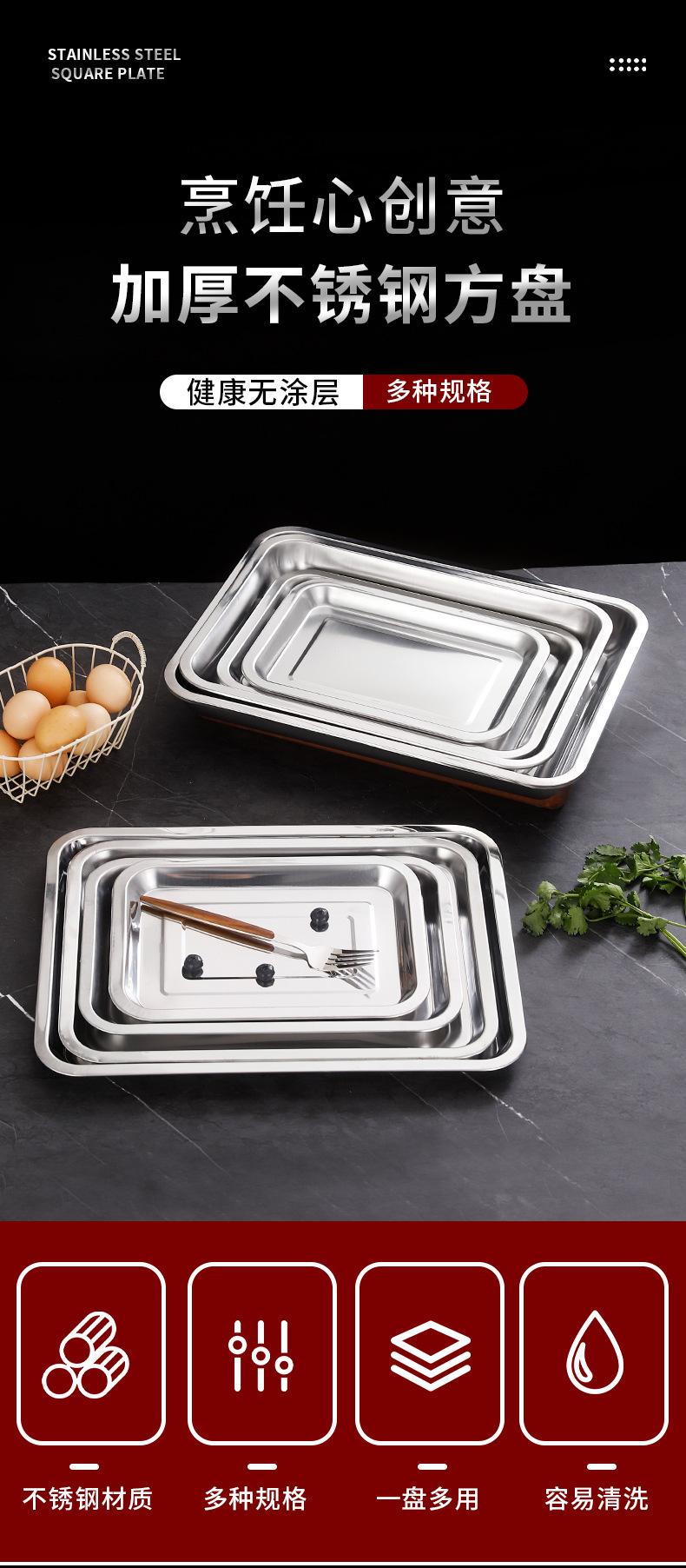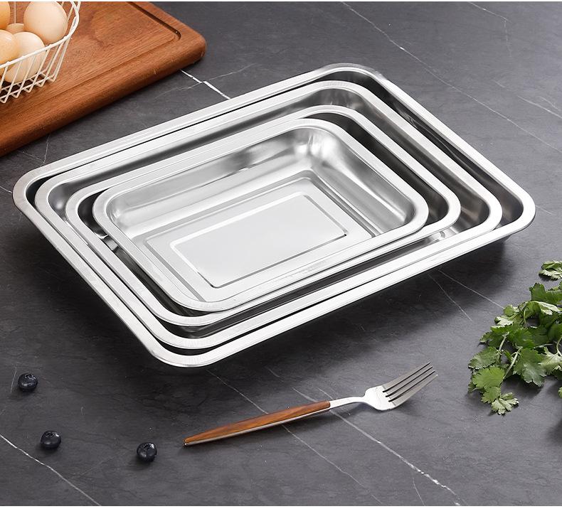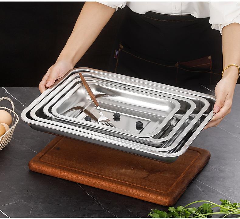 Plato cuadrado de acero inoxidable, plato de arroz al vapor profundo y poco profundo, plato de pescado a la parrilla rectangular grueso, plato cuadrado, plato de comida cocida, bandeja para barbacoa