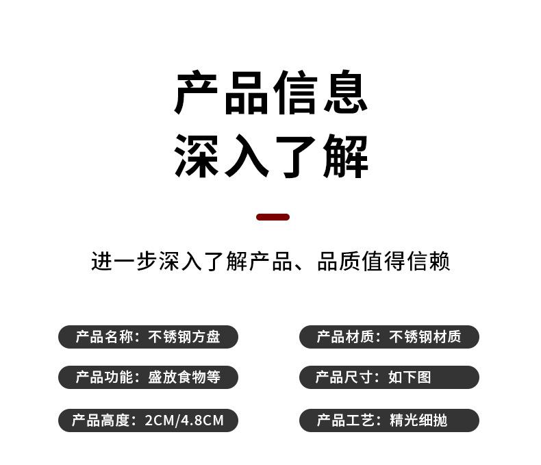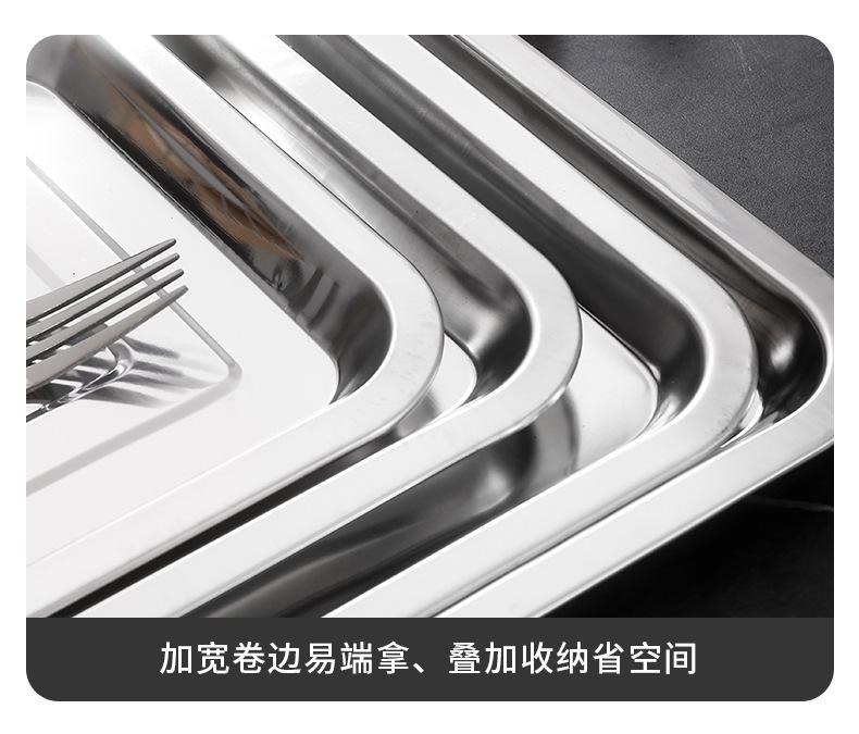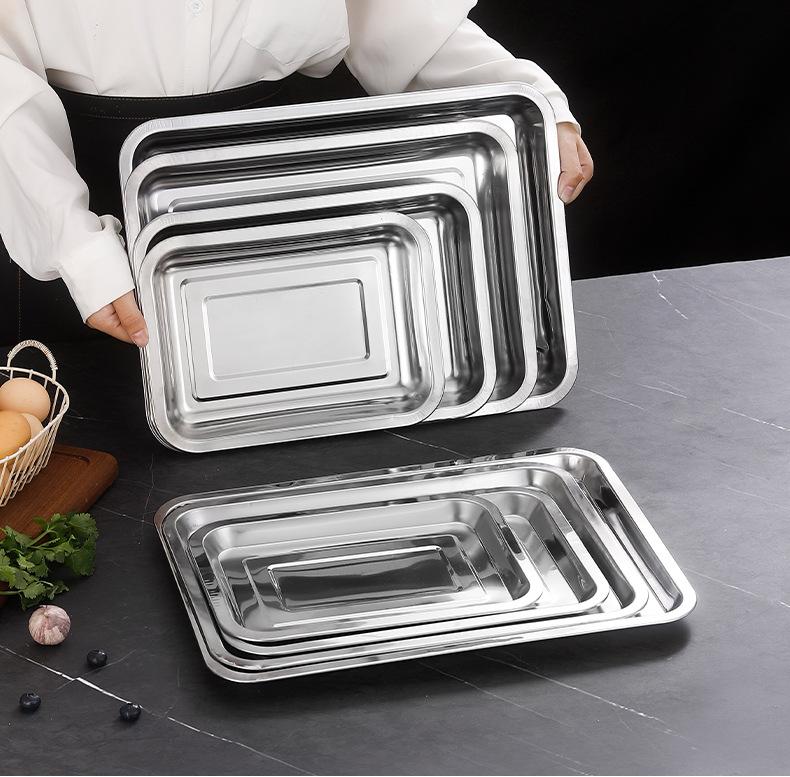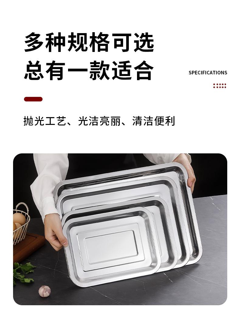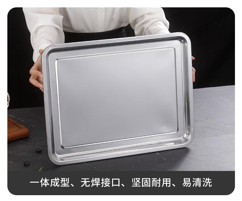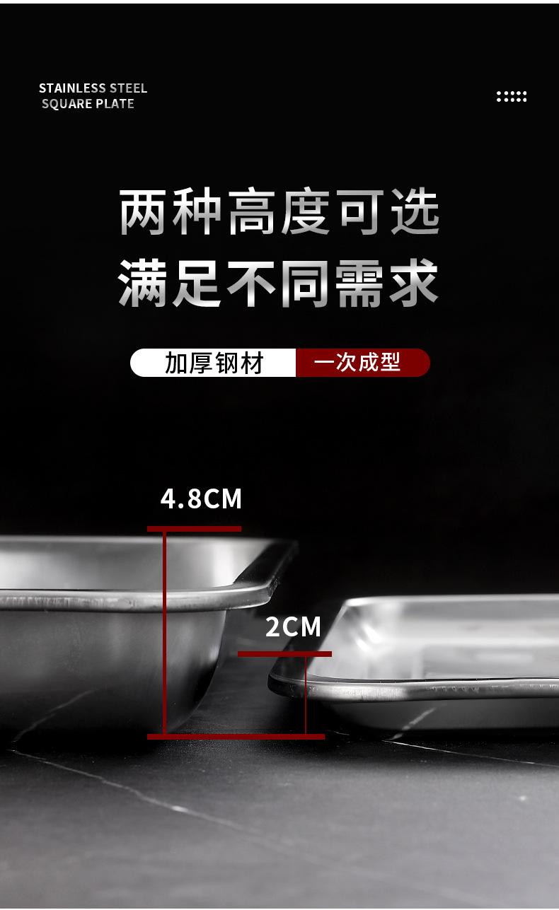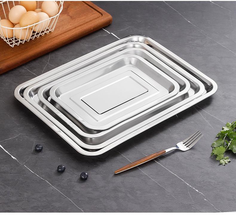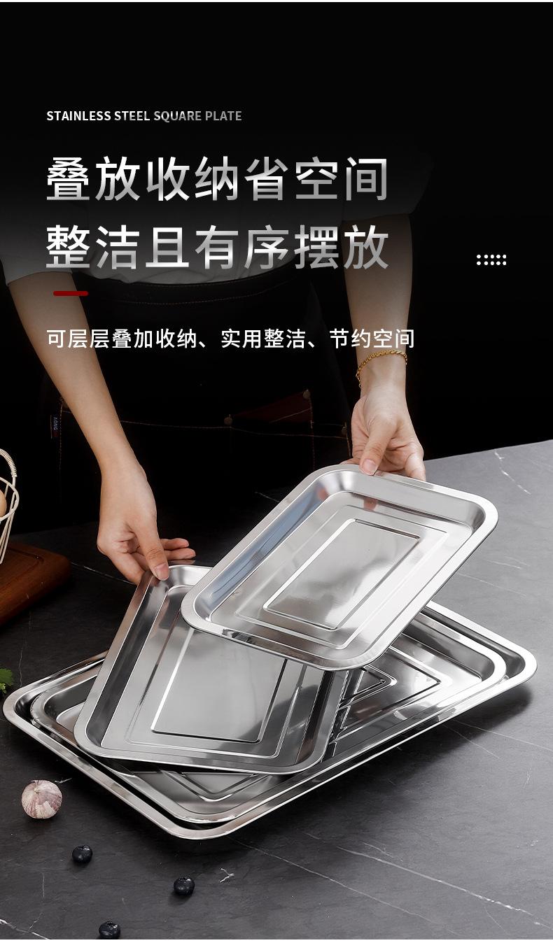 Plato cuadrado de acero inoxidable, plato de arroz al vapor profundo y poco profundo, plato de pescado a la parrilla rectangular grueso, plato cuadrado, plato de comida cocida, bandeja para barbacoa