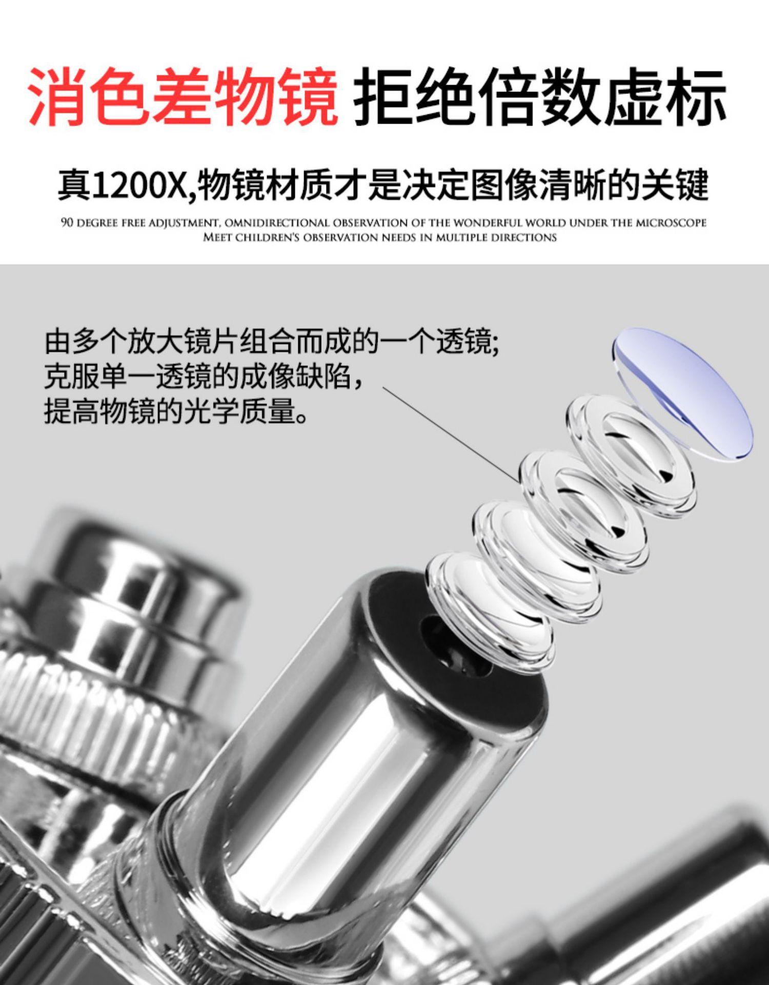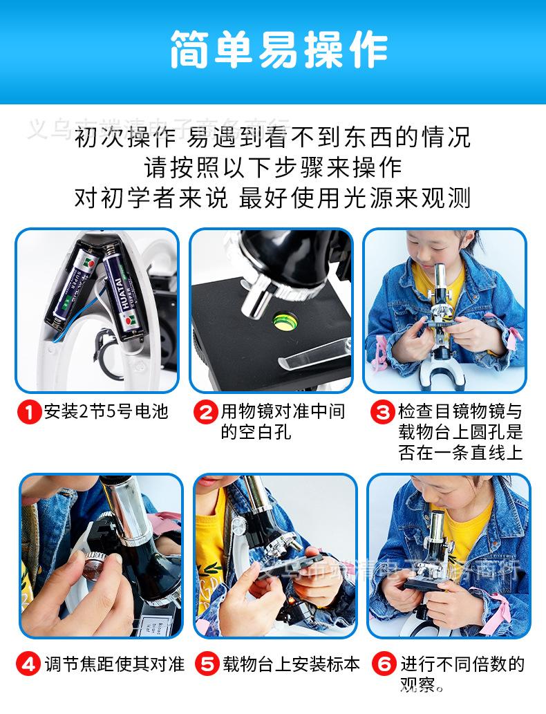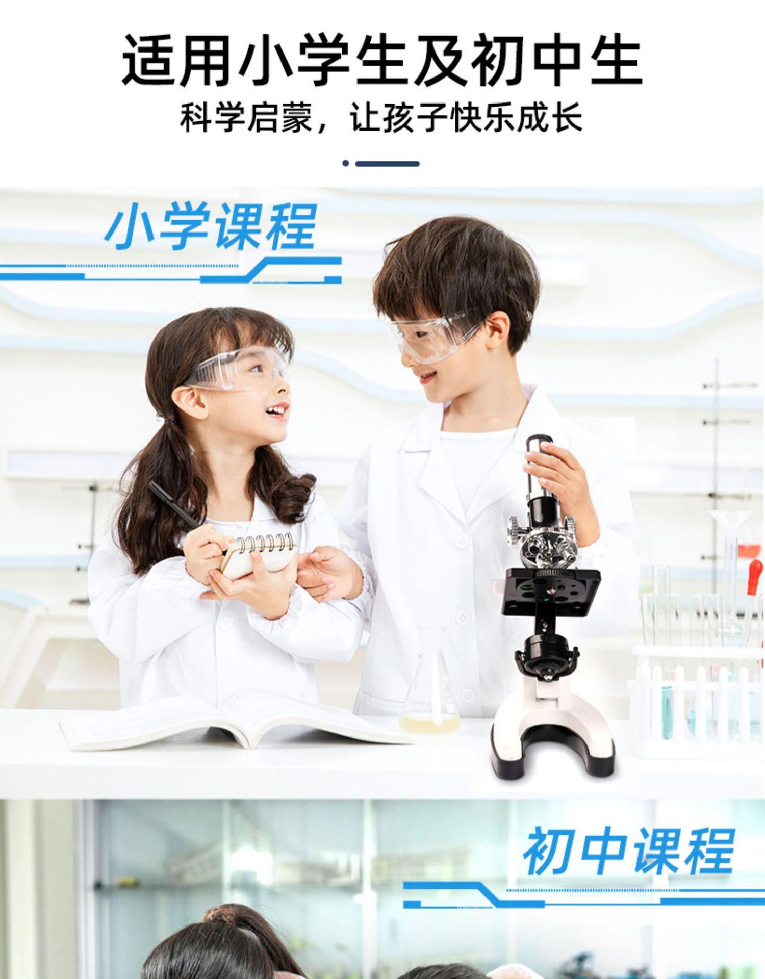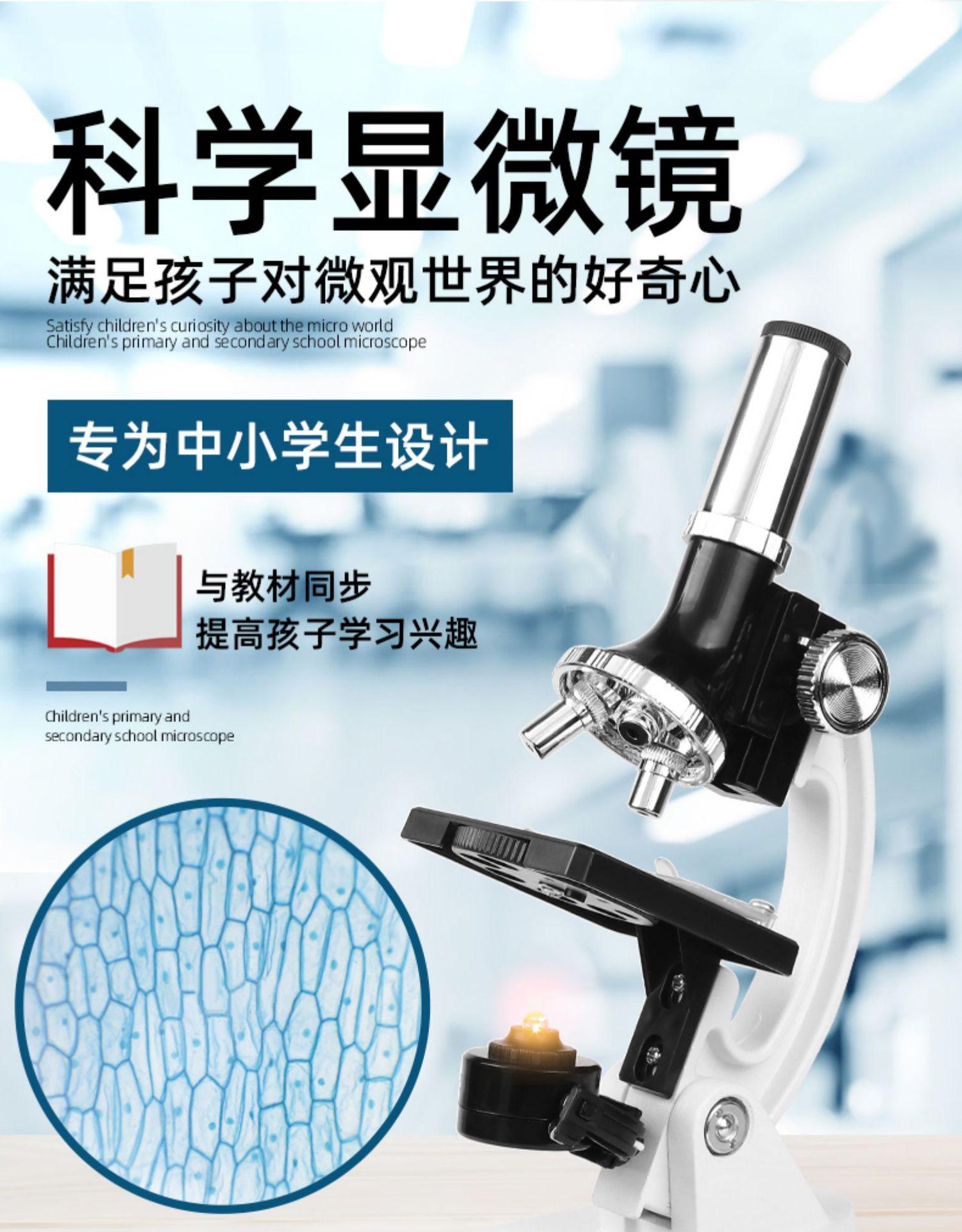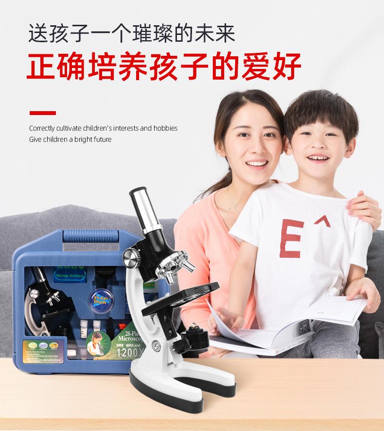 Venta al por mayor de fábrica HD 1200 veces con fuente de luz microscopio de metal para niños experimento científico para estudiantes zootecnia productos acuáticos
