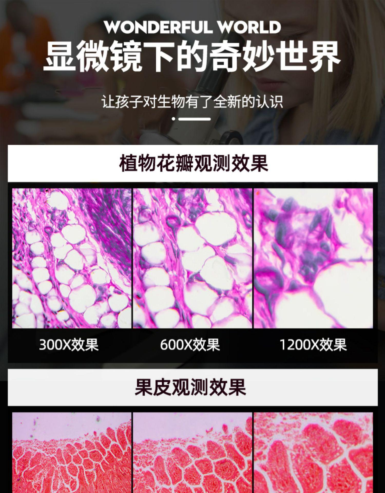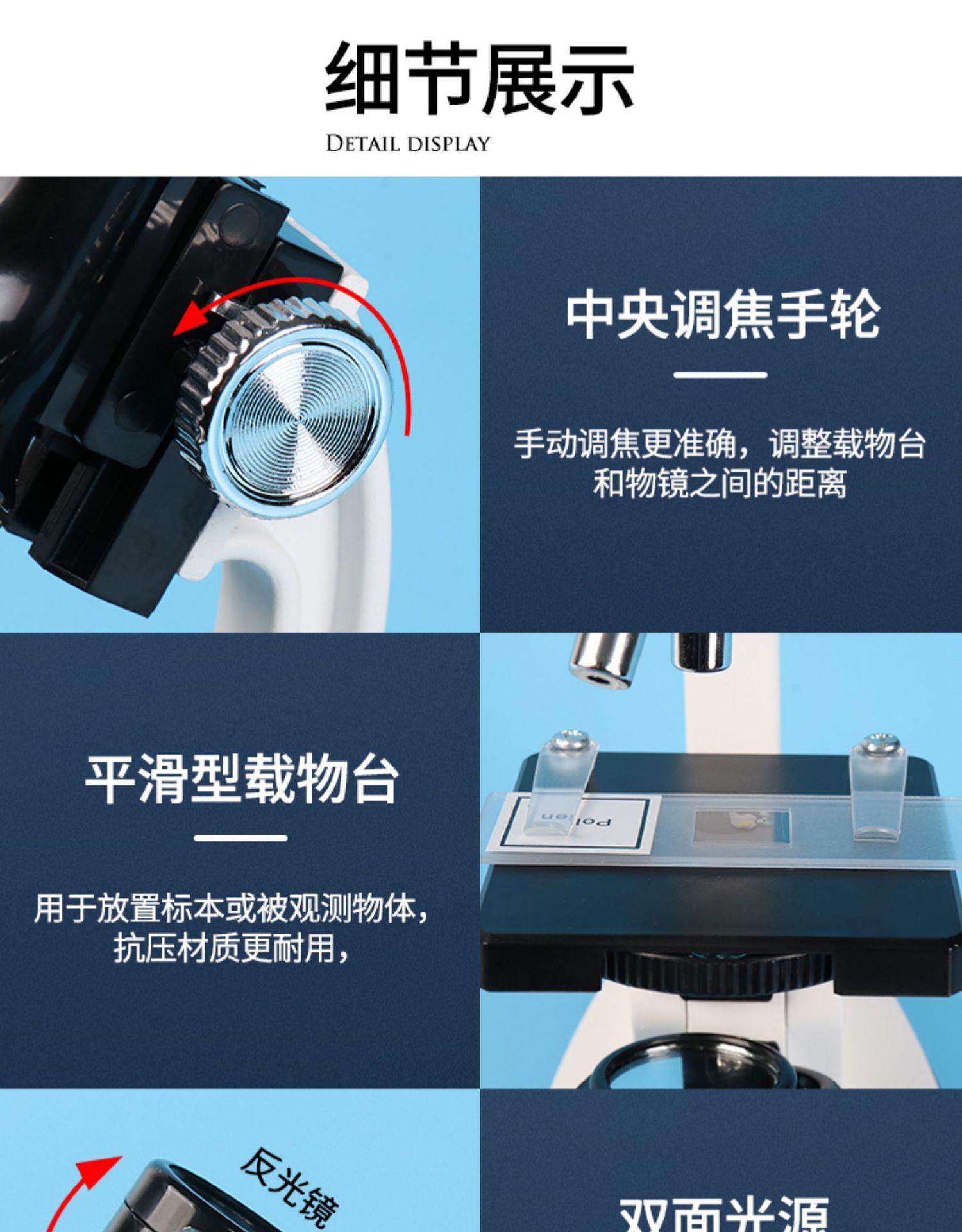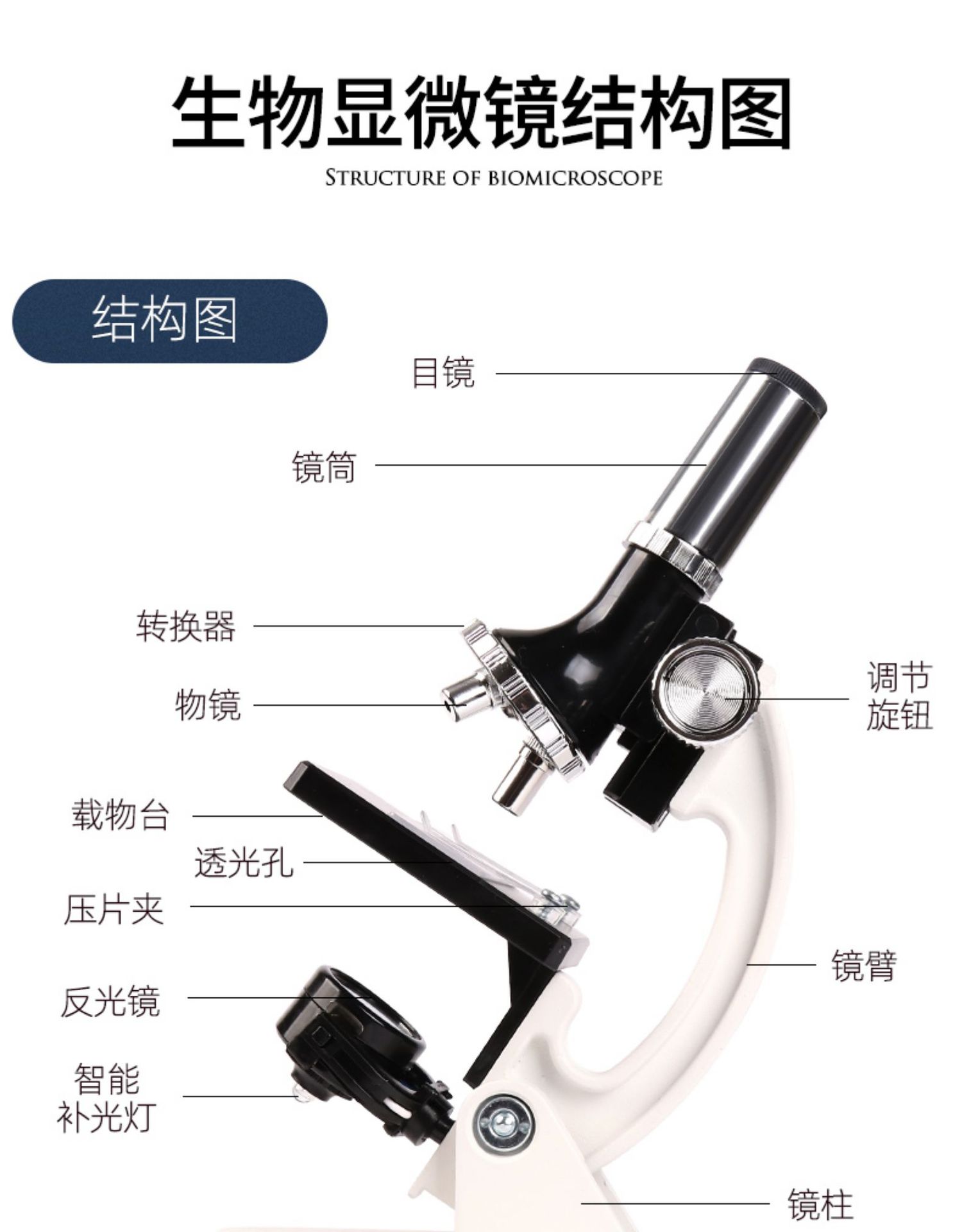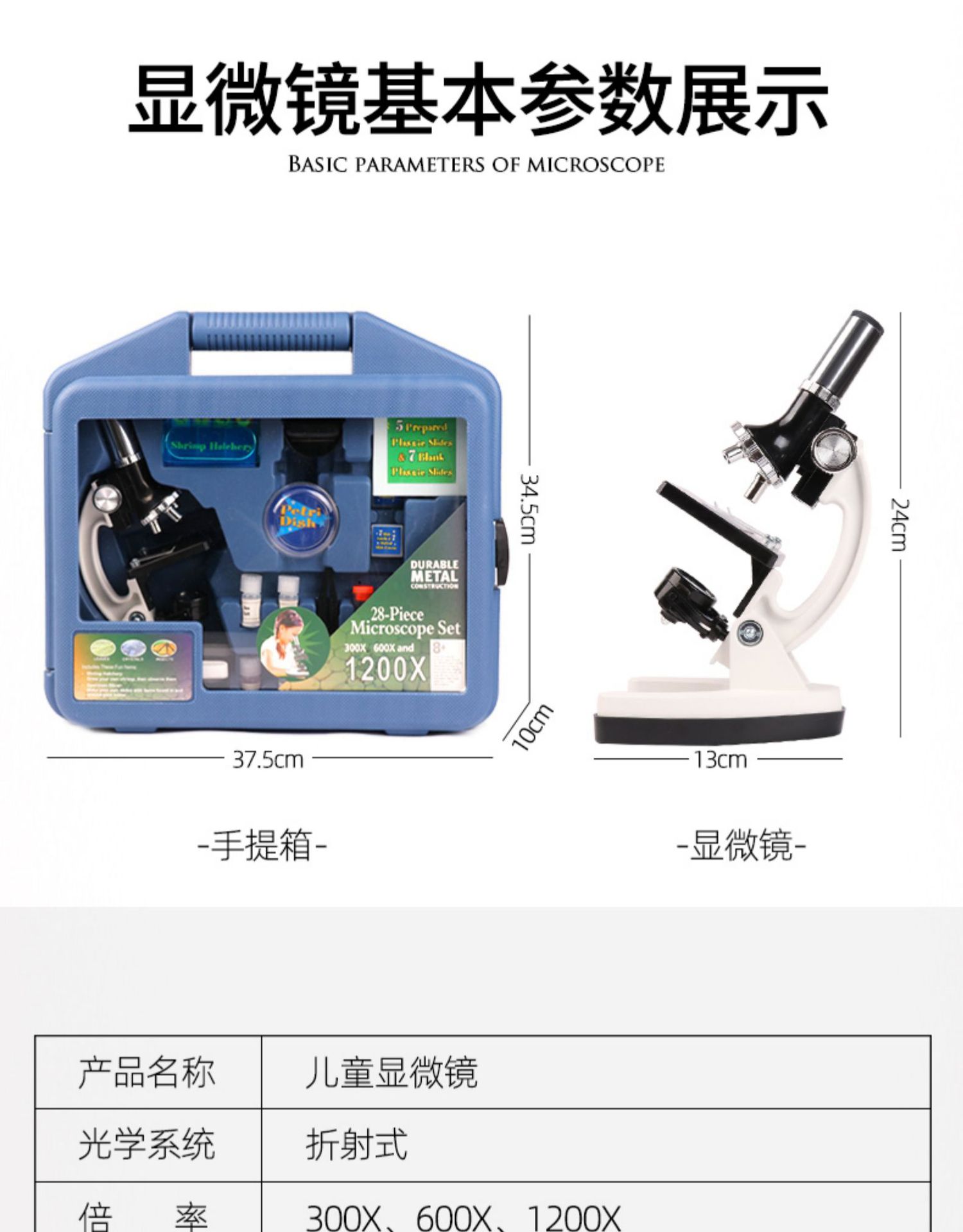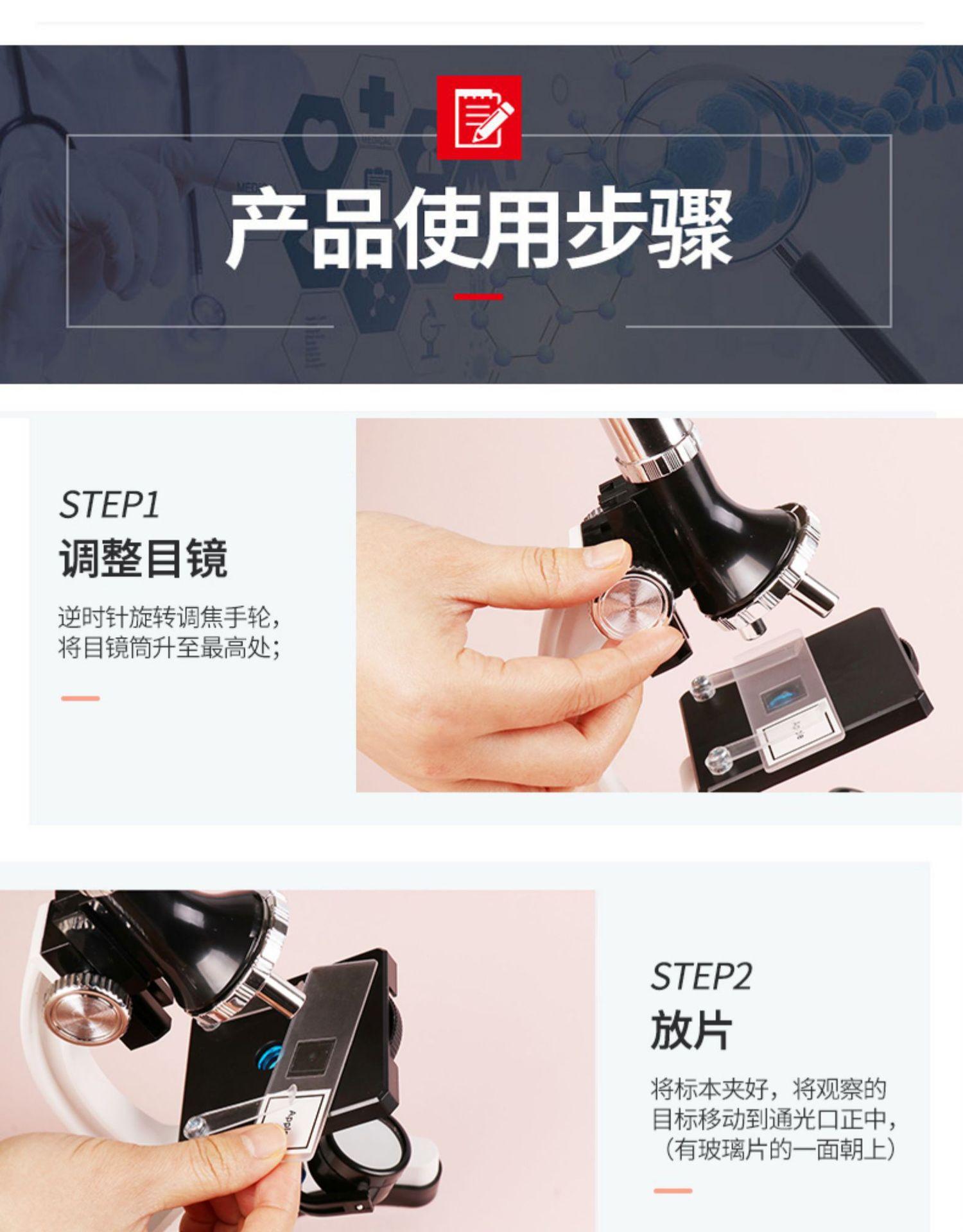 Venta al por mayor de fábrica HD 1200 veces con fuente de luz microscopio de metal para niños experimento científico para estudiantes zootecnia productos acuáticos