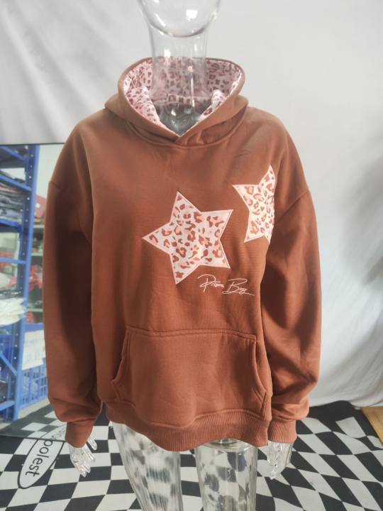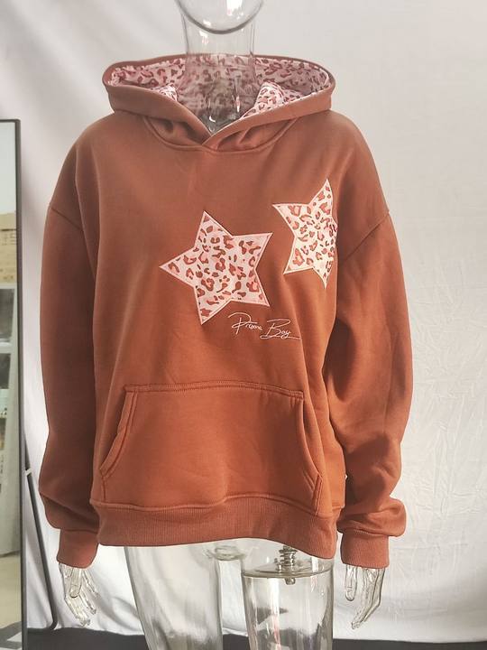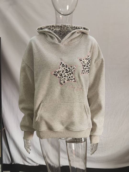 En stock Europa y Estados Unidos estación independiente transfronteriza estrella bordado con capucha versátil suéter holgado casual de punto