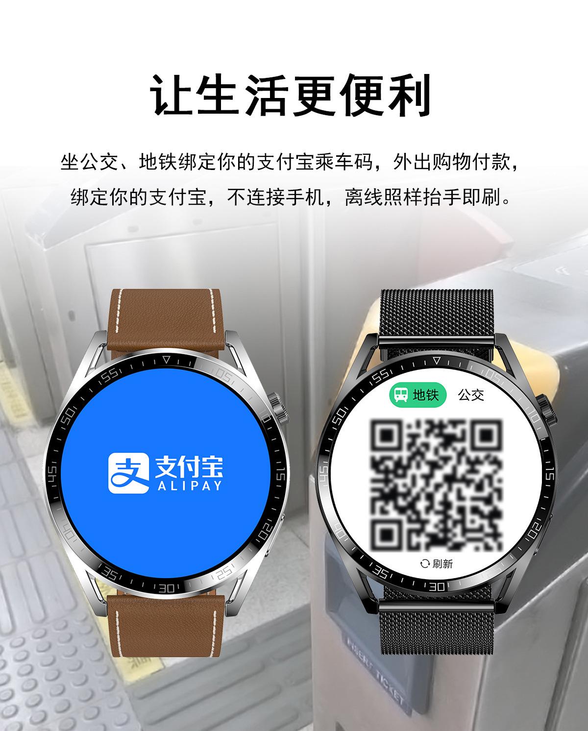 Huaqiang Beiding equipado con reloj inteligente resistente al agua GT4MAX para pago fuera de línea llamada Bluetooth NFC reloj con código de viaje