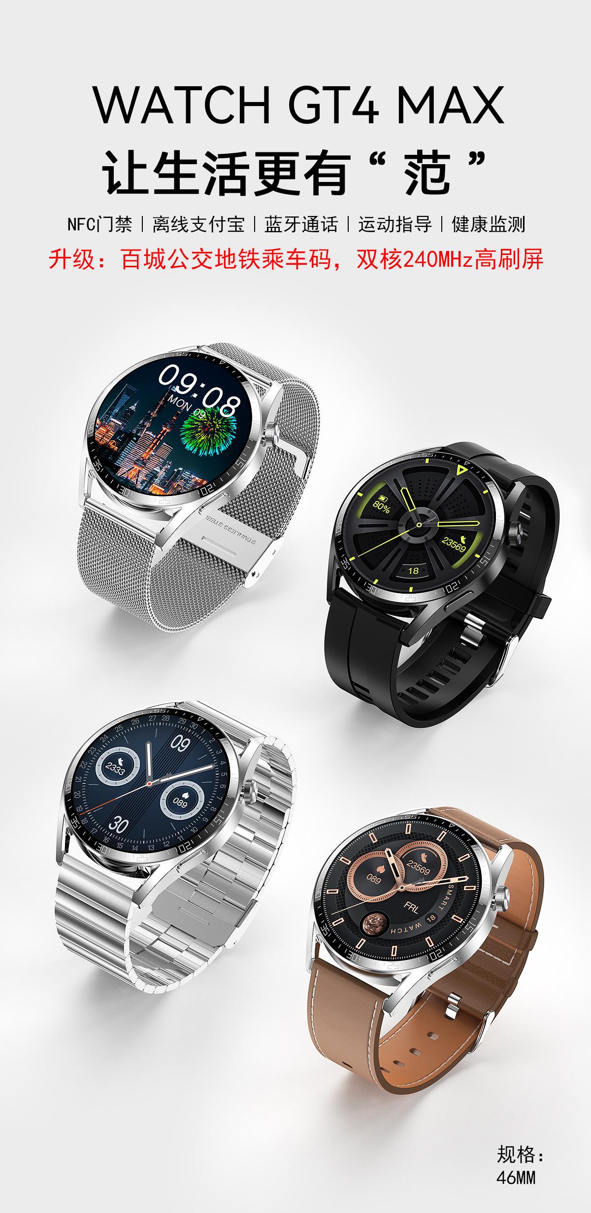 Huaqiang Beiting equipado con reloj inteligente GT4Max, código de paseo, llamada Bluetooth, pago sin conexión, reloj deportivo resistente al agua