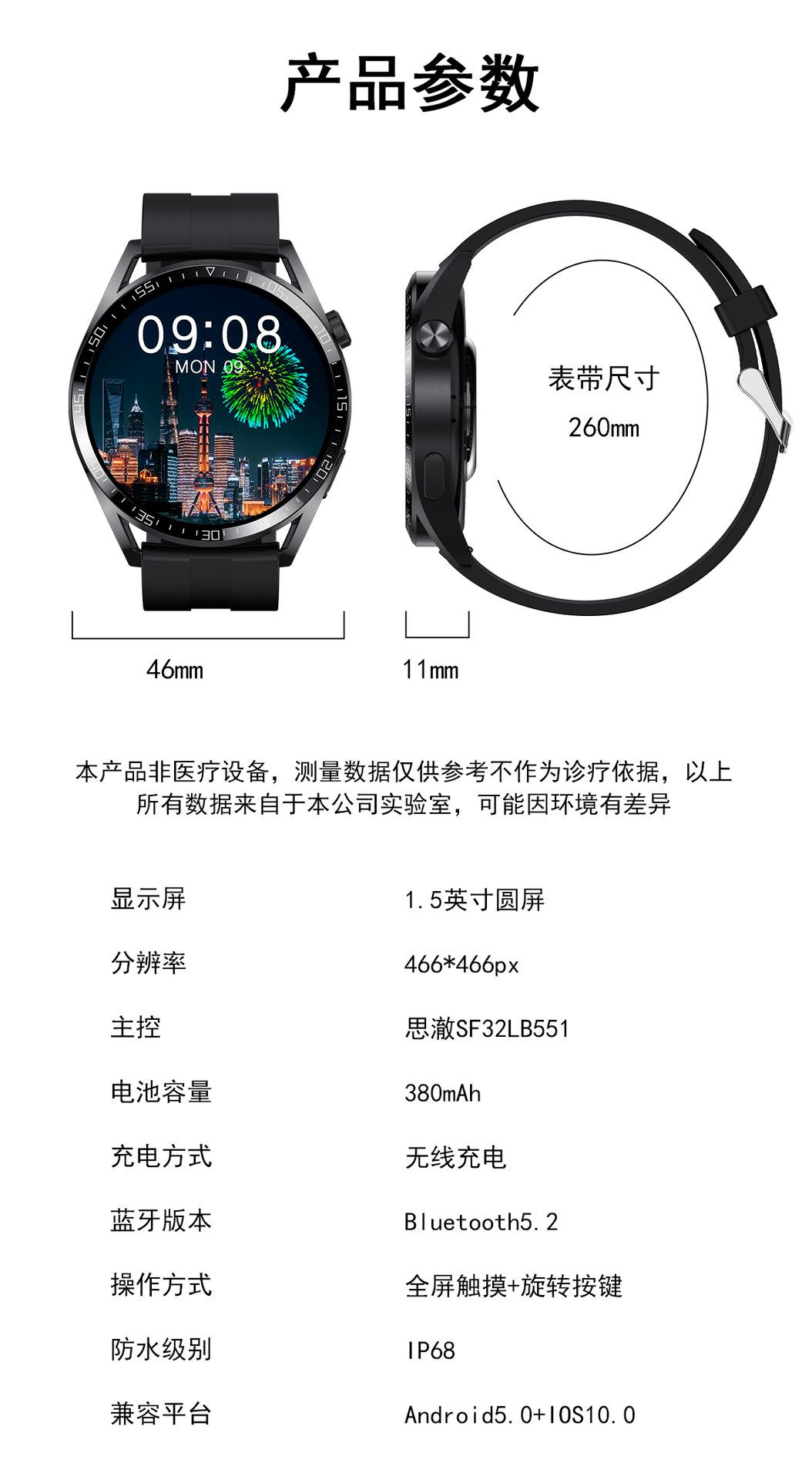 Modelo caliente transfronterizo Reloj inteligente GT4Pro Huaqiangbei Monitoreo de frecuencia cardíaca y presión arterial Multifunción Reloj con llamada Bluetooth