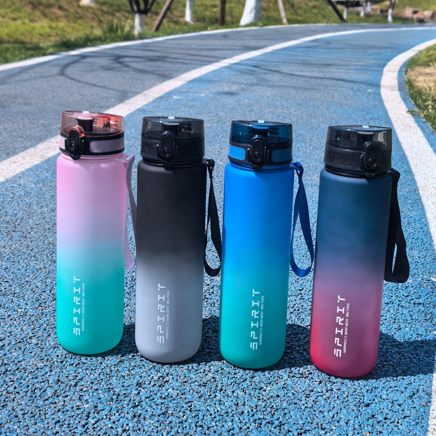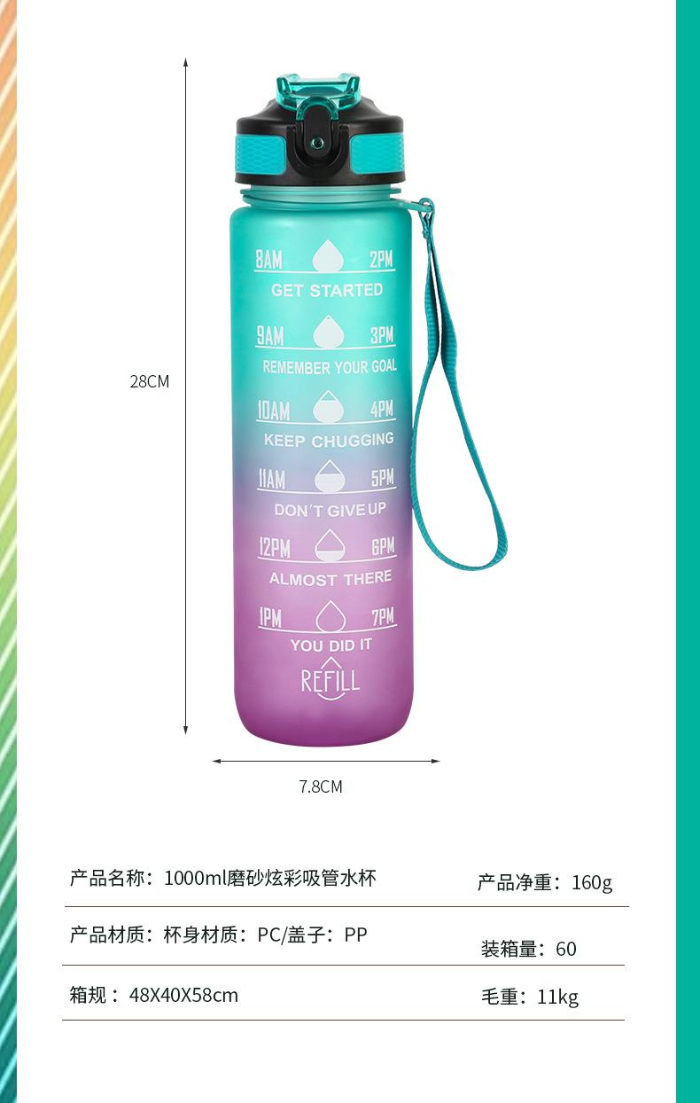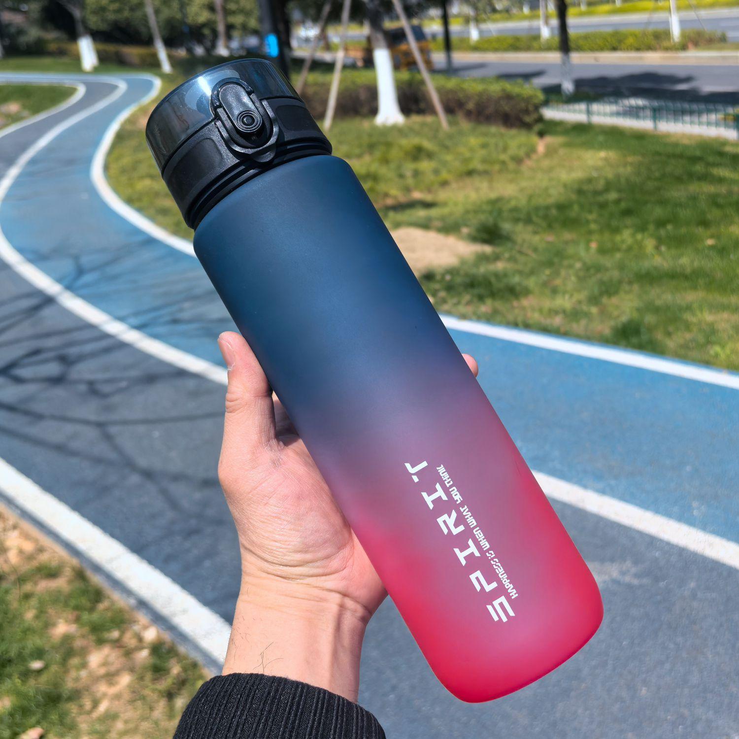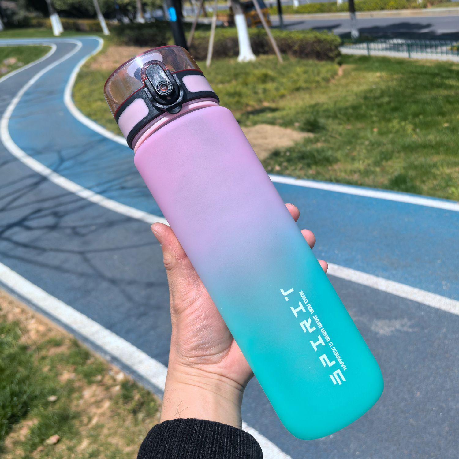 Vaso de Plástico Degradado de Gran Capacidad de 1L para Bebidas Calientes, Portátil, Simple, con Tapa de Rebote, Botella Deportiva para Comercio Exterior
