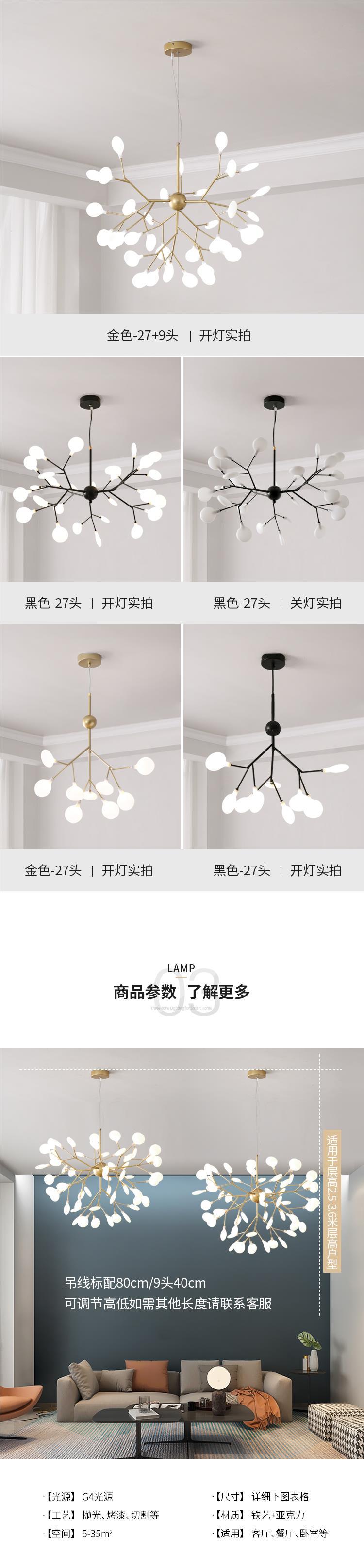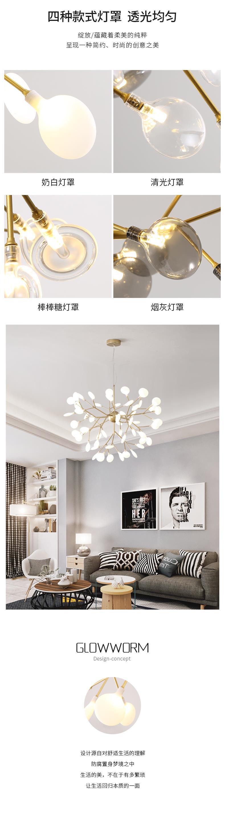 Lámpara de Araña Escandinava Post-moderna Simple Creativa Elegante Cálida Lámpara de Dormitorio Popular Lámpara de Sala de Estar Ramas Lámparas de Luciérnagas