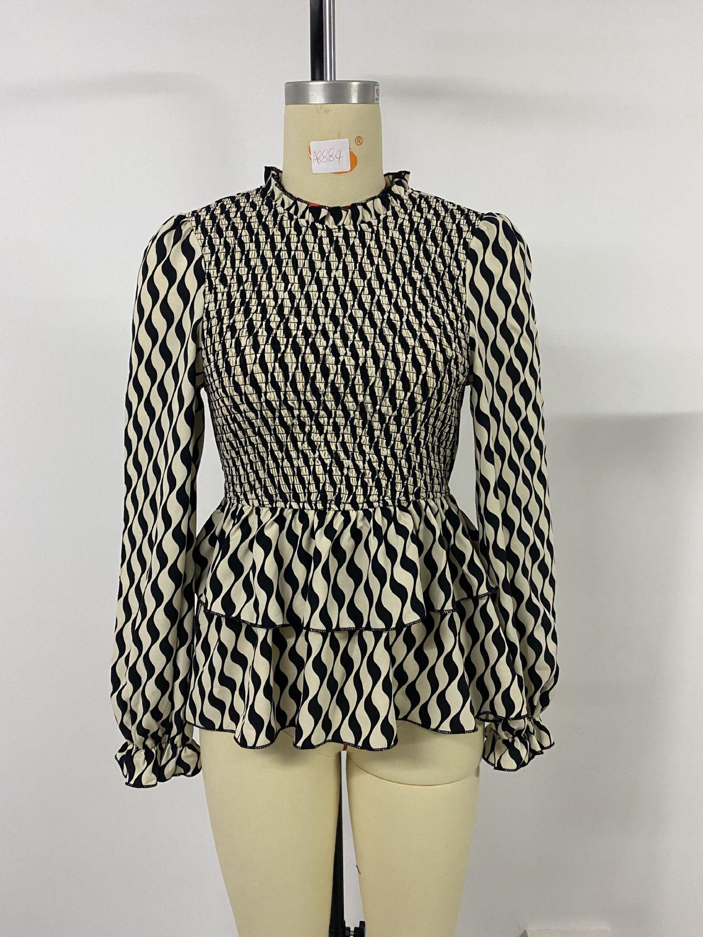 Compra Camisa de manga larga con estampado de ondas transfronterizo para mujer, nueva camisa de otoño europea y americana de Amazon Independent Station 2024 al por mayor en Joom.pro
