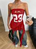 2025 Nuevo Estilo Strapless Estampado Digital Borde de Oreja Flor Chaleco de Verano para Mujer Ropa Exterior Espalda Hermosa Aspecto Delgado American Spice Girl