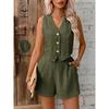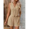 Conjunto de dos piezas europeo y americano transfronterizo para mujer Comercio exterior Sin mangas Talla grande Chaleco con botones de color sólido para mujer Traje para mujer