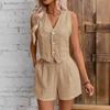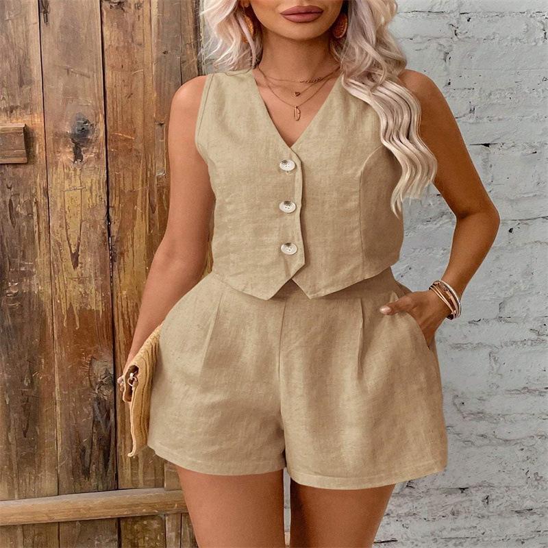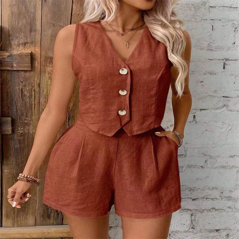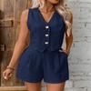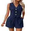 Conjunto de dos piezas europeo y americano transfronterizo para mujer, traje de chaleco de botones de color sólido para mujer de talla grande para comercio exterior