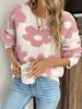 Suéter de Moda de Punto Casual de Otoño e Invierno para Mujer con Jacquard de Flores y Cuello Redondo
