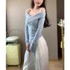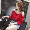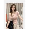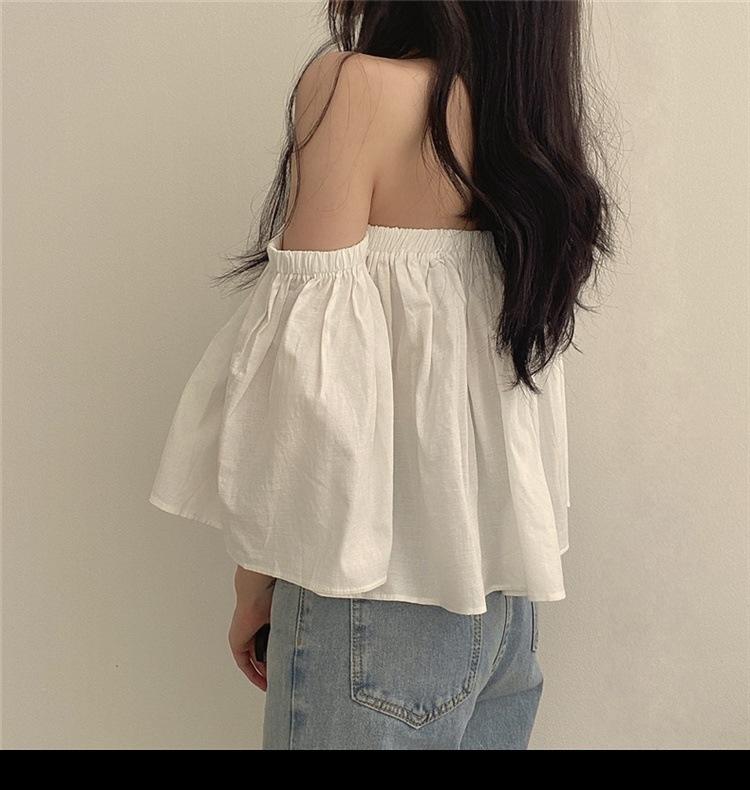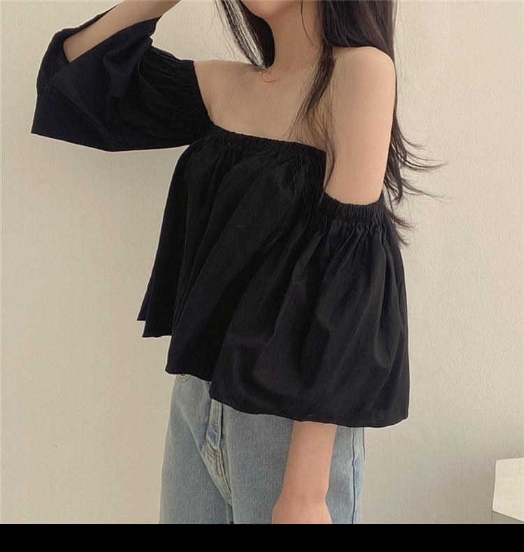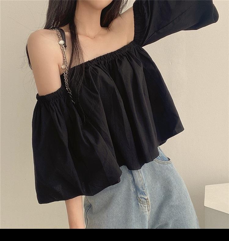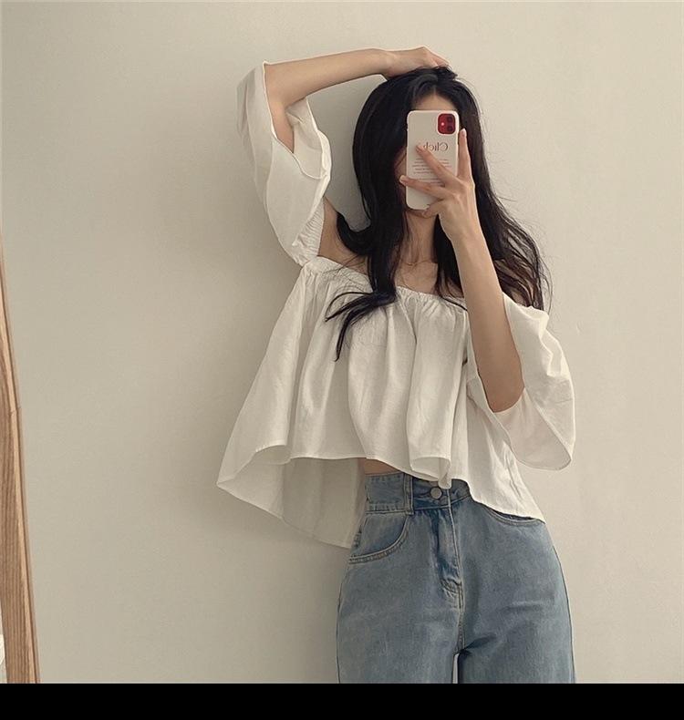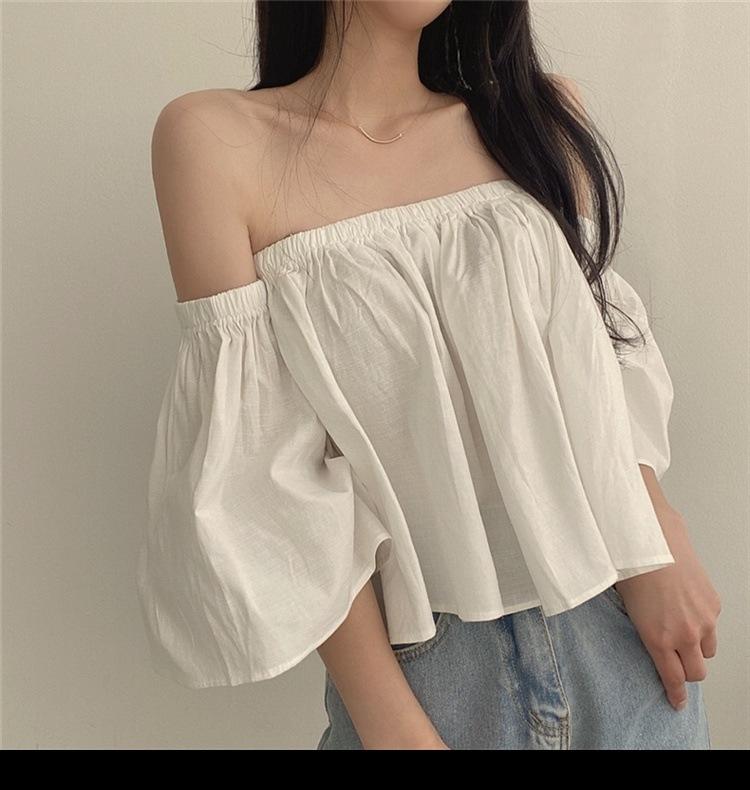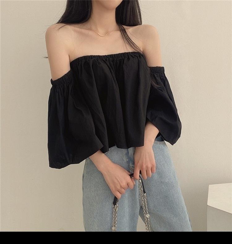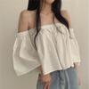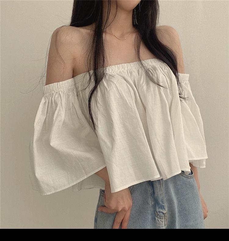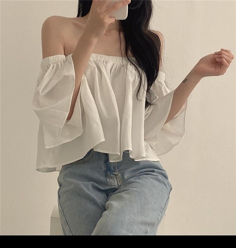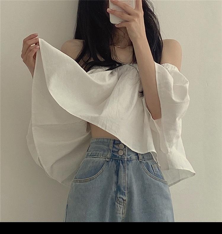 Primavera y Otoño 2025 Nuevo Top de Tubo Bardot de Manga Trompeta Estilo Francés Suave Camisa Corta para Mujer