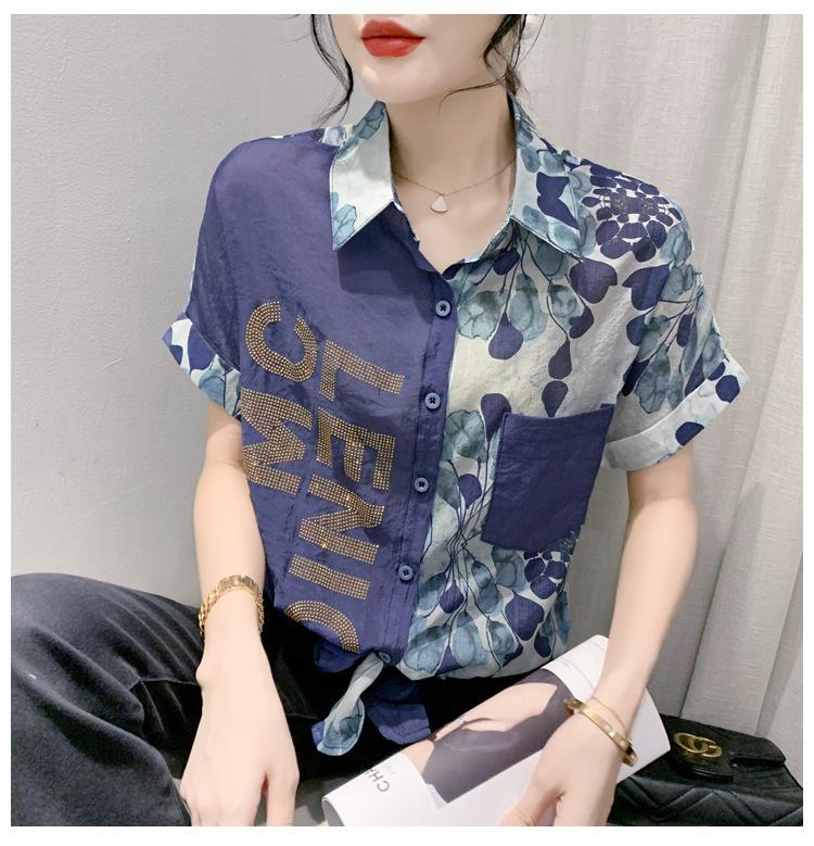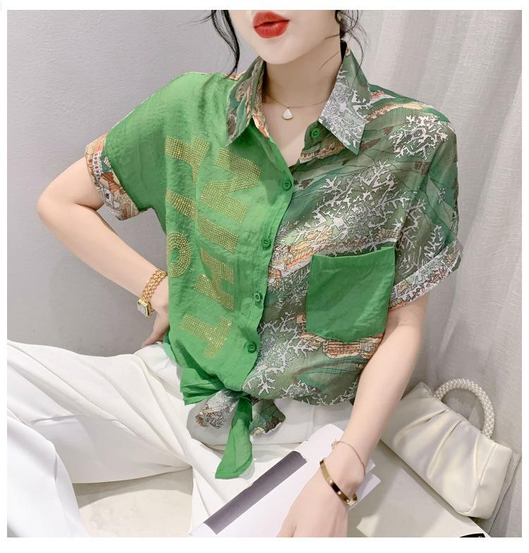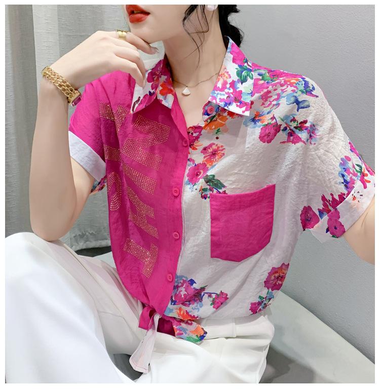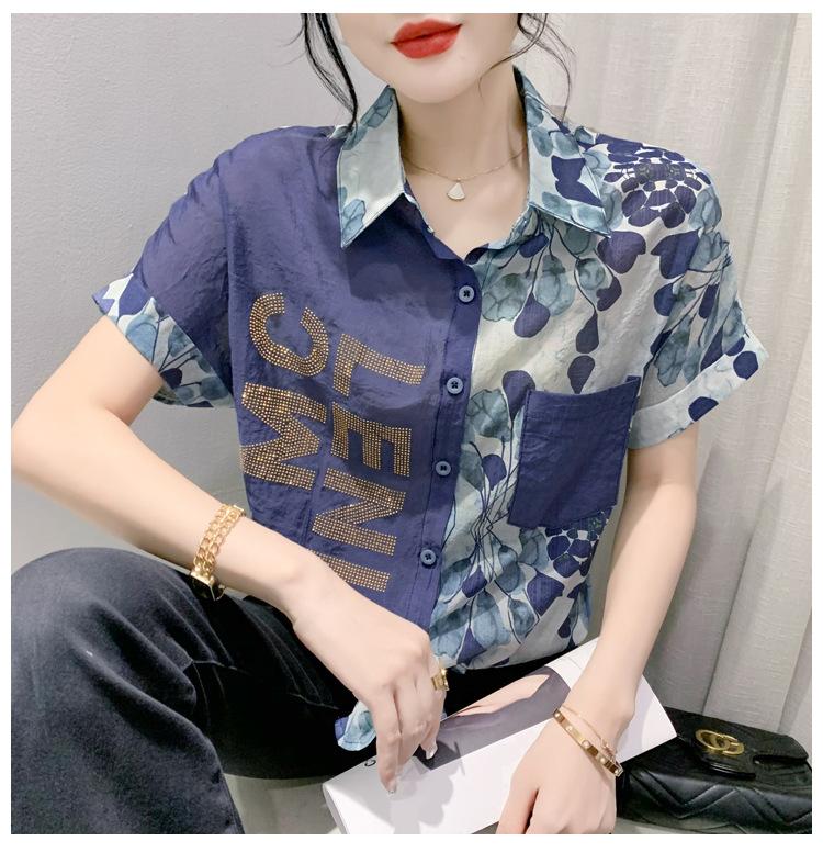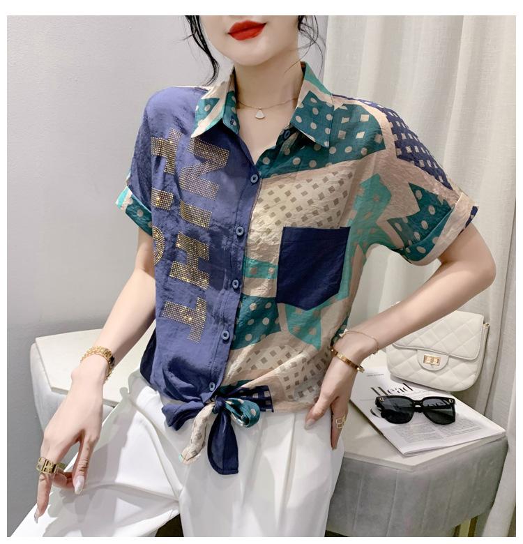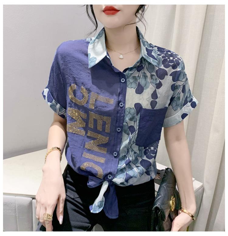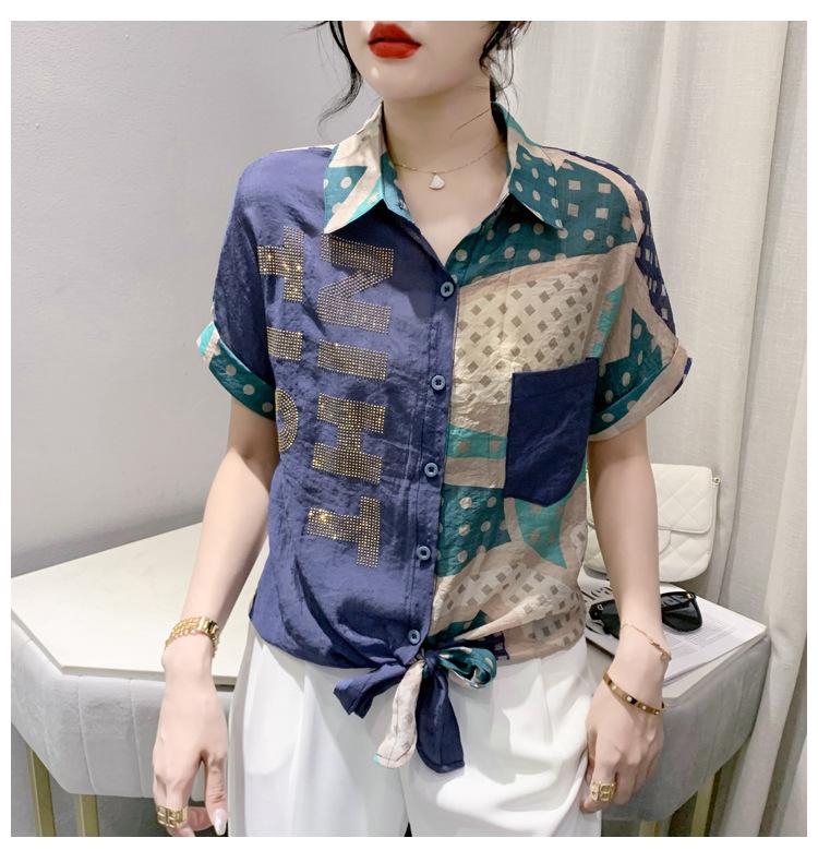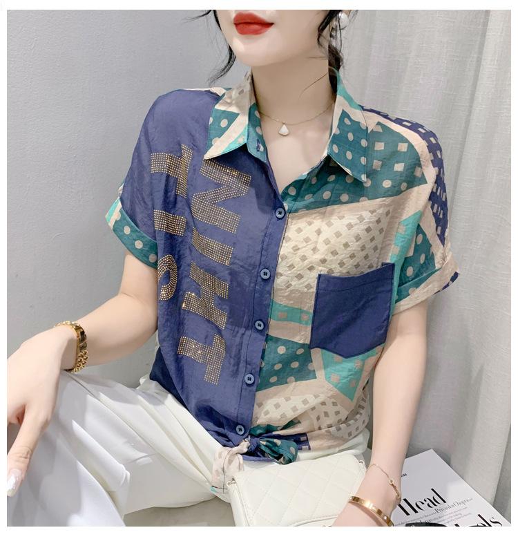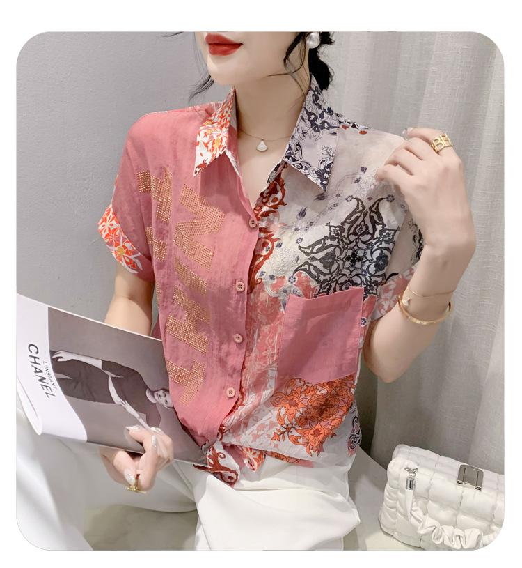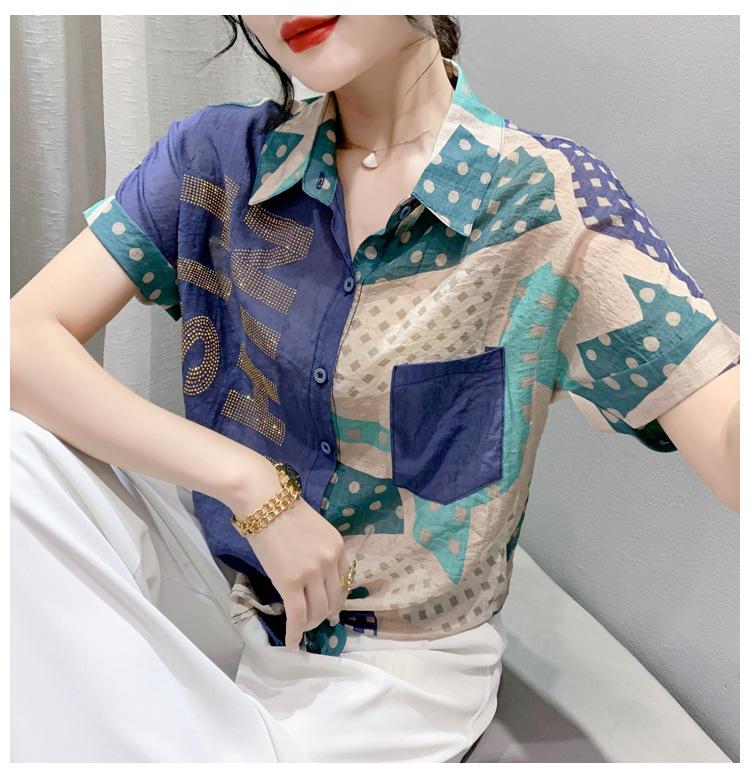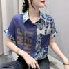 Verano 2025 Nueva Llegada Suelta Estampada Camisa de Cuello Polo con Tirantes para Mujer Elegante para Ir al Trabajo Manga Corta Moderna Combinable Top