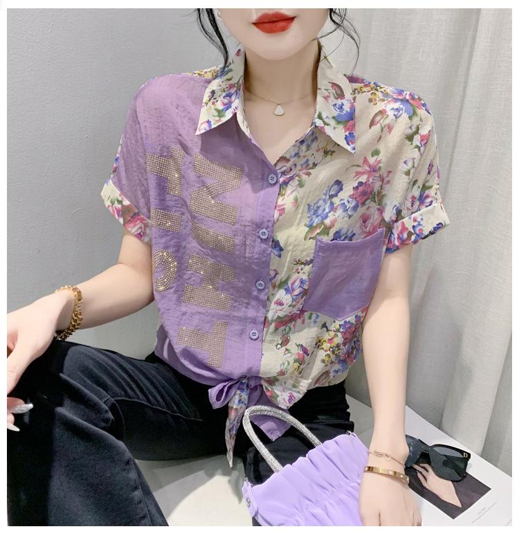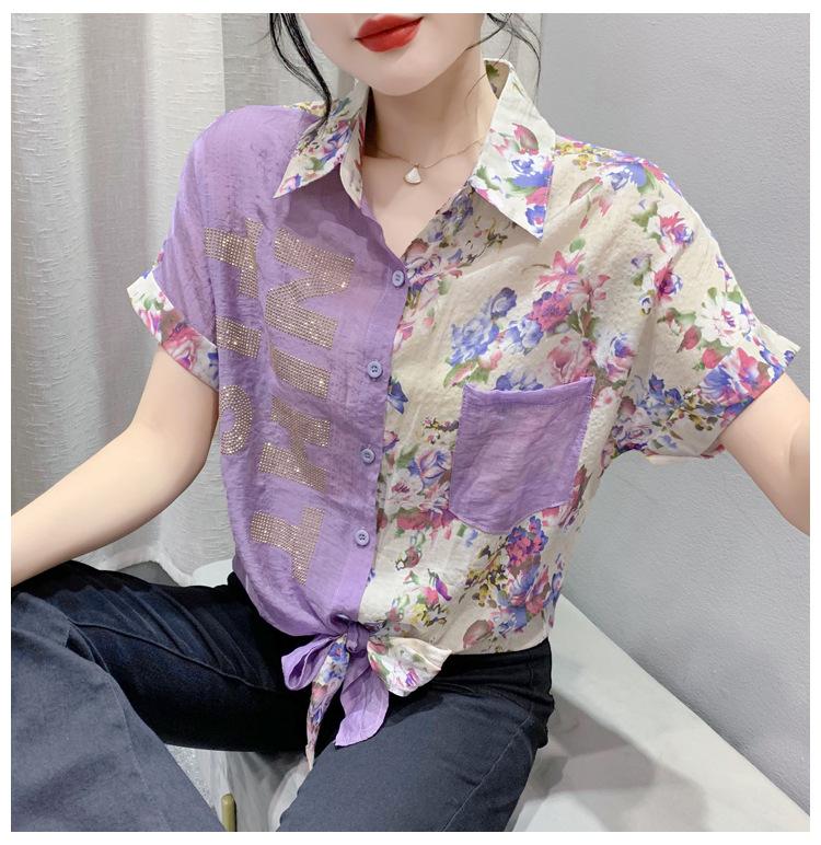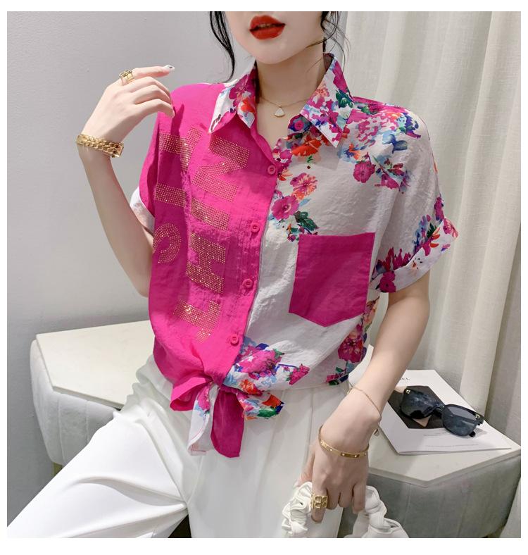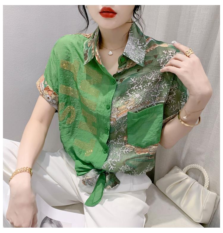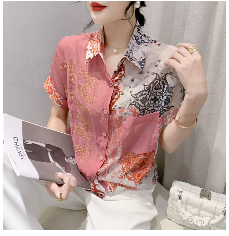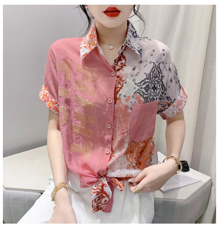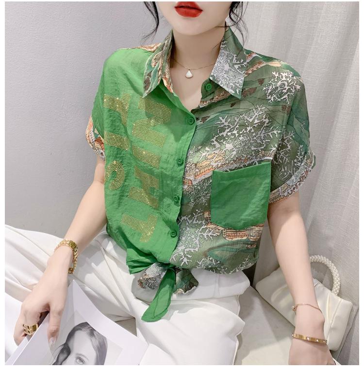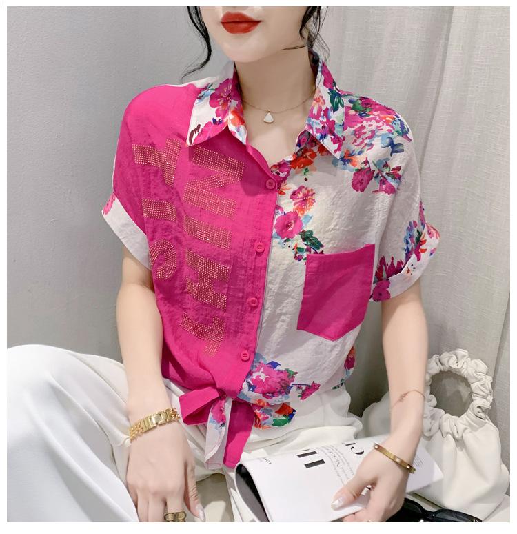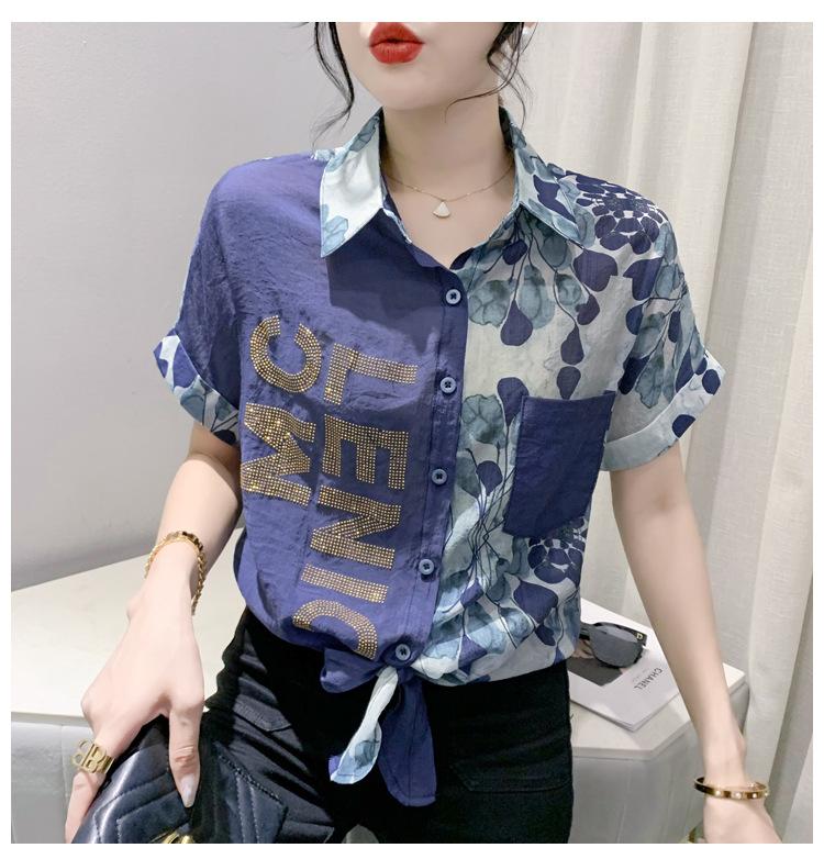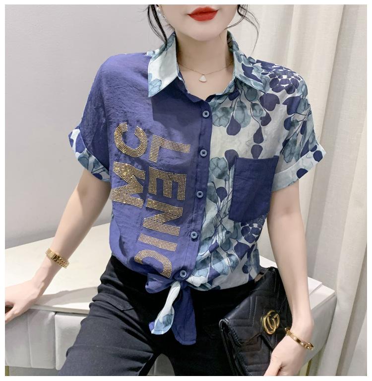 Verano 2025 Nueva Llegada Suelta Estampada Camisa de Cuello Polo con Tirantes para Mujer Elegante para Ir al Trabajo Manga Corta Moderna Combinable Top