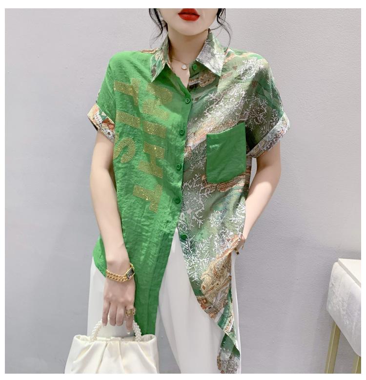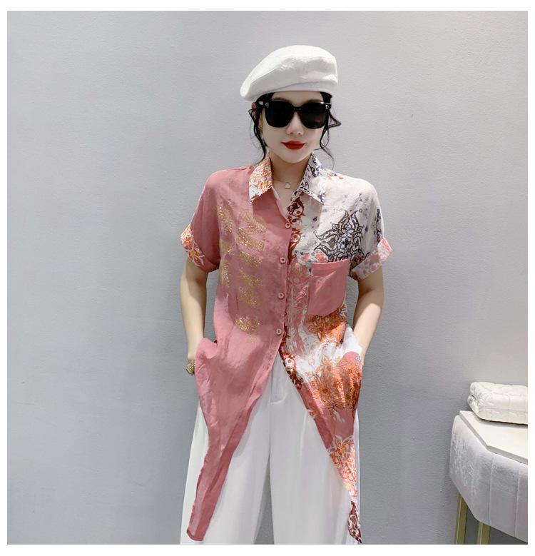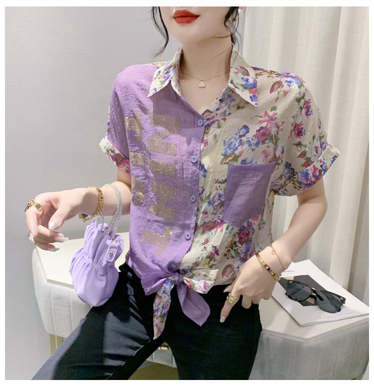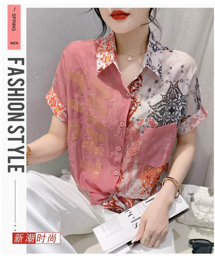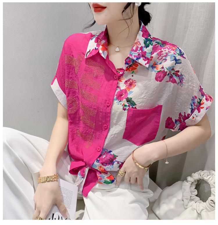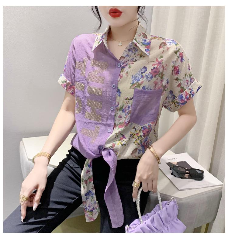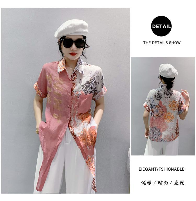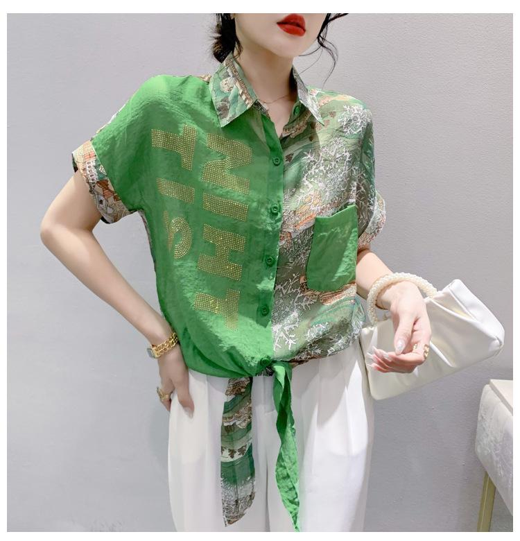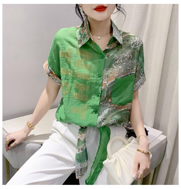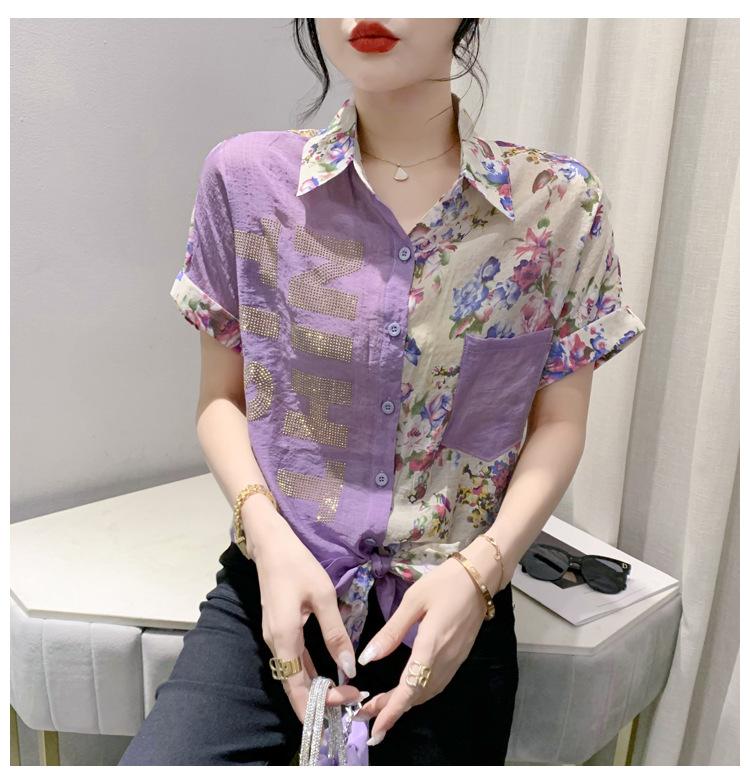 Verano 2025 Nueva Llegada Suelta Estampada Camisa de Cuello Polo con Tirantes para Mujer Elegante para Ir al Trabajo Manga Corta Moderna Combinable Top