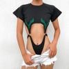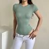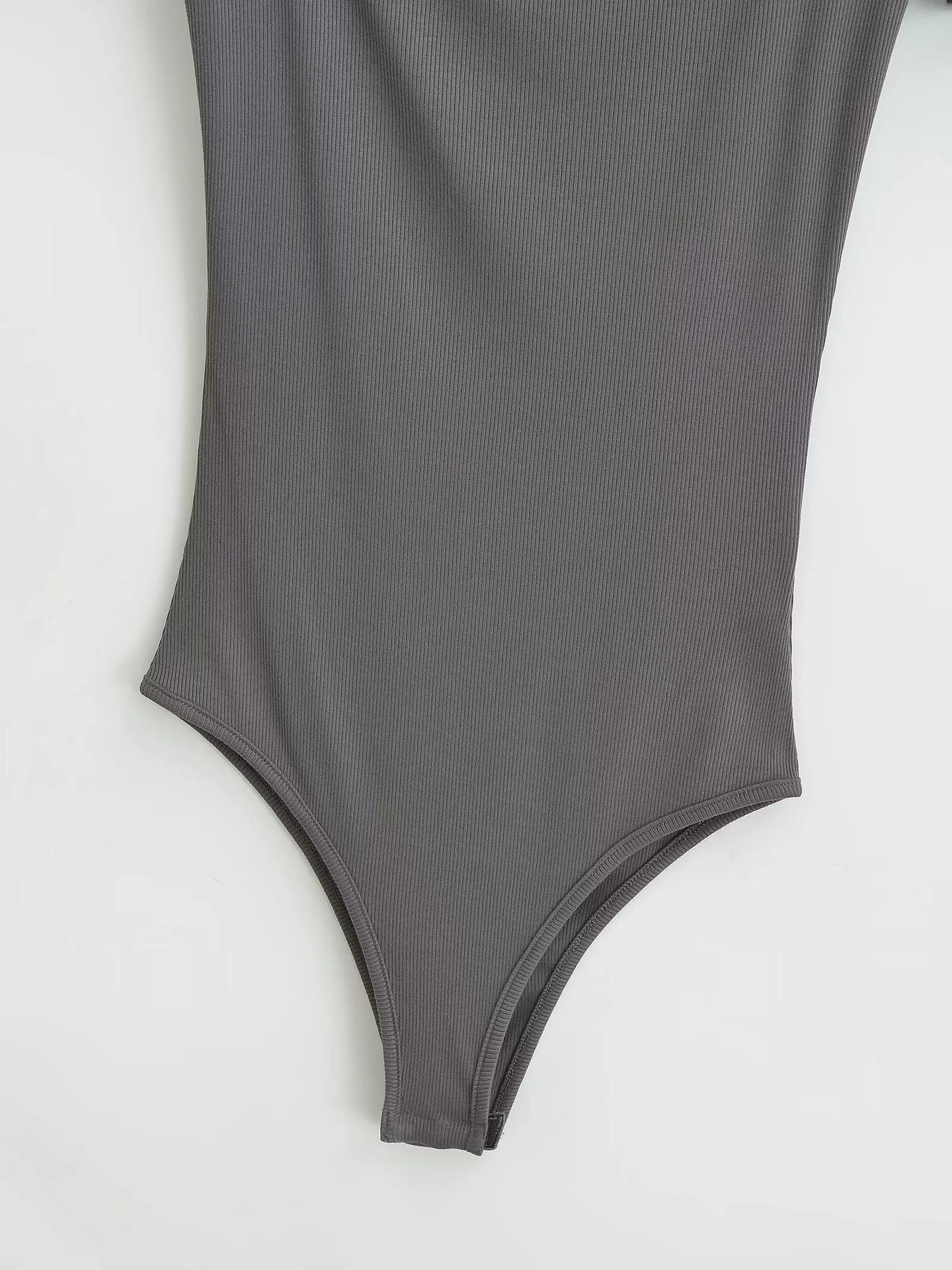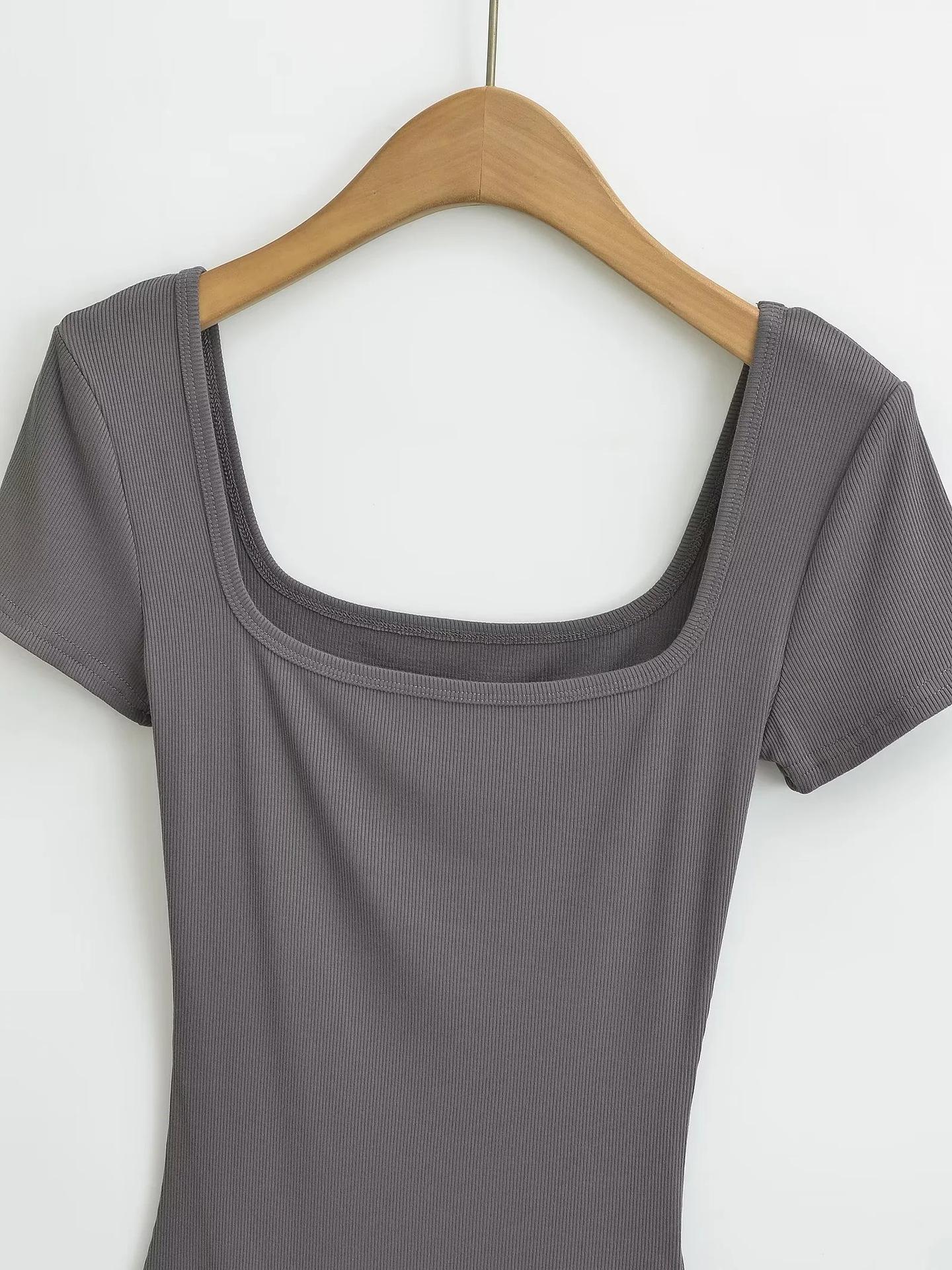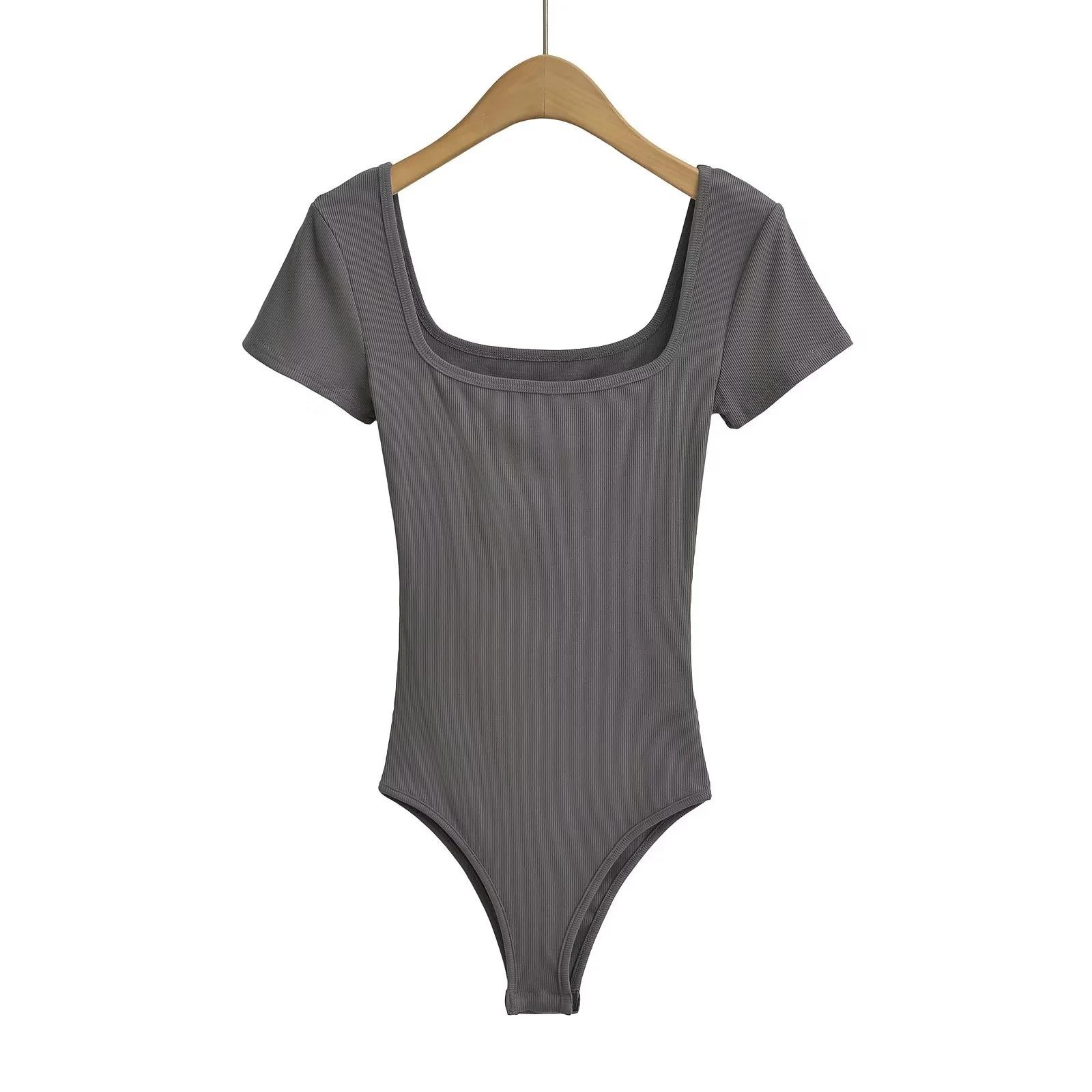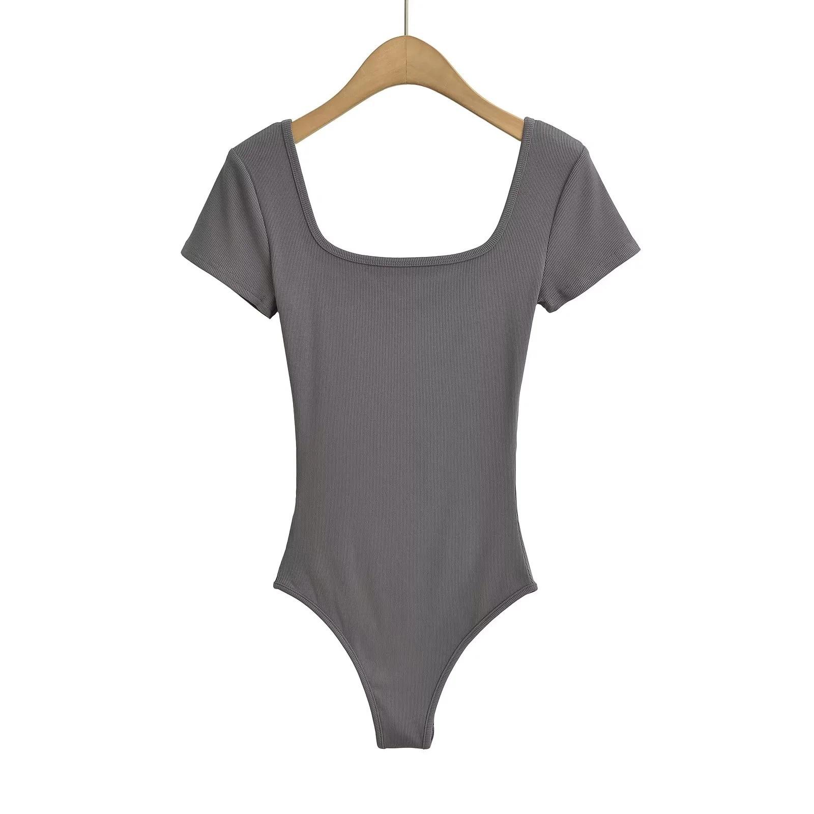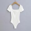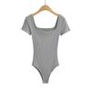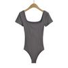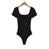 Sexy camiseta de manga corta de una pieza con cuello cuadrado y espalda descubierta, ropa de brocado