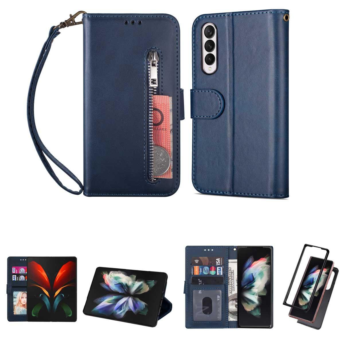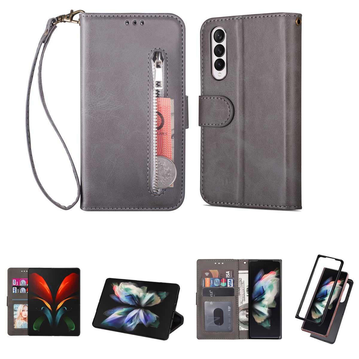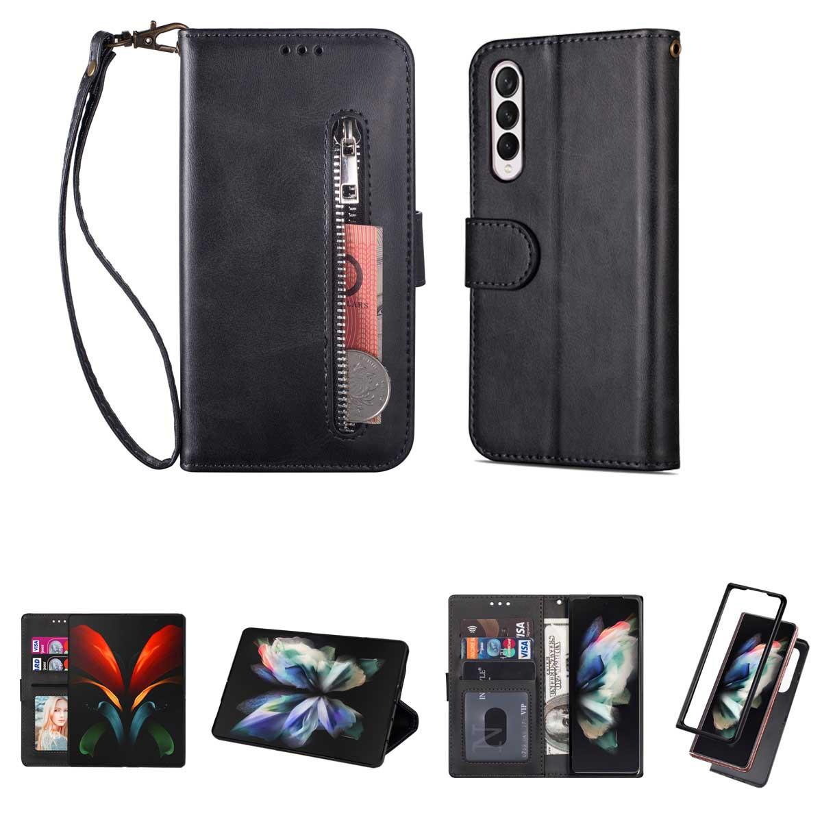 Funda con cremallera para Samsung Z FOLD3, funda protectora con tapa y hebilla trasera de cuero.