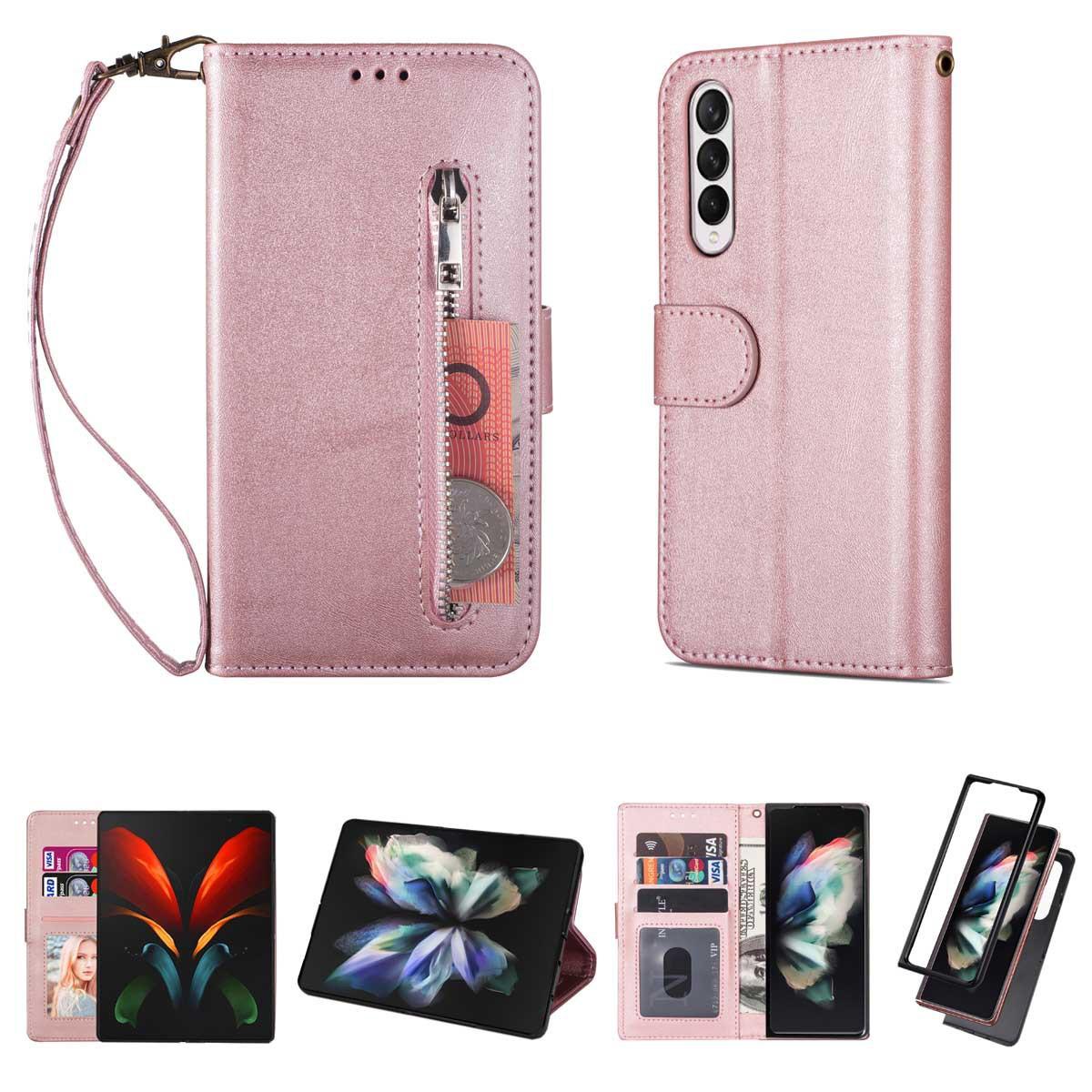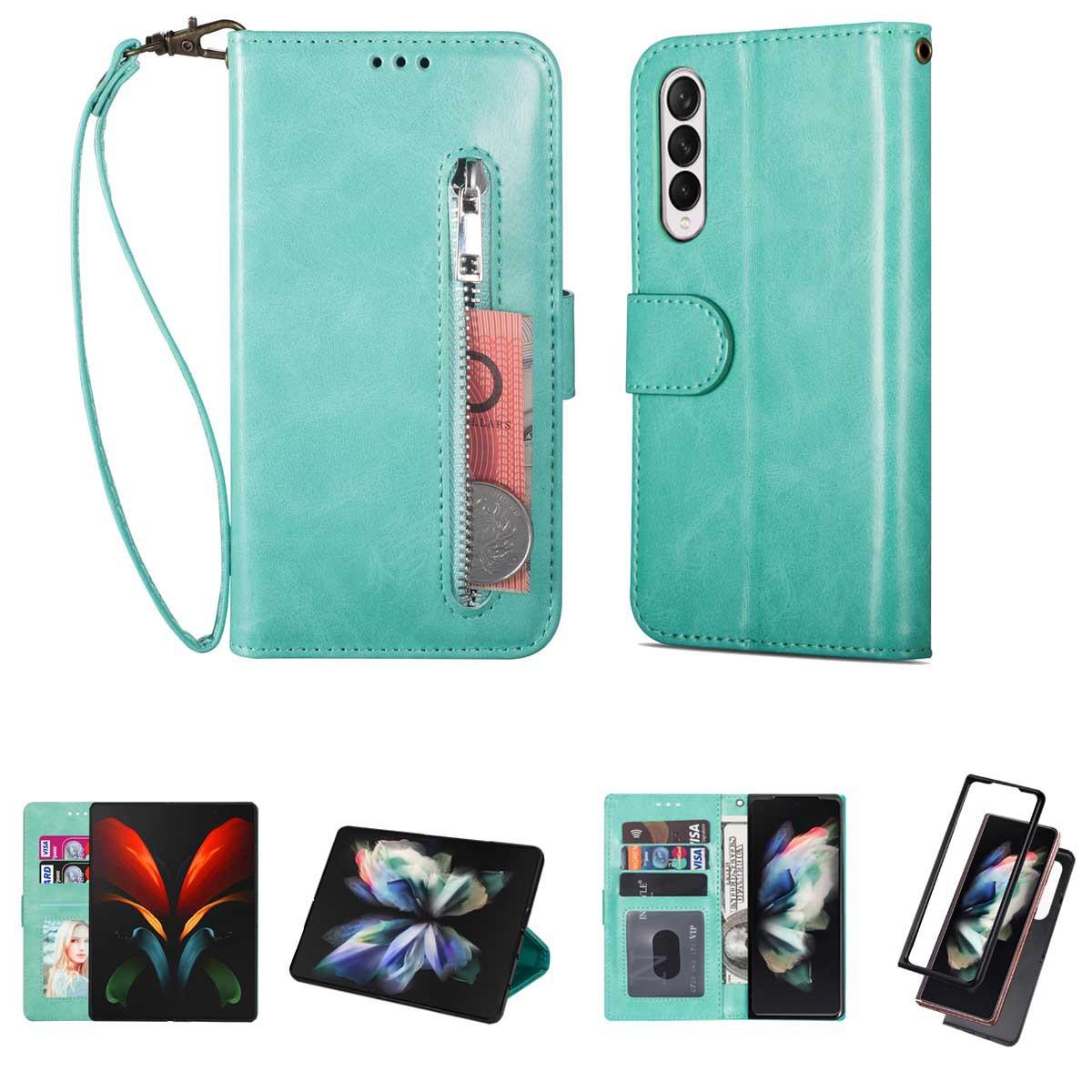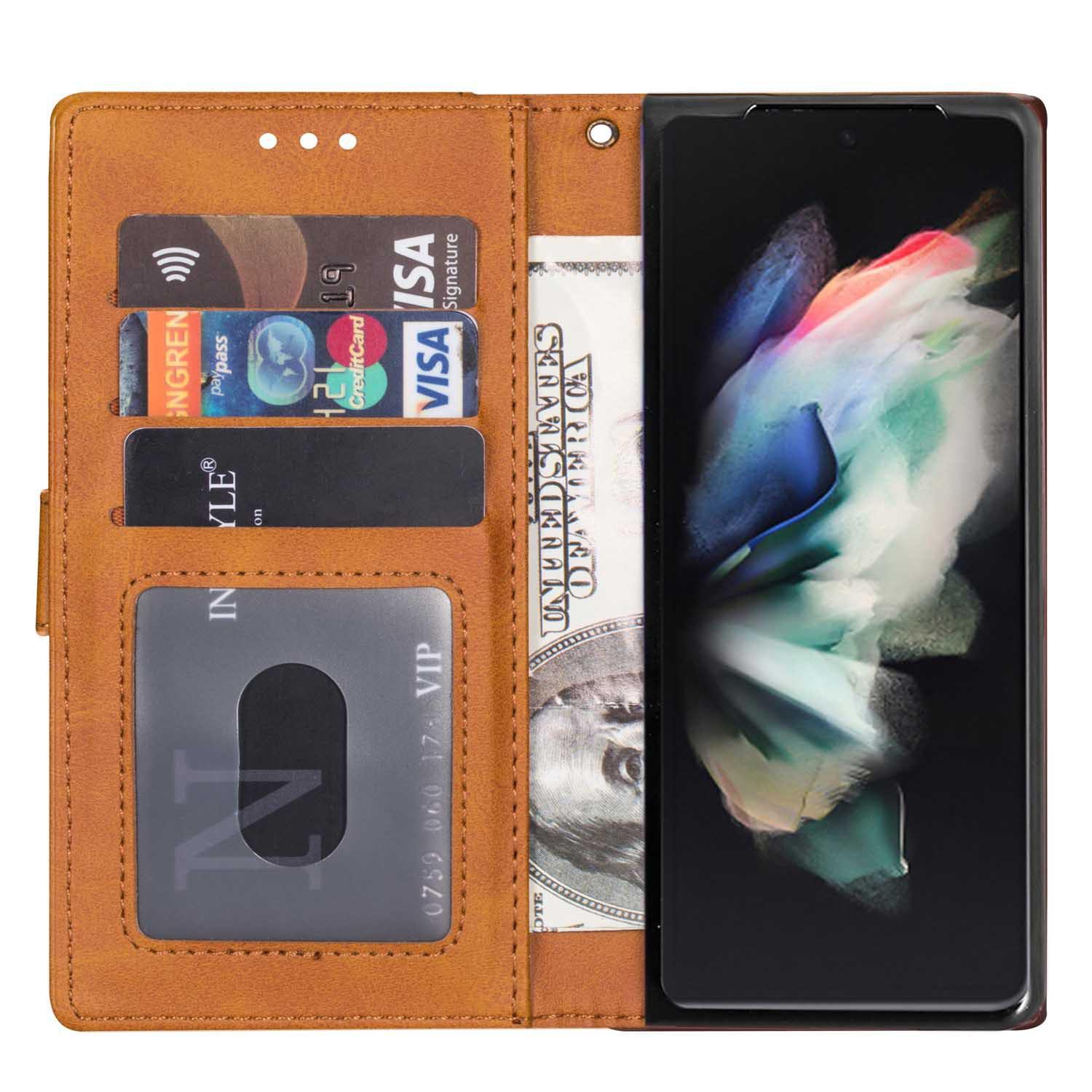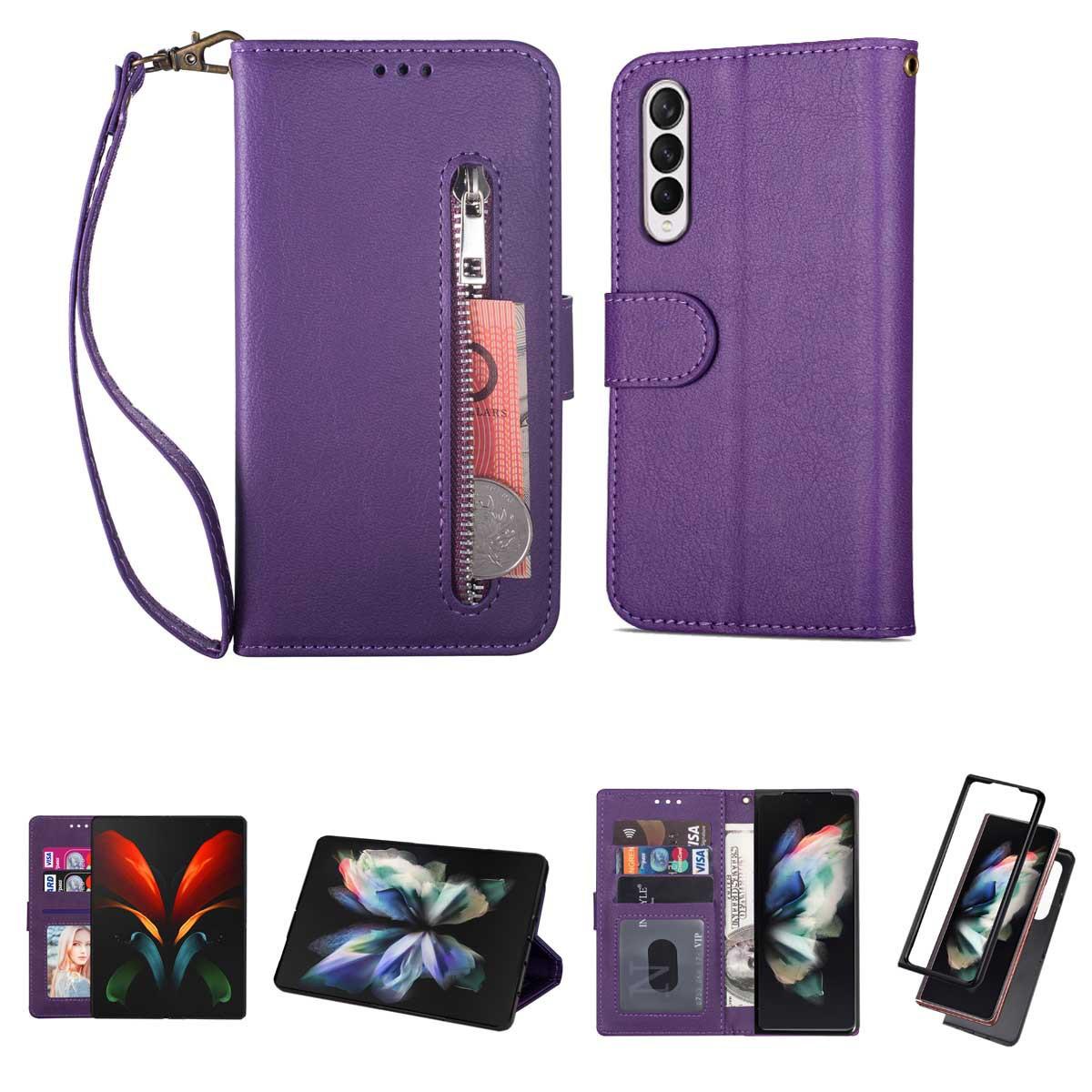 Funda con cremallera para Samsung Z FOLD3, funda protectora con tapa y hebilla trasera de cuero.