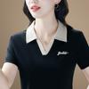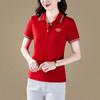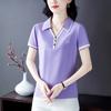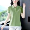 Playera de manga corta con solapa de seda helada para mujer, verano 2025, nueva playera polo para mamá, top deportivo casual LED para mujer