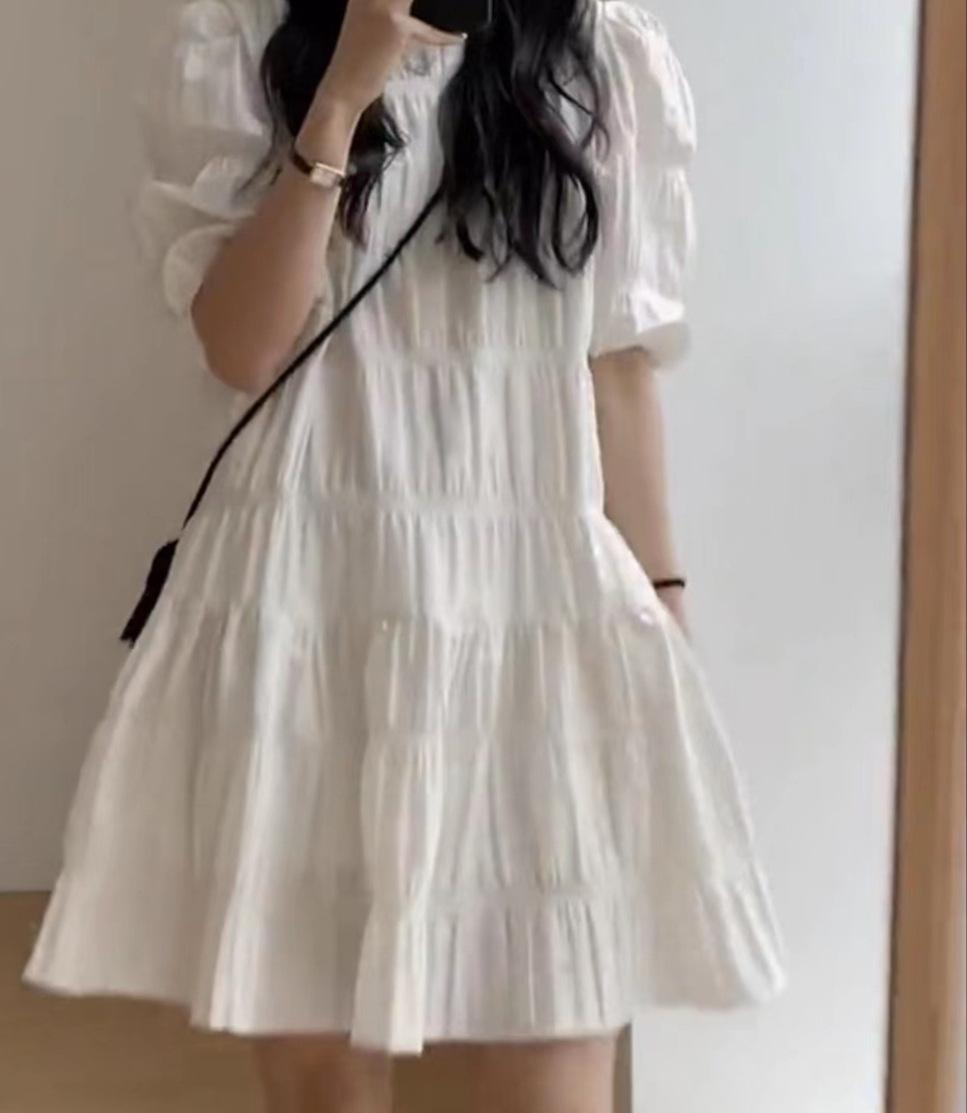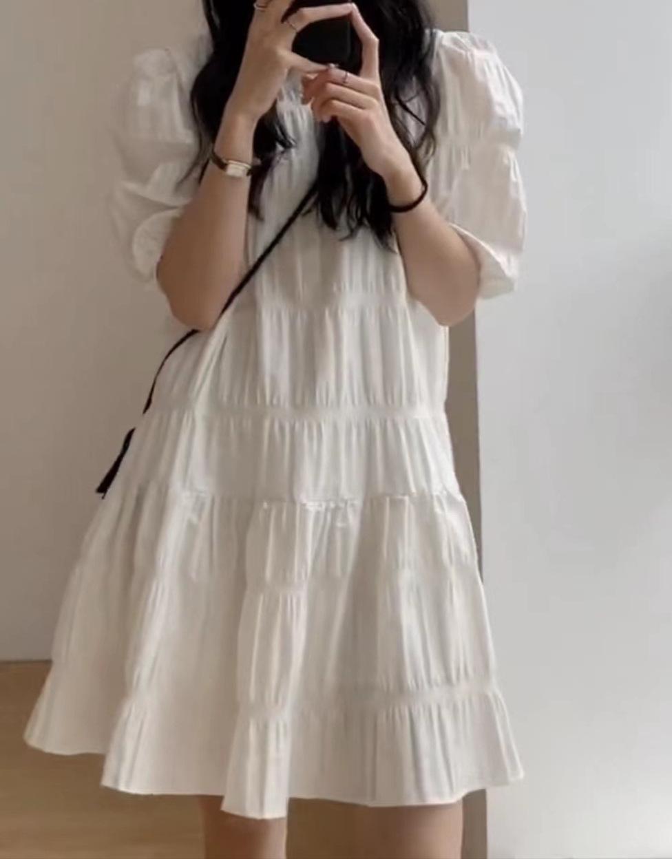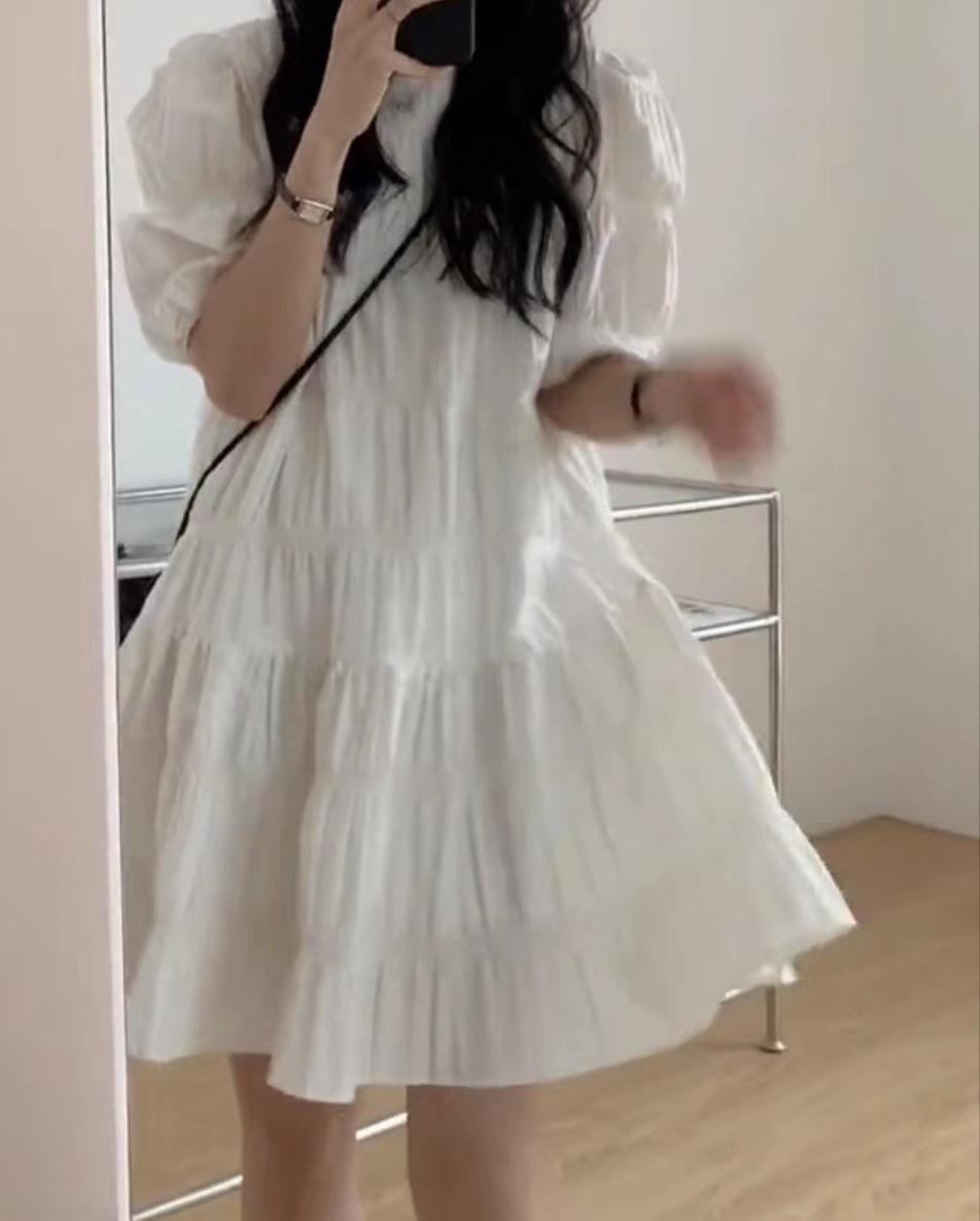Vestido francés plisado con mangas abullonadas, nuevo diseño de 2025, falda pequeña y ajustada de verano para mujer