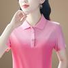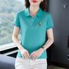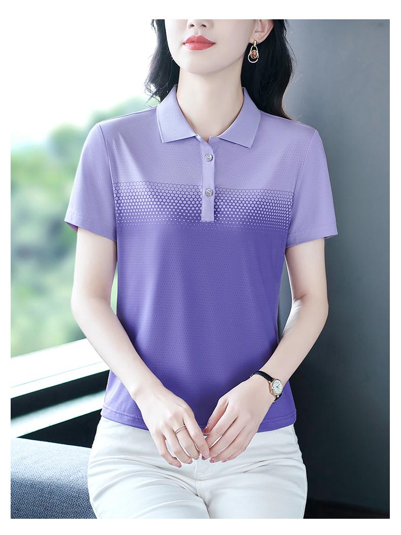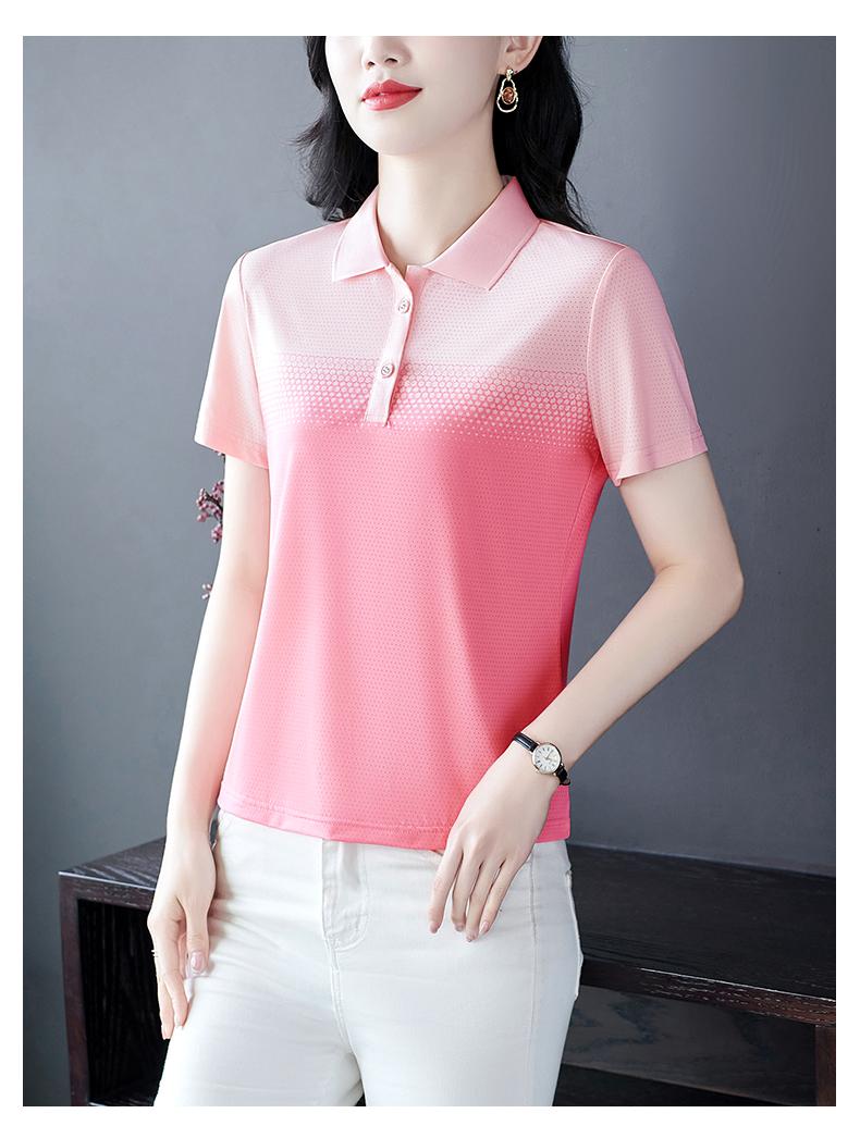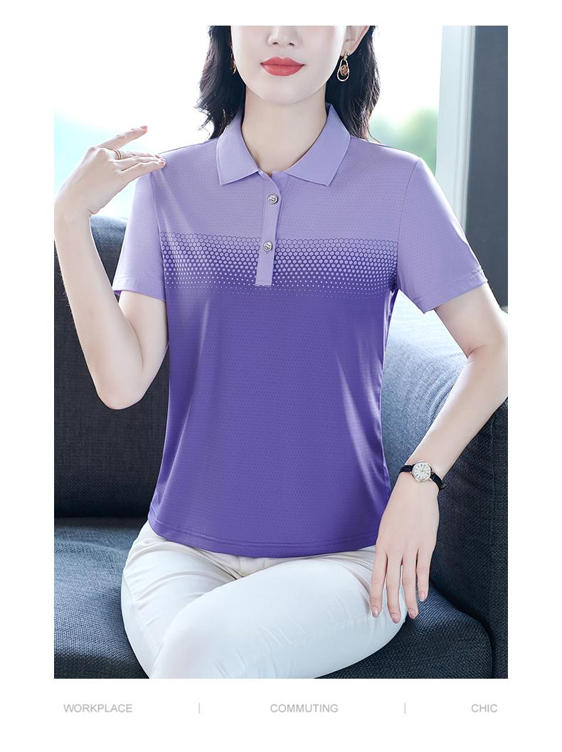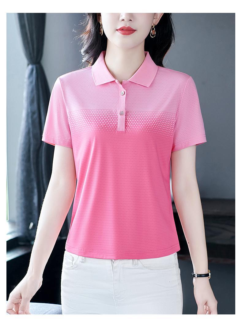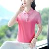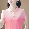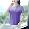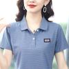 Playera de Rayas de Manga Corta para Mujer Verano 2025 Nueva Top Holgado de Algodón Mamá de Mediana Edad Camisa Polo Deportiva Ropa de Verano