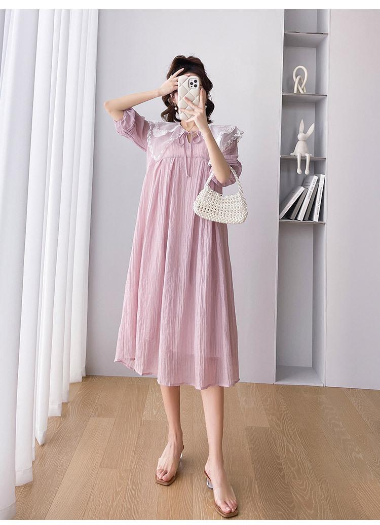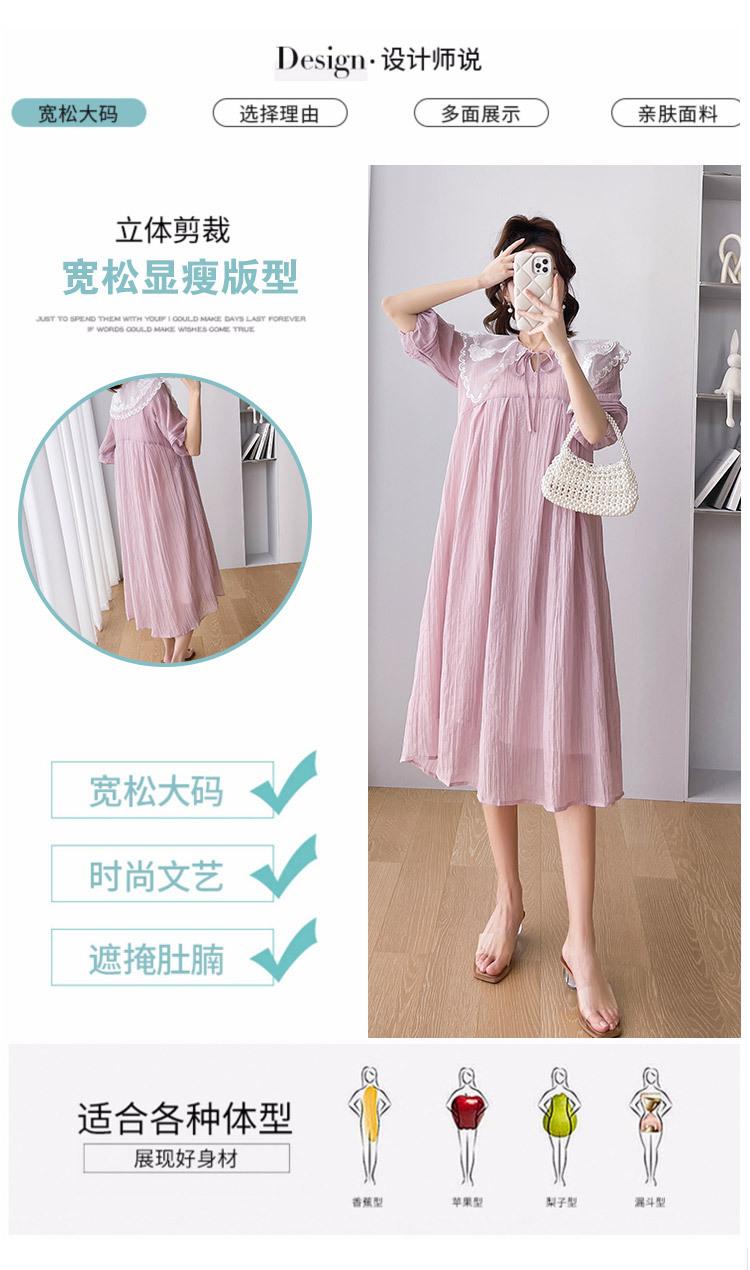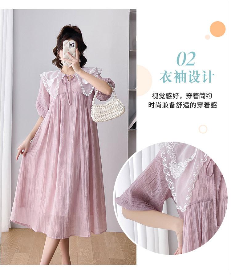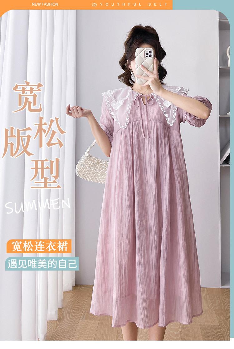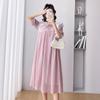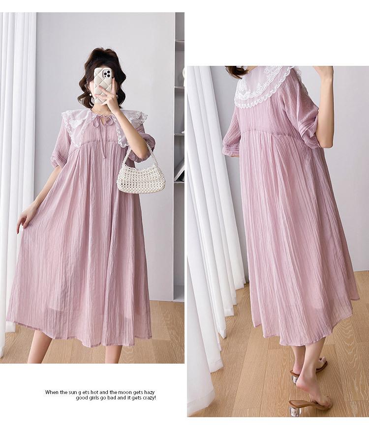 Vestido de maternidad de verano 2025, nuevo, dulce temperamento, antiedad, holgado, de talla grande, de longitud media, para embarazadas.