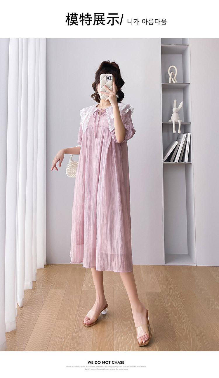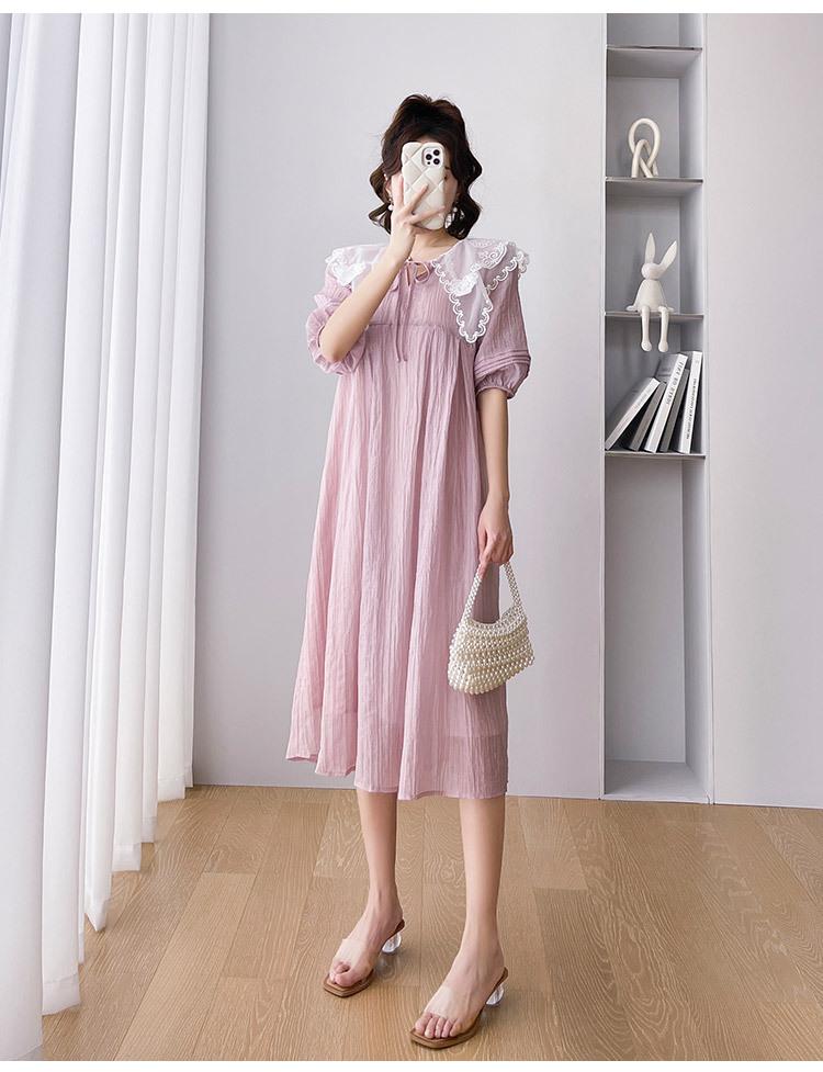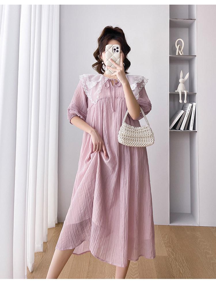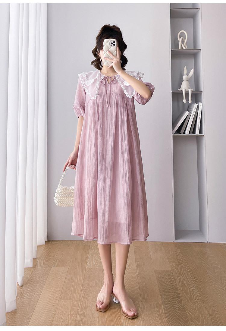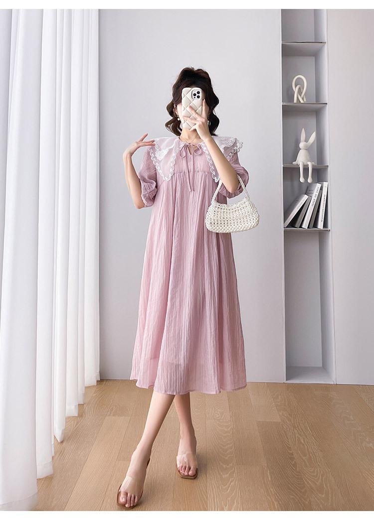 Vestido de maternidad de verano 2025, nuevo, dulce temperamento, antiedad, holgado, de talla grande, de longitud media, para embarazadas.
